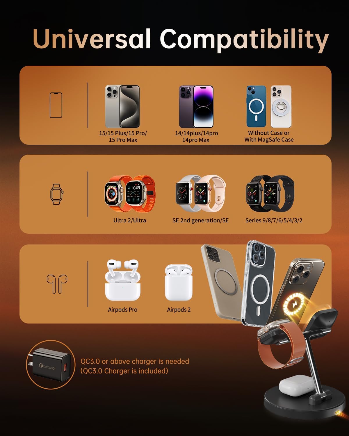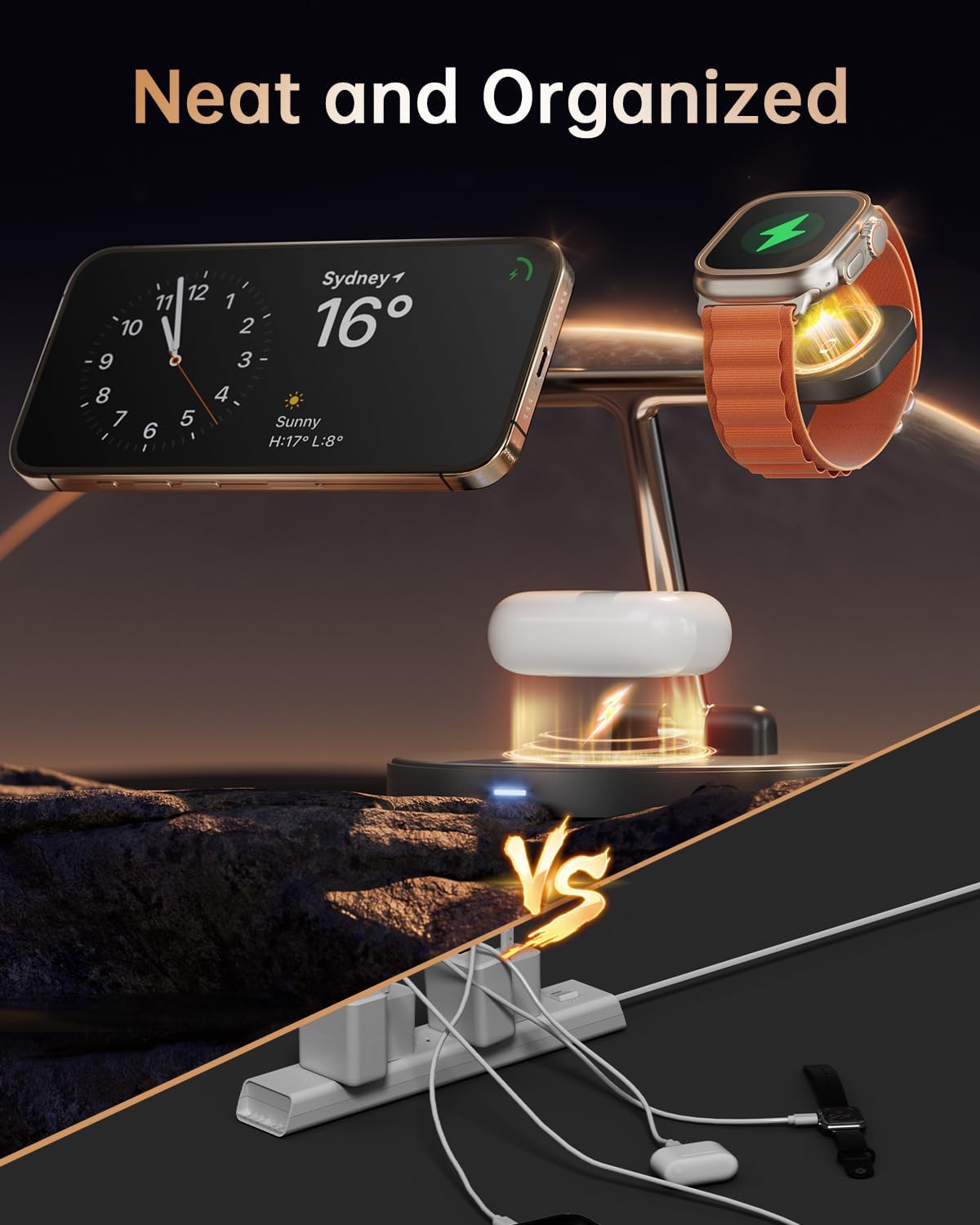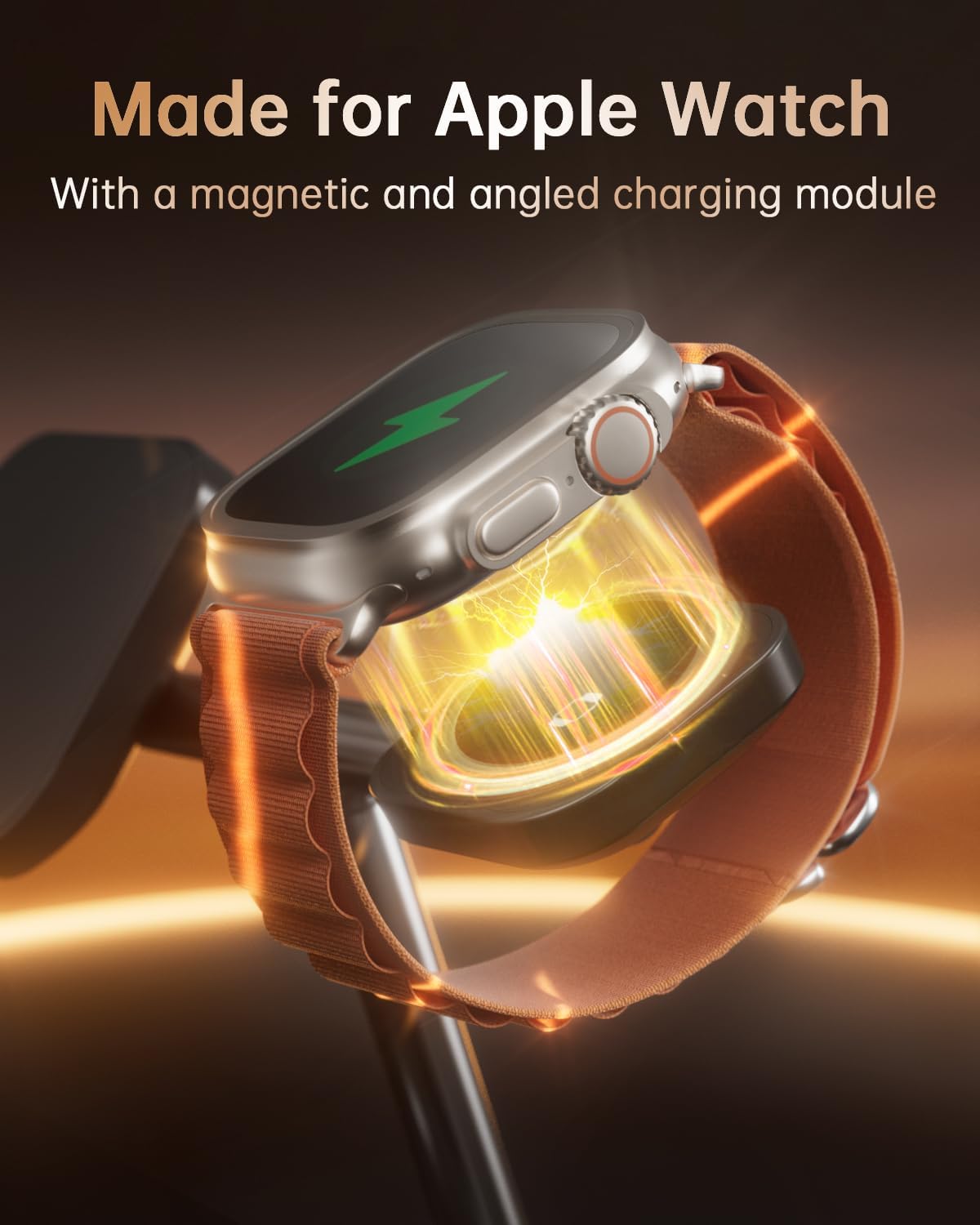 ✔ 3-in-1 Fast Wireless Charging – Charge iPhone, Apple Watch, and AirPods simultaneously.