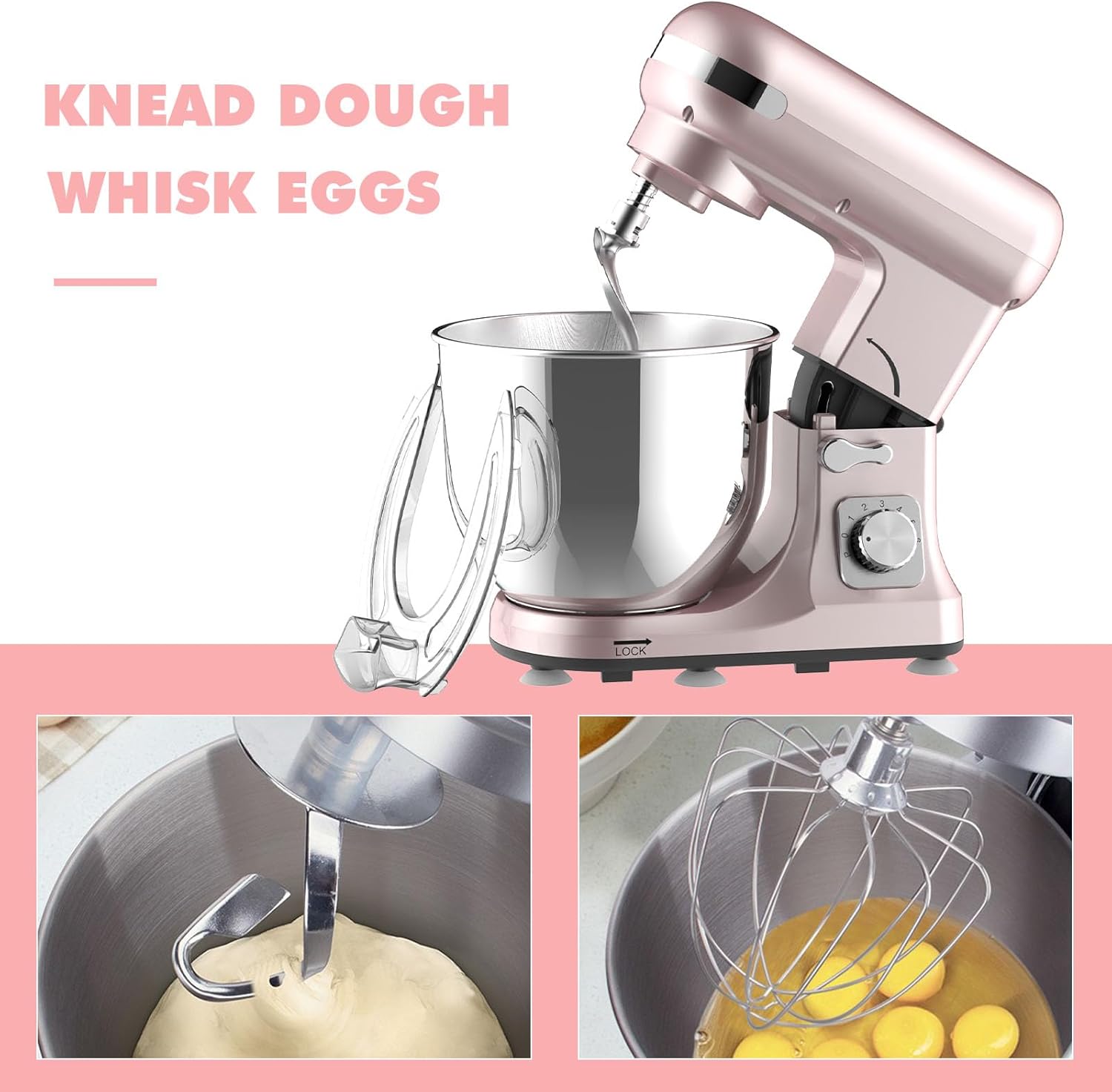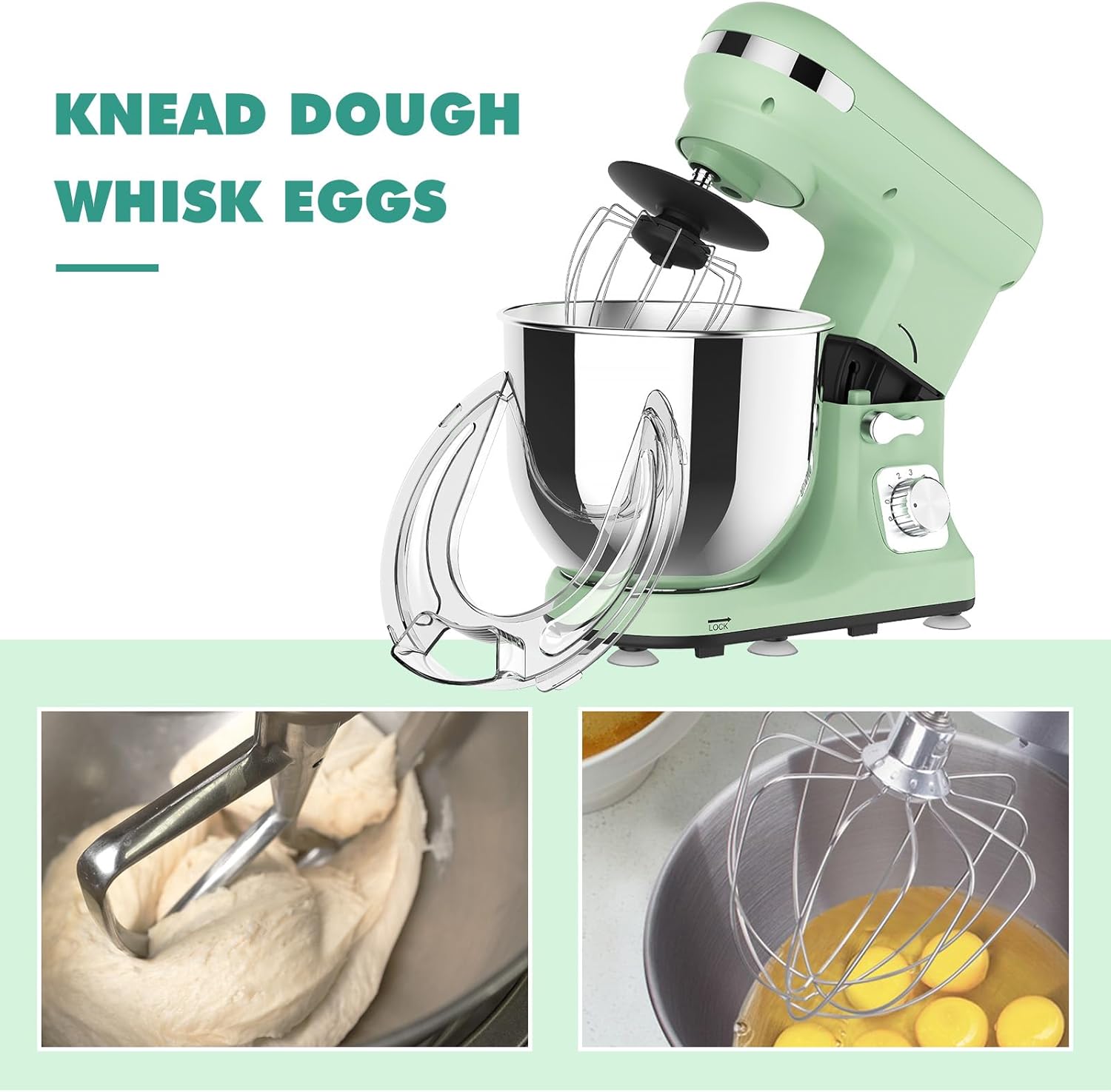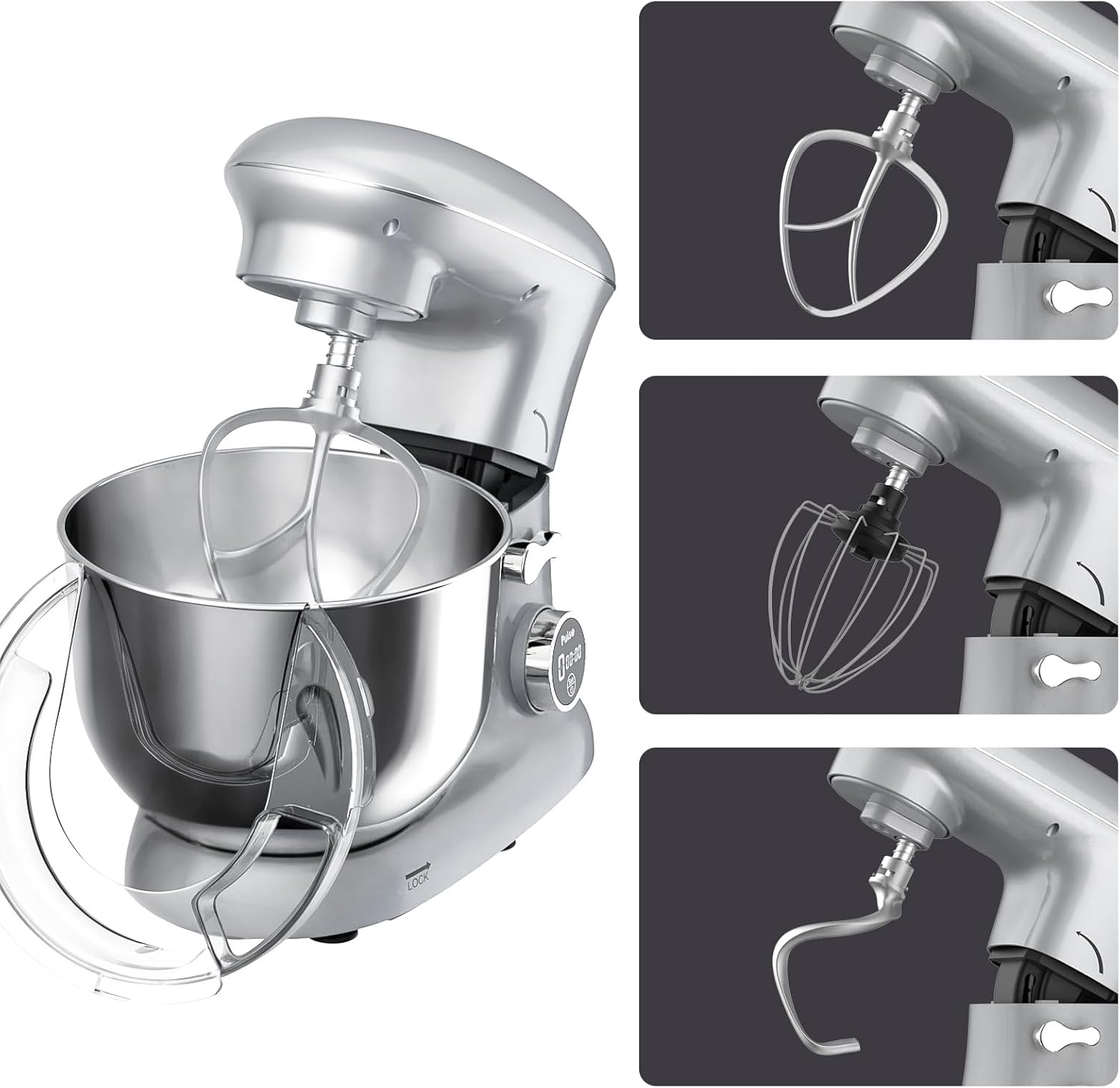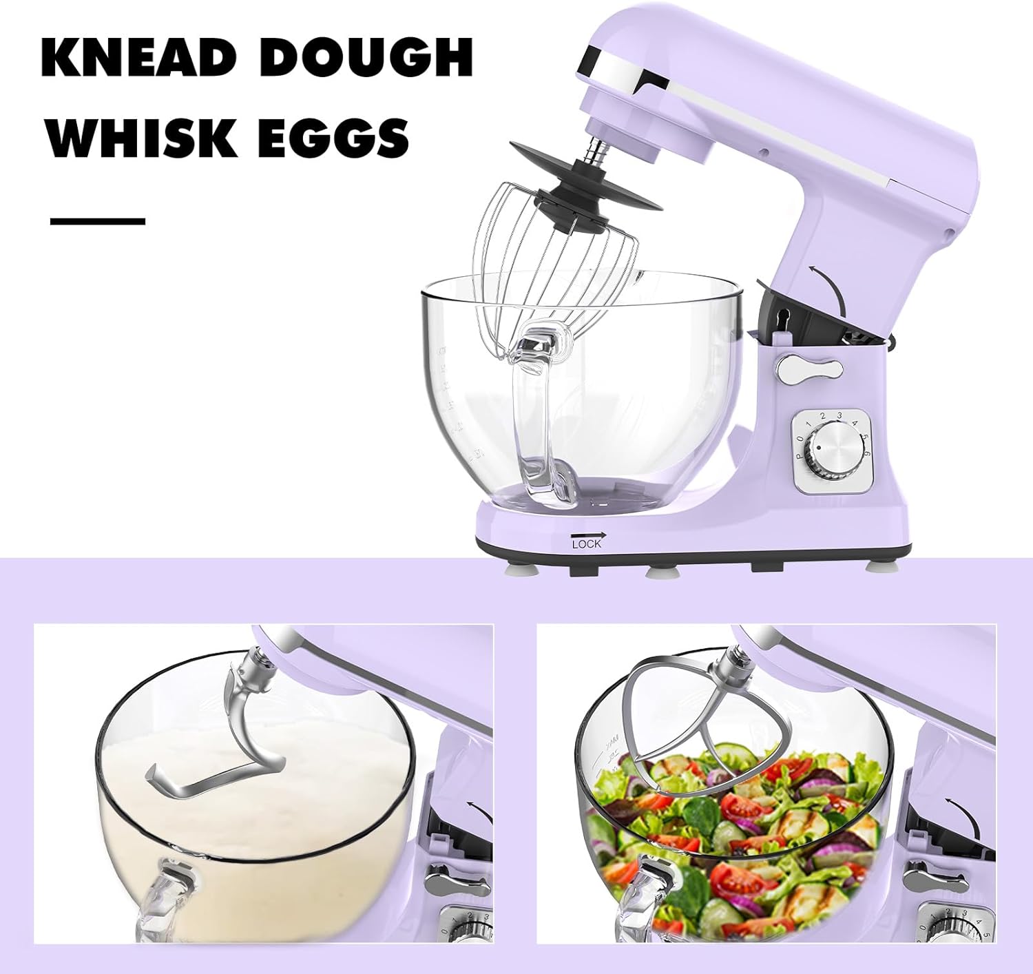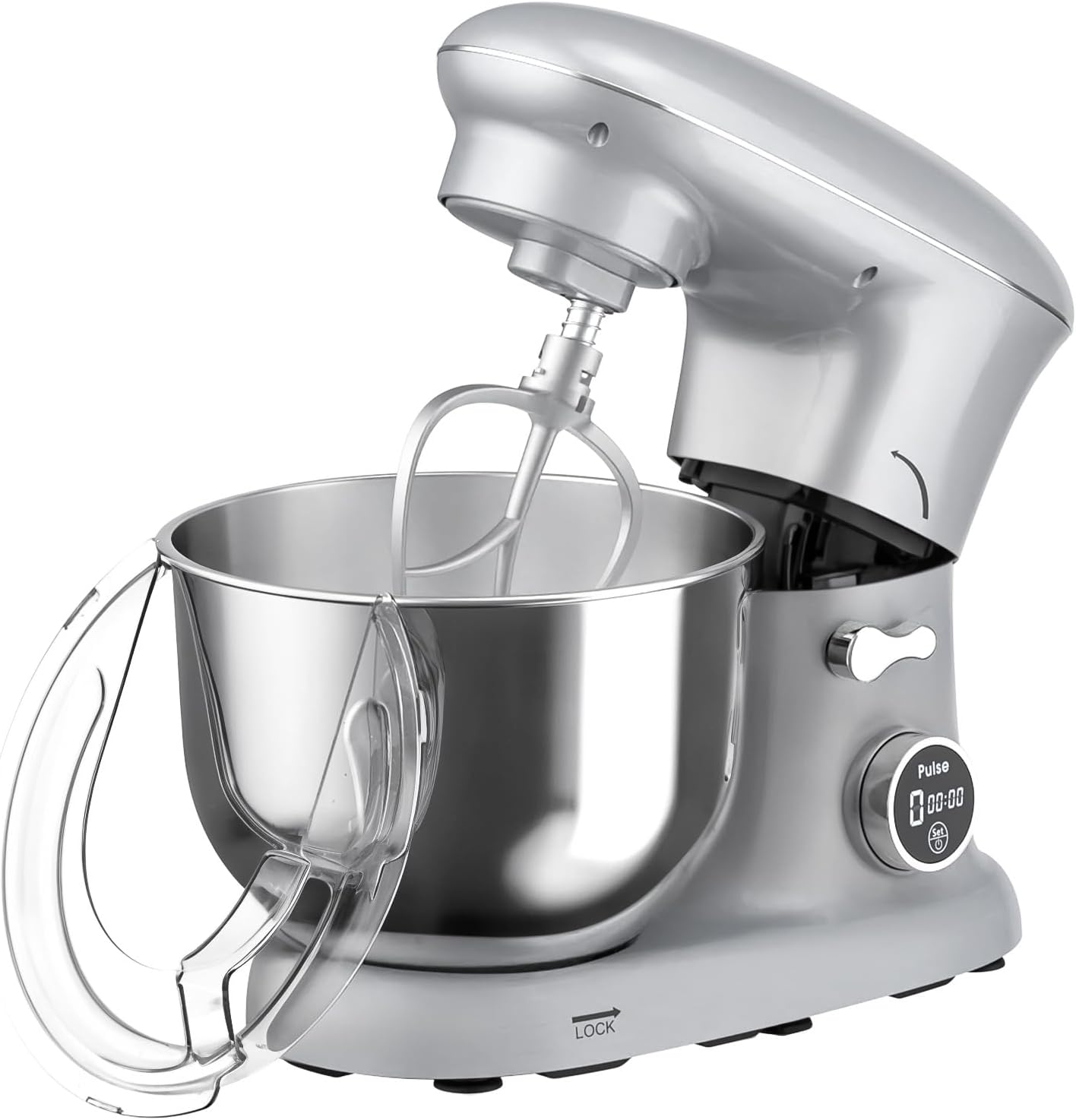 Achieving the right consistency is key in cooking and baking. Our kitchen electric mixer features 6-speed control settings, allowing you to precisely adjust mixing strength for a variety of recipes, from gentle stirring to powerful whipping. The thoughtful tilt-head design makes it incredibly easy to install and remove the 6.5L stainless steel bowland accessories, streamlining your workflow. Plus, the included transparent splash guard keeps your kitchen clean by preventing splatters – so you can focus on the joy of creating, not the mess.