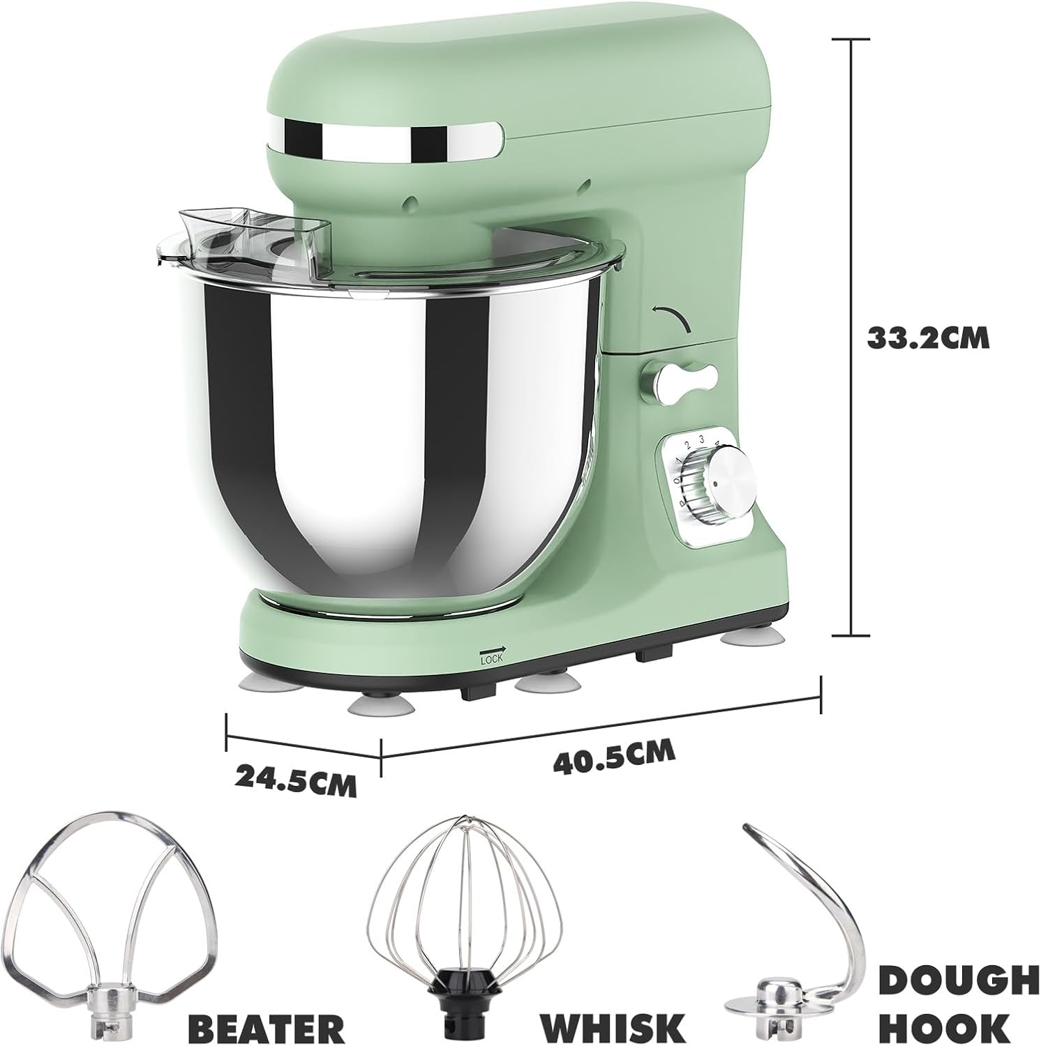 You need kitchen appliances that are built to last and designed for convenience. This mixer boasts a sturdy ABS stylish shell and a food-grade stainless steel bowl with a humanised dual-handle design, ensuring durability and ease of use. All professional accessories are crafted for longevity, though please remember they are best hand-washed to maintain their quality. Its high-end appearance also adds a touch of sophistication to any kitchen countertop, making it both a practical tool and a stylish statement piece.