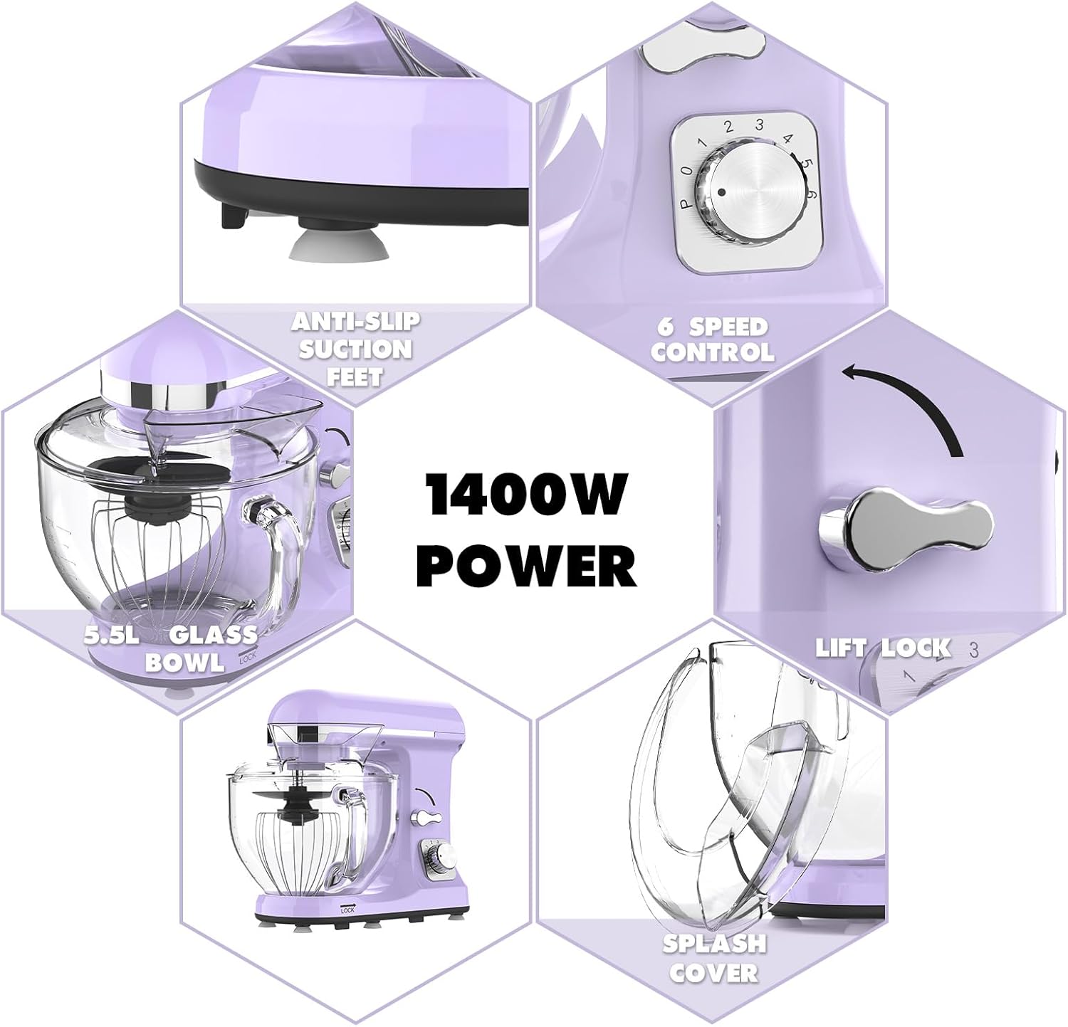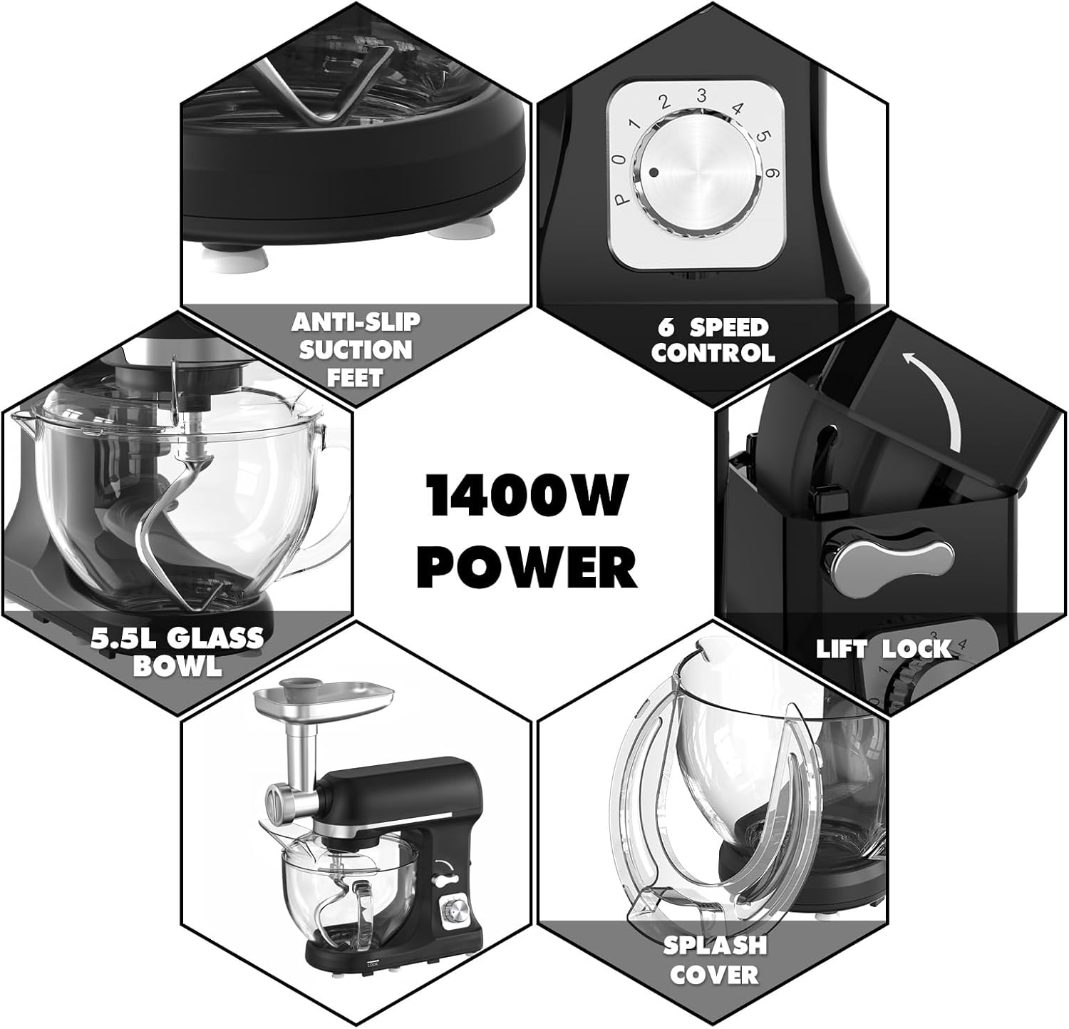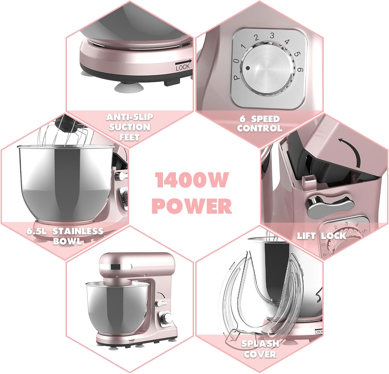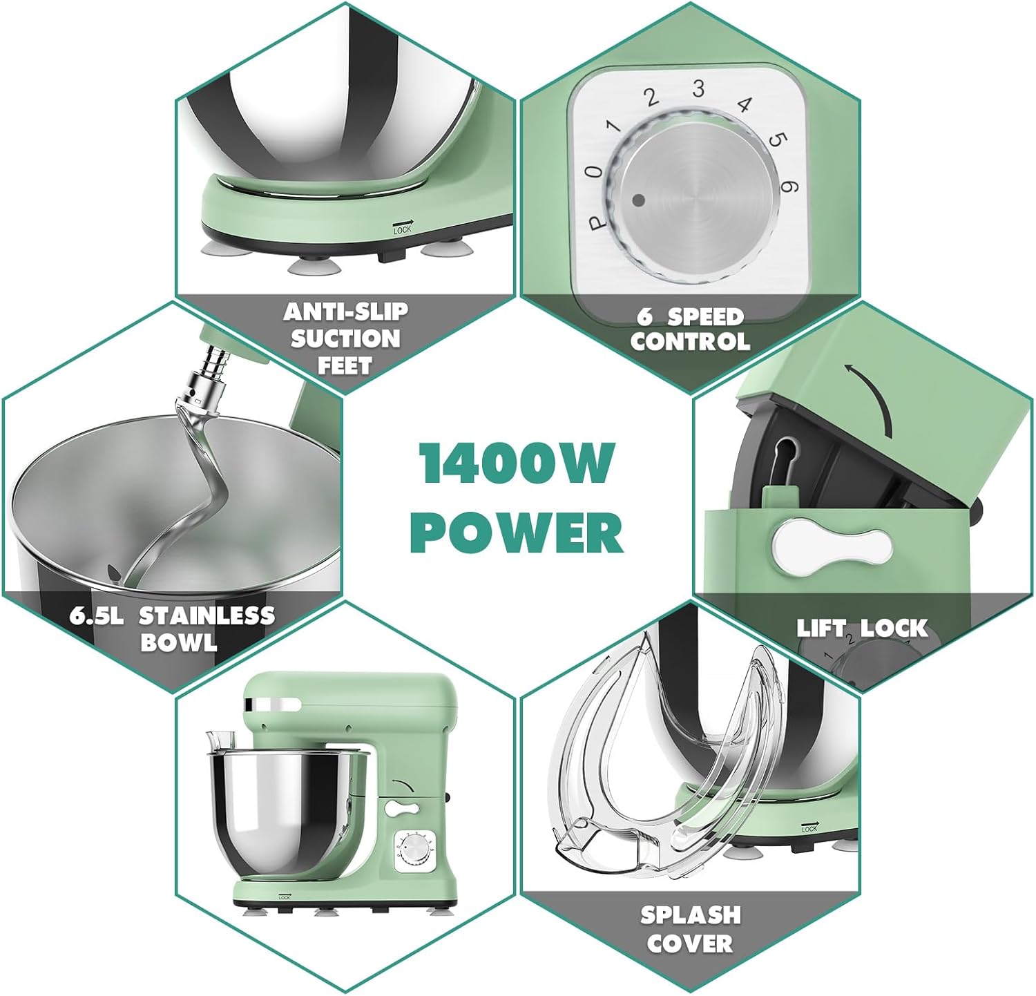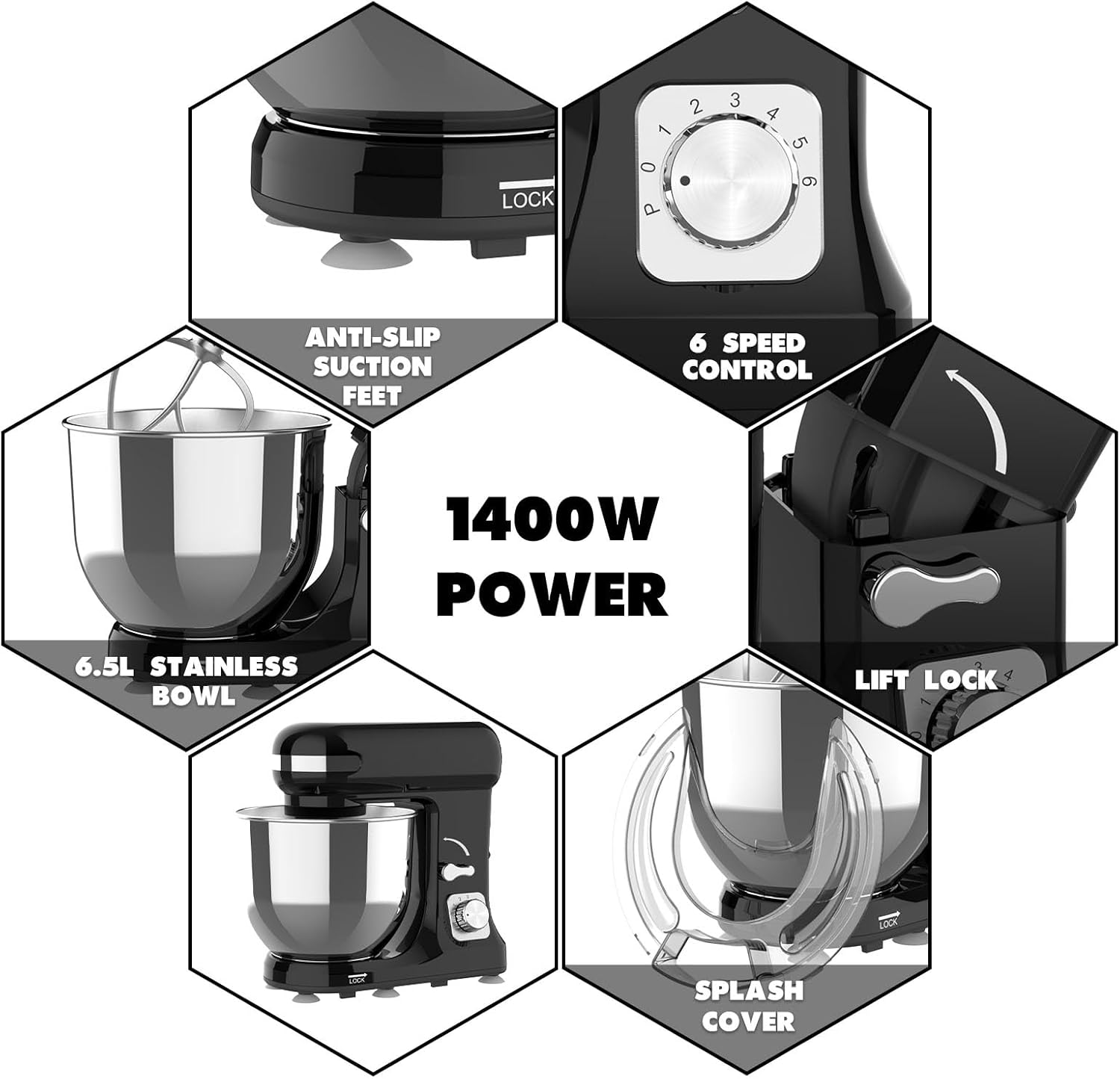 1400W Stand Mixer | 6.5L Electric Food Mixer for Baking