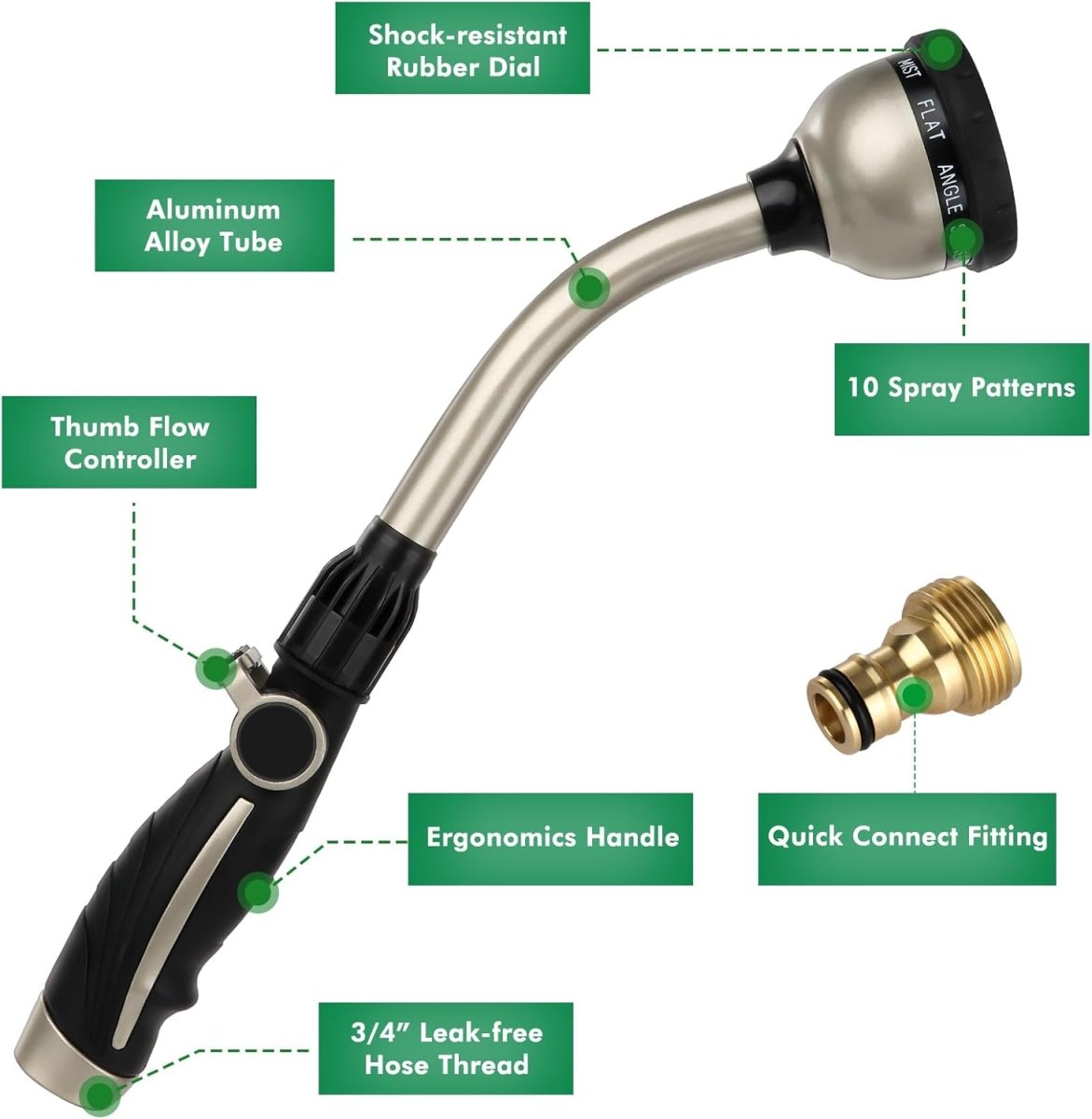 Say goodbye to flimsy hose nozzles! This Heavy-Duty Metal Hose Nozzle is crafted from high-quality zinc-alloy, ensuring it can withstand daily drops, shocks, and wear. The durable bronze powder coating, TPU covering, and rubberized bezel dial provide enhanced flexibility and impact resistance. This is a nozzle you can trust to last for years, no matter the job.