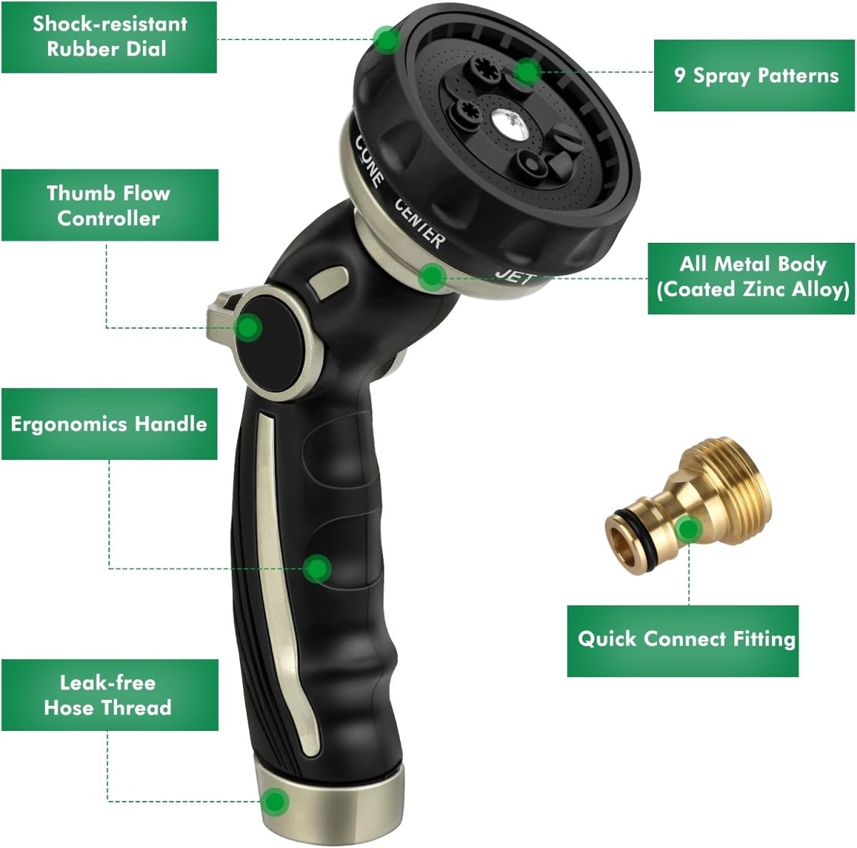 9-Pattern Metal Spray Gun – High-Pressure Hose Nozzle for Lawn, Car & Pets