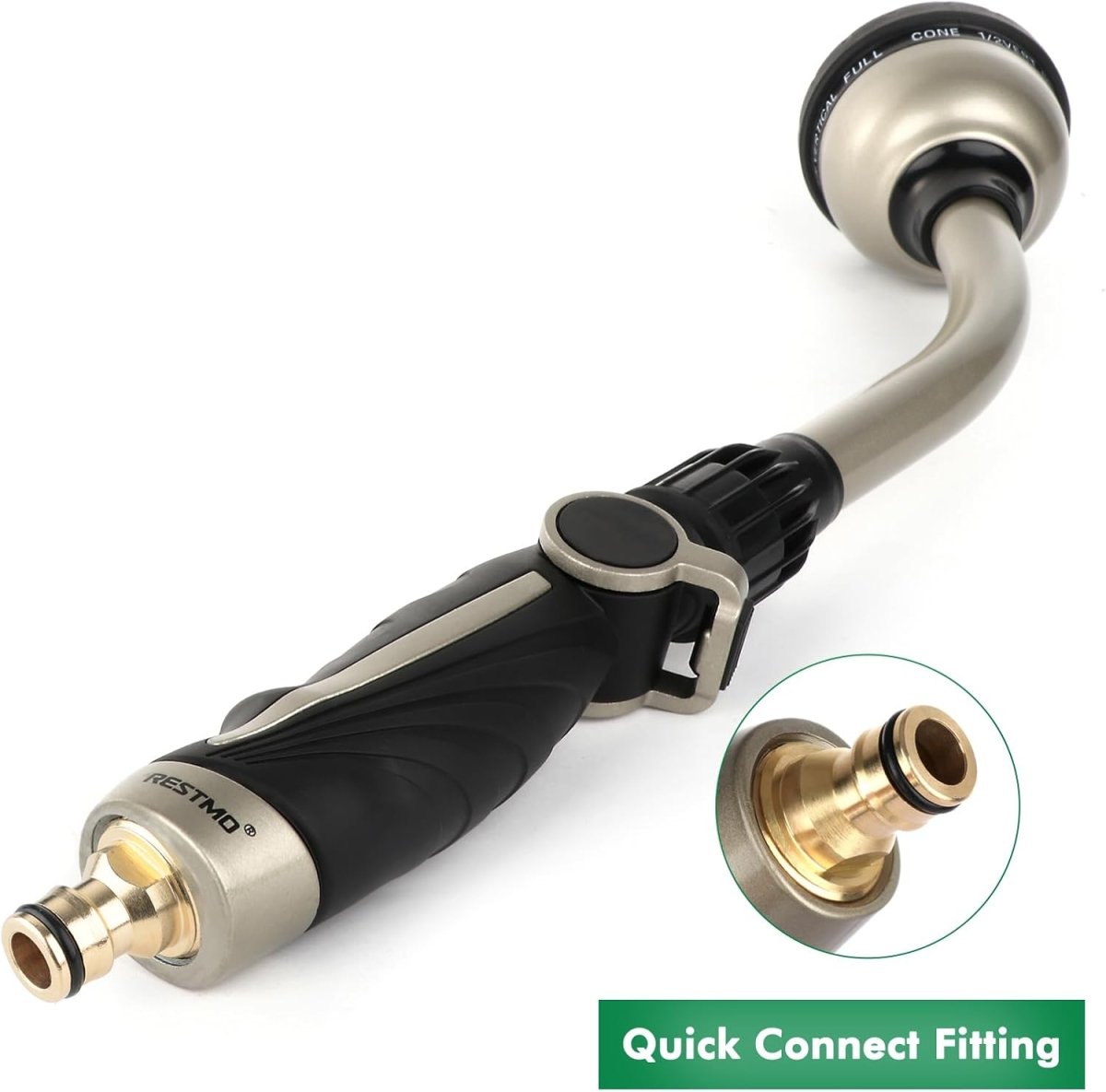 This nozzle comes with a brass quick-connect fitting for hassle-free attachment to your garden hose. It’s sturdy, reliable, and easy to install, so you can start watering right away!