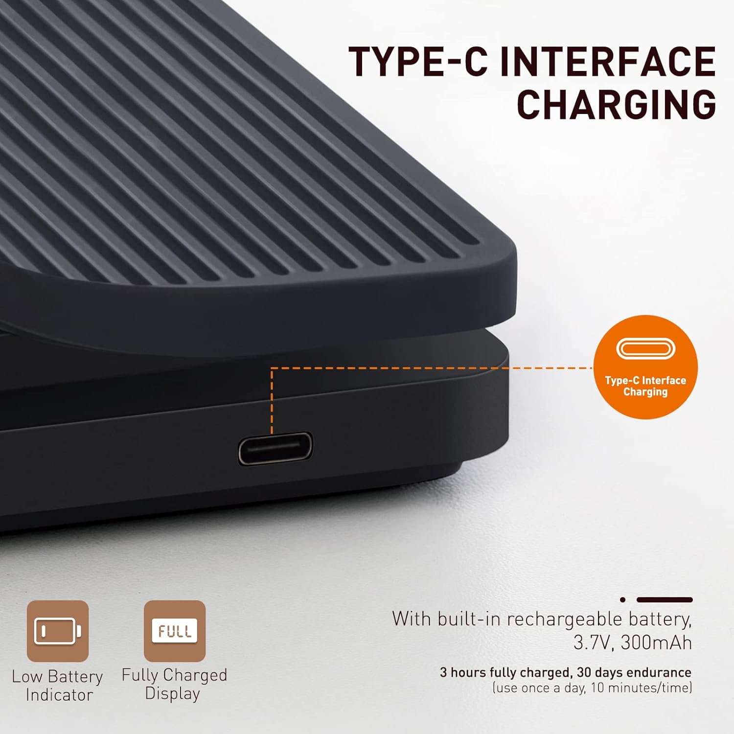 - USB TYPE-C RECHARGING Built-in 300mAh rechargeable lithium battery. More environmentally friendly and safe, can be fully charged in 3 hours and last for 30 days (Use once a day, 10 minutes/time).
