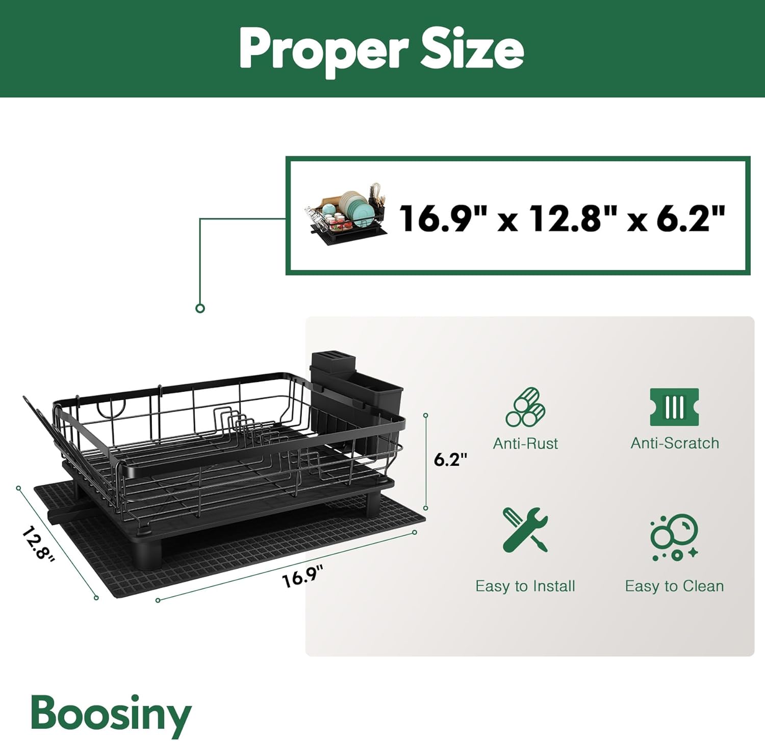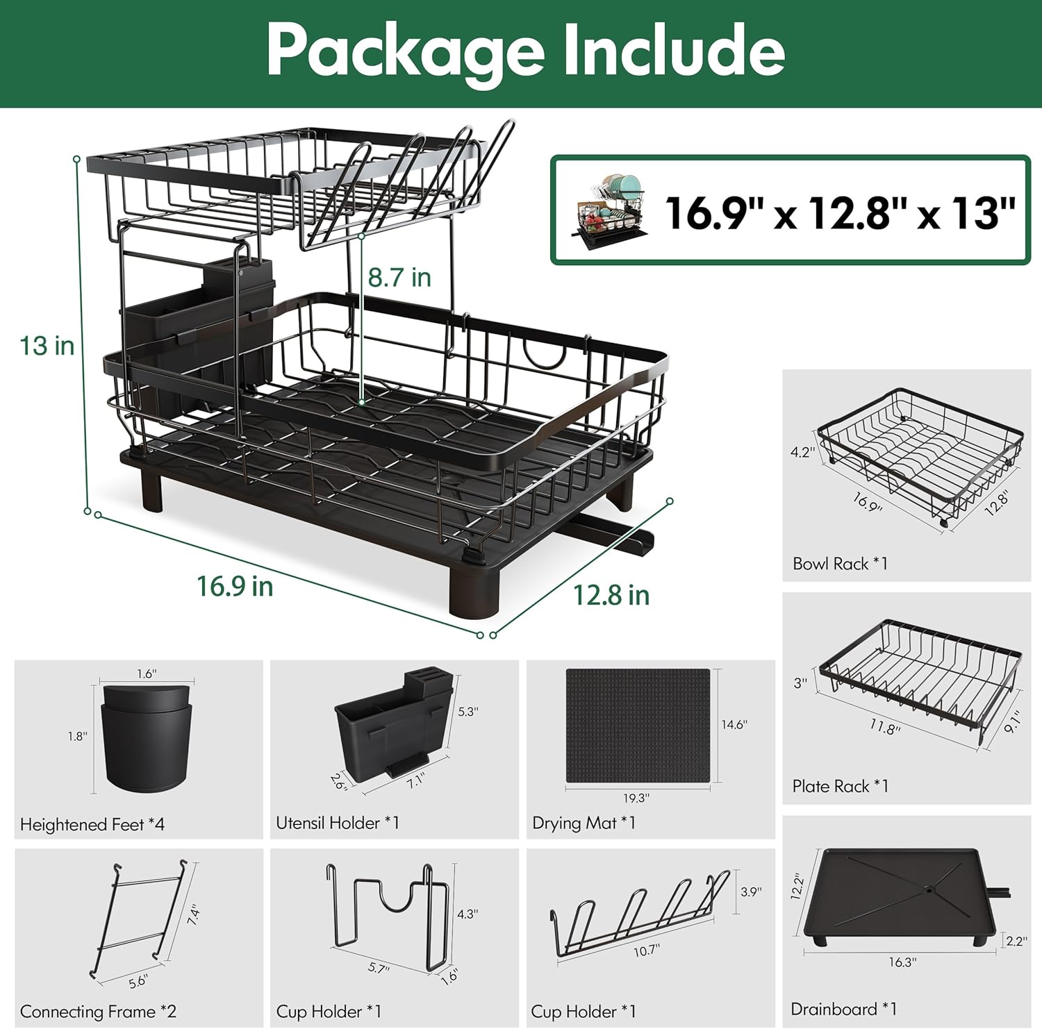 - Free Up 80% of Kitchen Counter: This black dishes drying rack gives space on top to be able to store more, perfect for a family of 4-5. The size is 16.9(L)*12.8(W)*13(H) inches. Our kitchen drying rack is easily dismantled and assembled again during cleaning time. The dish racks for kitchen counter are perfect gifts for family and friends