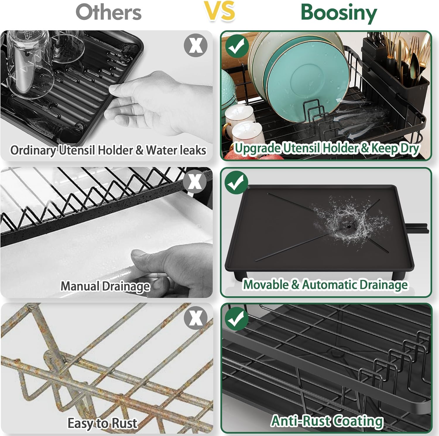 - Easy To Set Up: Our black dish drying rack with drainboard set is more modern and visually appealing. It is also easy to install without any tools, everyone can do it by themself. Our product is divided to provide customers with high-quality products and good service. If you have any questions about the dish rack, please feel free to contact us