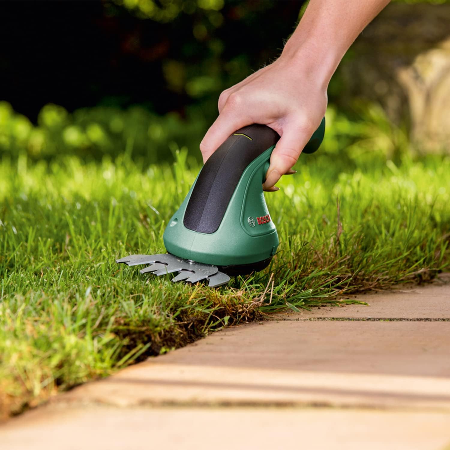Bosch 3.6V Cordless Compact Hedge Shrub & Grass Shear Garden Kit, Includes Shrub & Grass Blade, Integrated Battery, Runtime: 40 min (EasyShear). Made in Europe