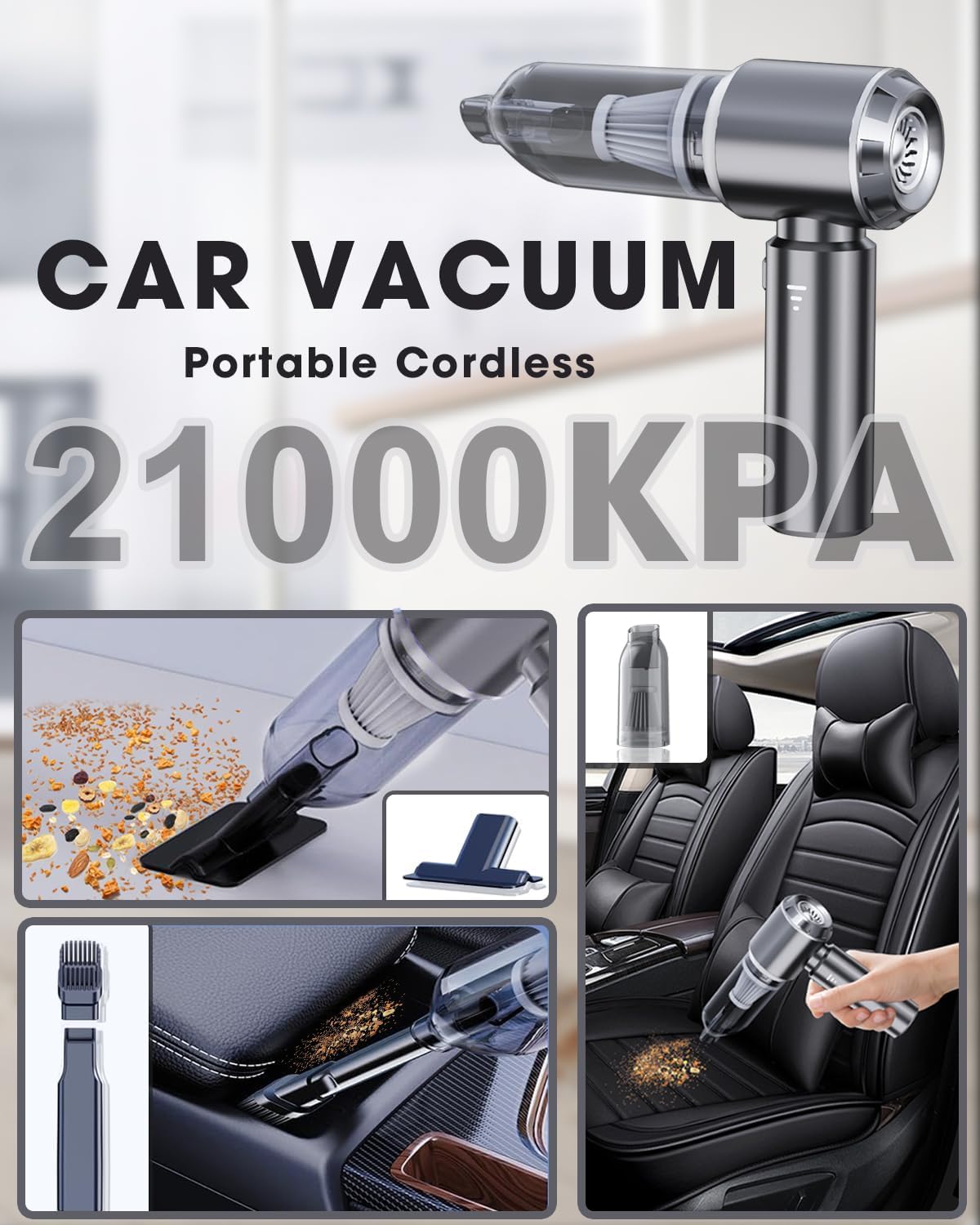 This handheld vacuum cleaner features 3 adjustable suction settings: 7000PA, 15000PA, and 22000PA, giving you complete control over the power for different cleaning tasks. Simply long press for 3 seconds to start the vacuum, and use the short press to cycle through the power levels to suit your needs.