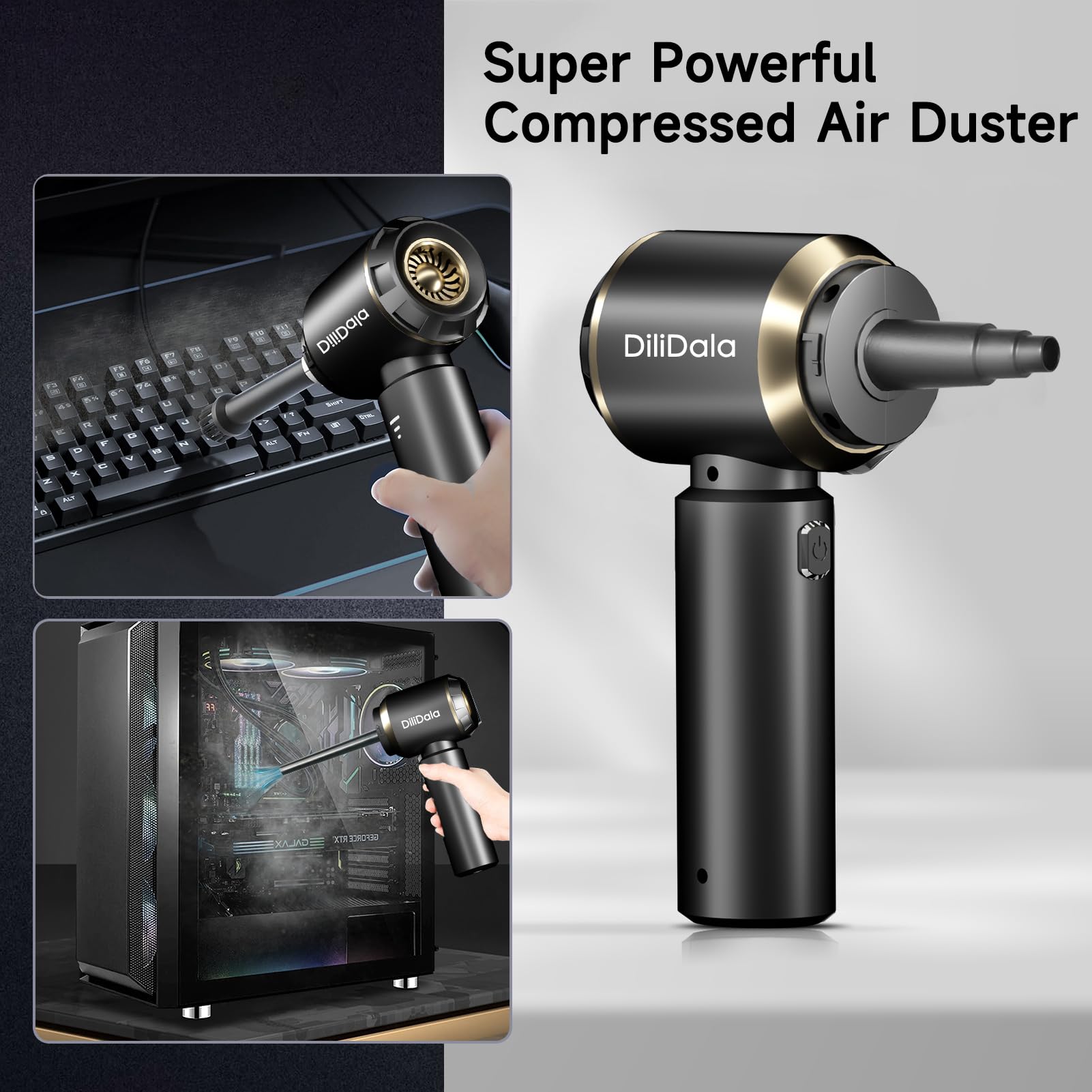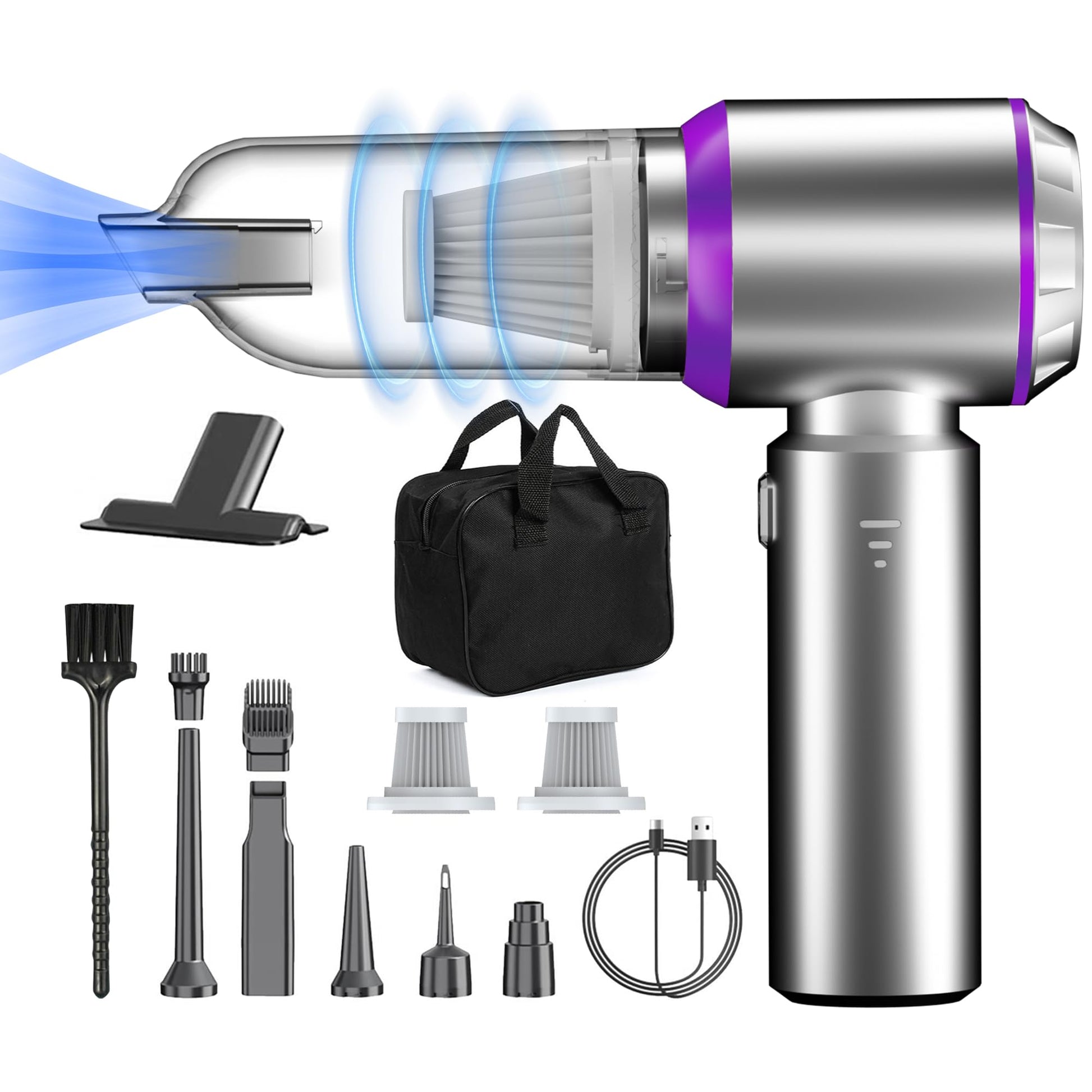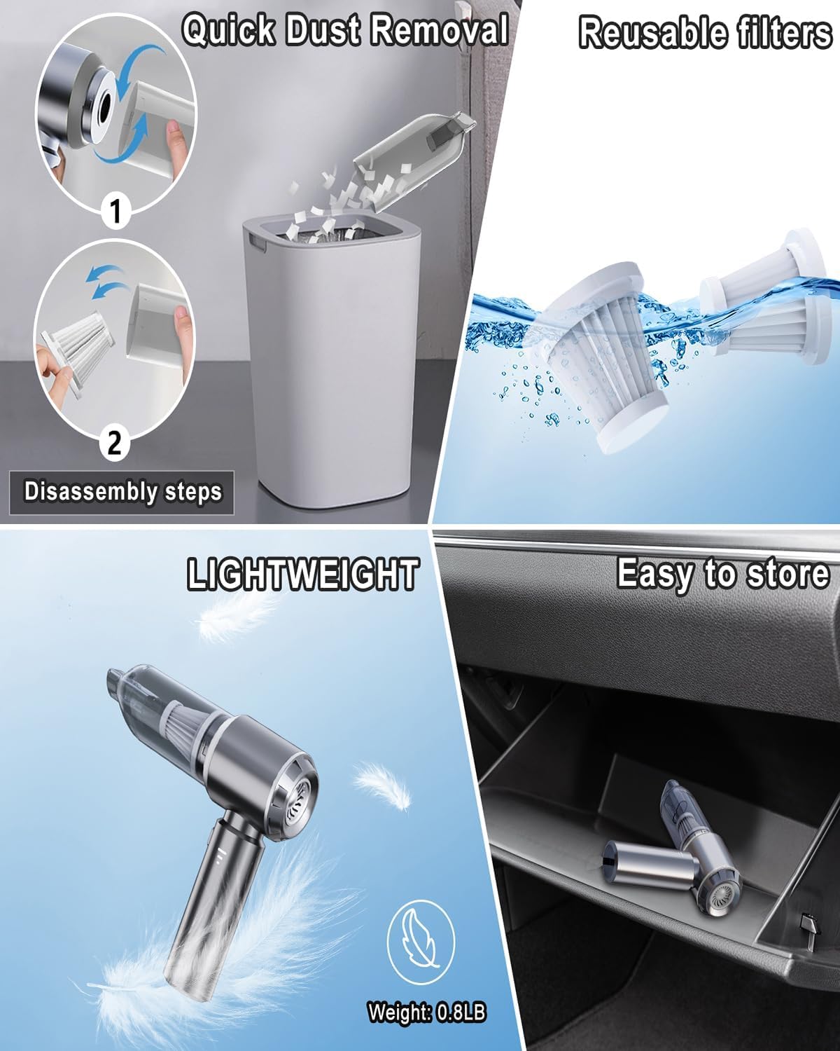 The DiliDala mini car vacuum is a 4-in-1 cleaning tool, offering dual modes of blowing and sucking for a wide range of tasks. Use the blower function to remove dust and debris from hard-to-reach places like computer keyboards, cars, and carpets. Switch to the vacuum mode to clean pet hair, crumbs, and other small particles from your desk, floors, and other surfaces. This multifunctional tool is ideal for quick clean-ups and maintenance jobs.