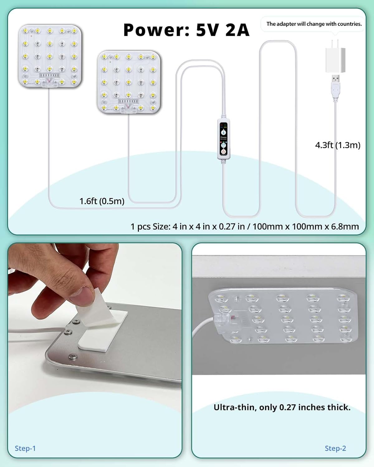 Get growing instantly with our easy-to-install LED grow light. Simply mount the lightweight panels using the included double-sided tape – no tools or complicated setups required! These adhesive grow lights are perfect for small potted plants, succulents, cacti, and starting seedlings. Enjoy hassle-free setup and start seeing results immediately.