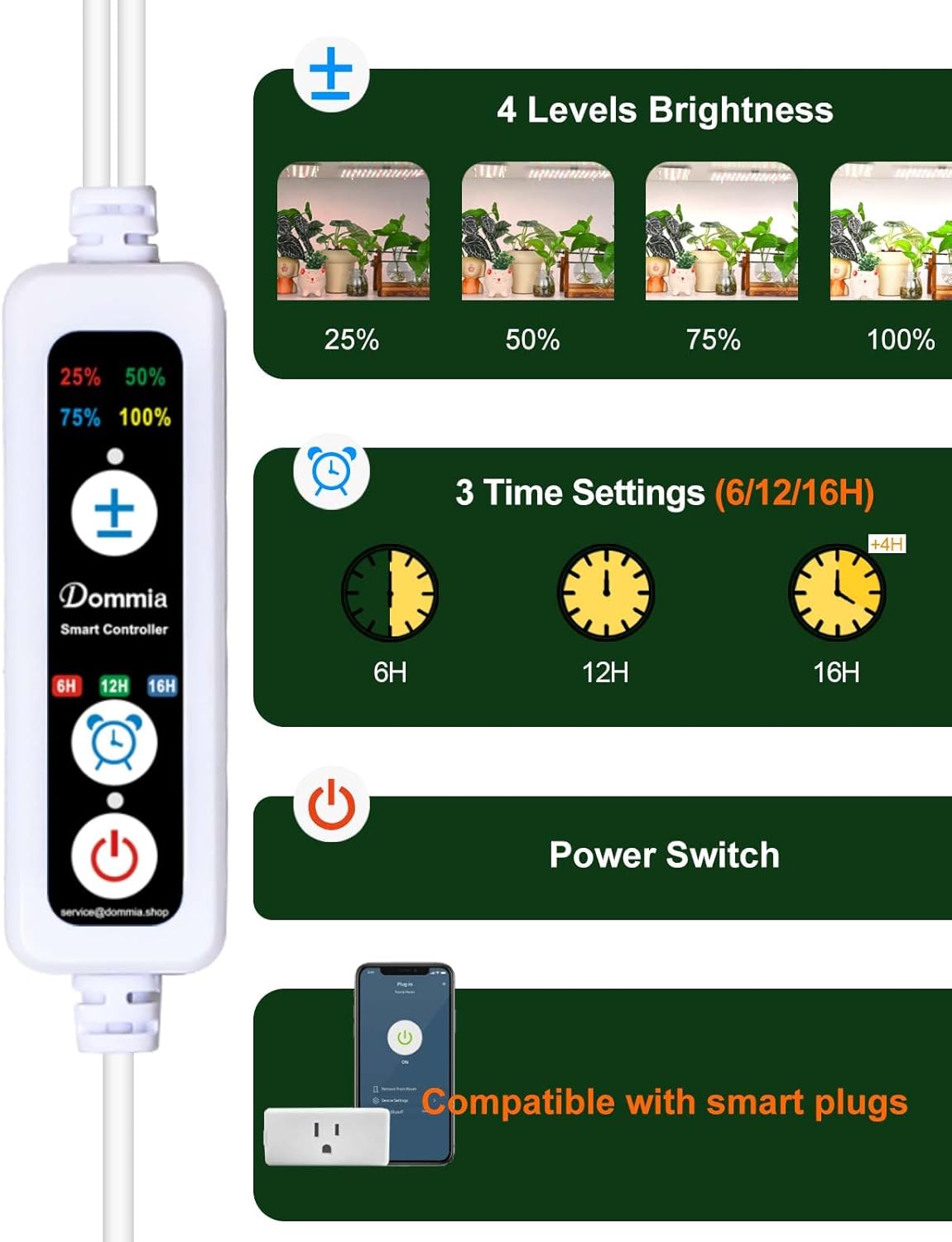 Simplify your plant care routine with the integrated 24-hour cycle timer. Set the timer for 6, 12, or 16 hours and let the automatic timer grow light handle the rest. This convenient feature ensures consistent and reliable lighting cycles, even when you're away, promoting optimal plant health and growth without daily intervention. It's also smart plug compatiblefor even greater automation.
