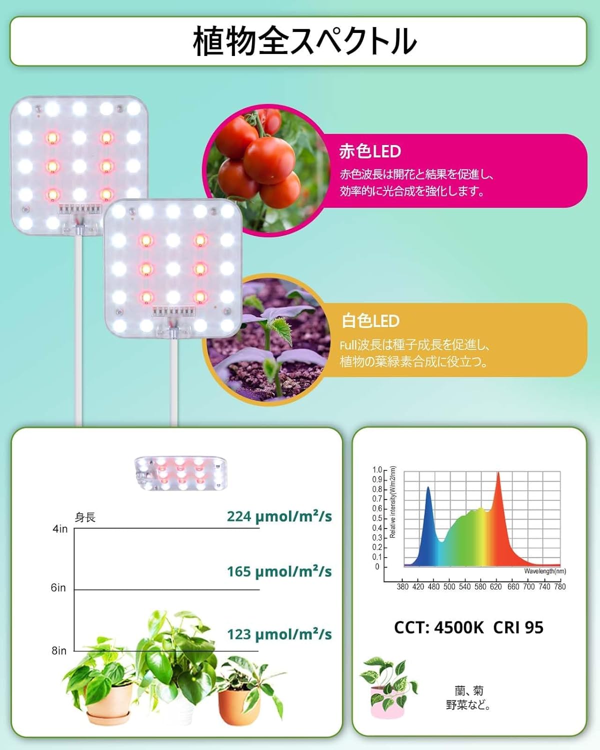 Maximize your growing space with our space-saving LED grow light panel. The ultra-thin design, measuring only 3.94 x 3.94 x 0.2 inches, allows for discreet and seamless integration into any indoor garden setup. The compact grow light is easy to position and won't overwhelm your plants or décor. A generous 1.8m power cord provides flexible placement options.