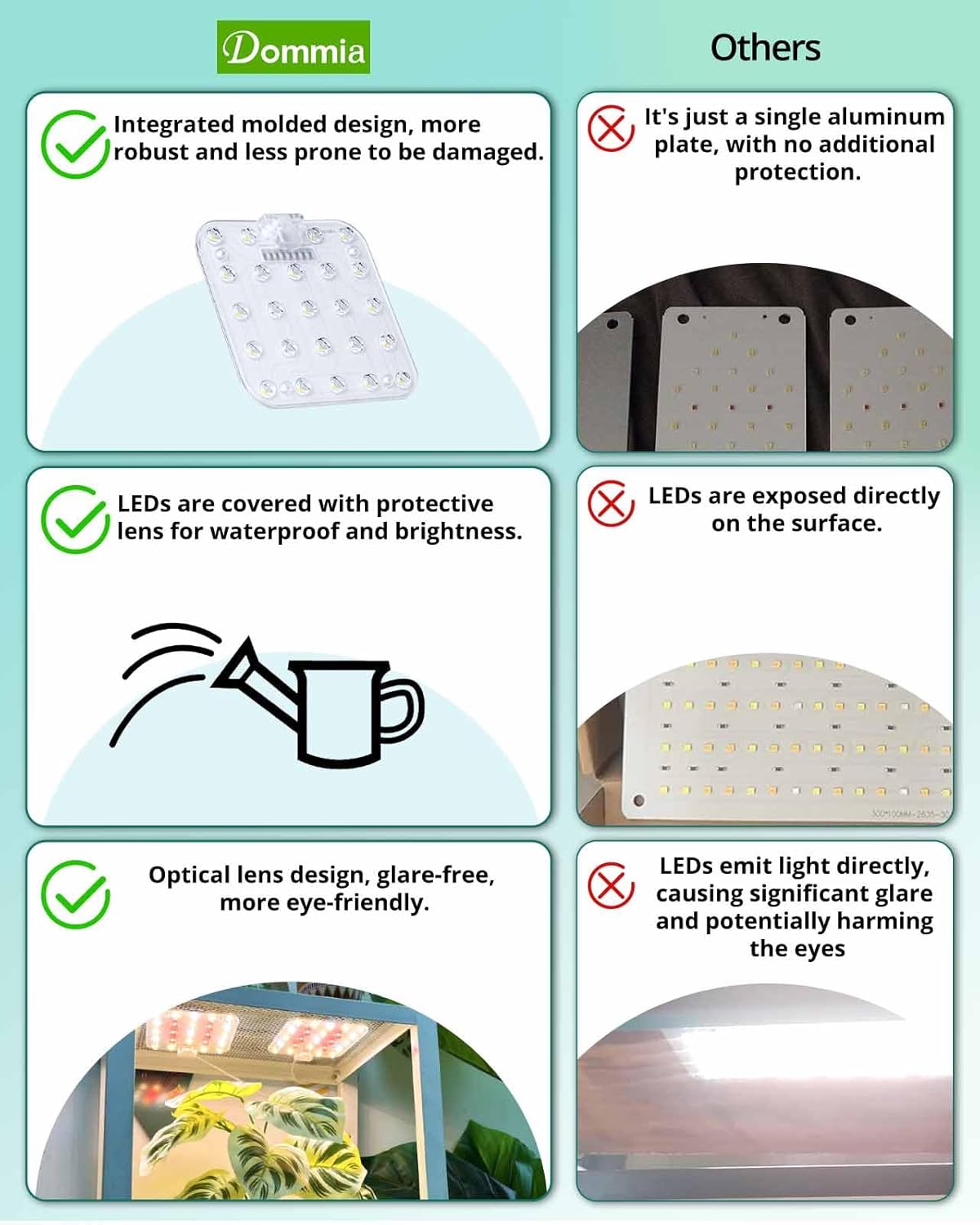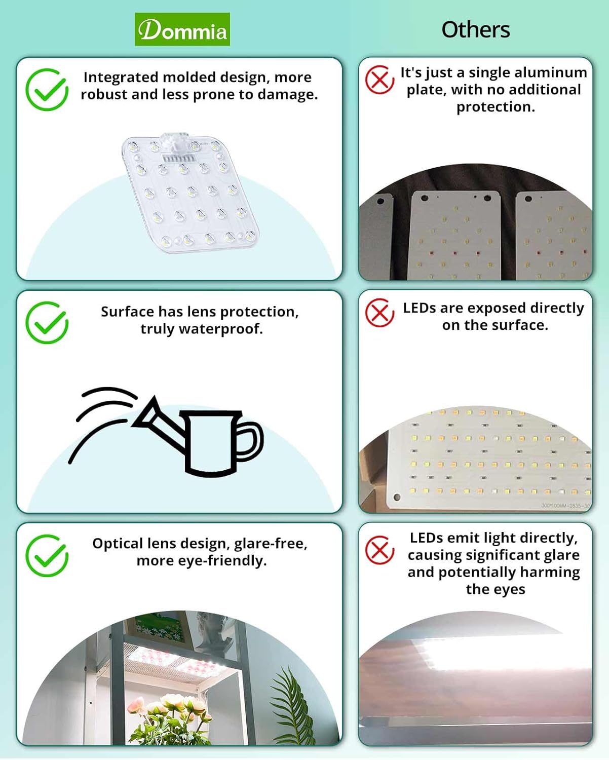 Experience a new level of growth with our innovative optical lens grow light. DOMMIA's advanced design incorporates optical lenses and thin aluminum panels to concentrate light energy, achieving over 95% light efficiency. This high-efficiency LED grow light ensures minimal light waste and maximum delivery to your plants, resulting in exceptional growth and yields.