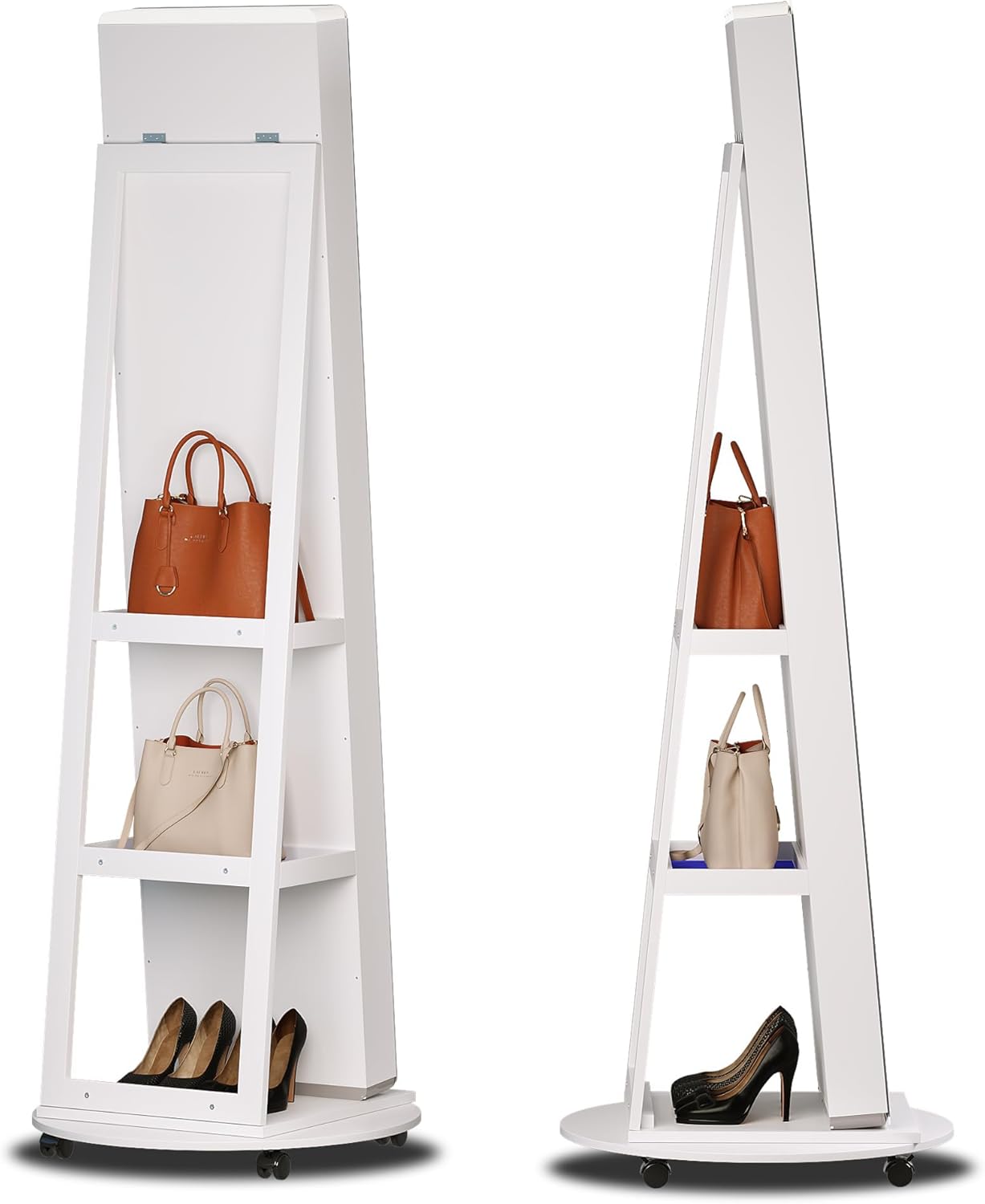 • Three-tier storage shelves behind the mirror allow you to store handbags, shoes, and daily essentials.