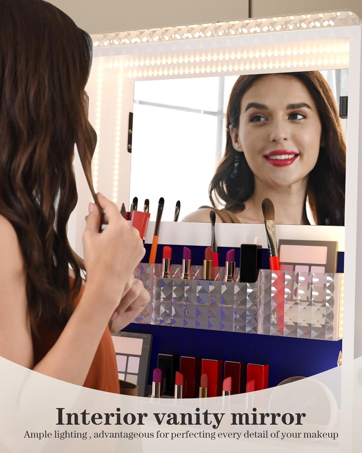 Certainly, your cosmetics and makeup tools also have their designated storage space. This standing mirror is like your portable toolbox.