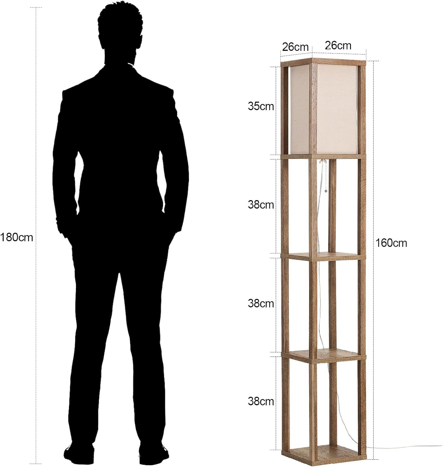 Need extra storage but don't have the room for bulky furniture? Each sturdy shelf of this multifunctional floor lamp can hold up to 5kg, making it ideal for organizing essentials without taking up valuable floor space. Place it by your TV, next to the sofa, or by your bedside – its compact 26x26cm footprint and 160cm height are perfectly sized for any room. This clever design helps you maximize your living area, creating an uncluttered and serene environment. It’s also a thoughtful gift for anyone looking to optimize their home!
