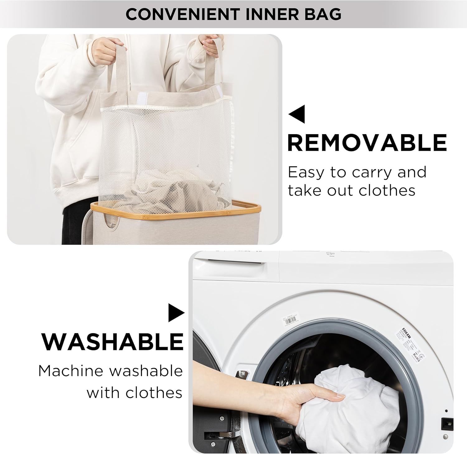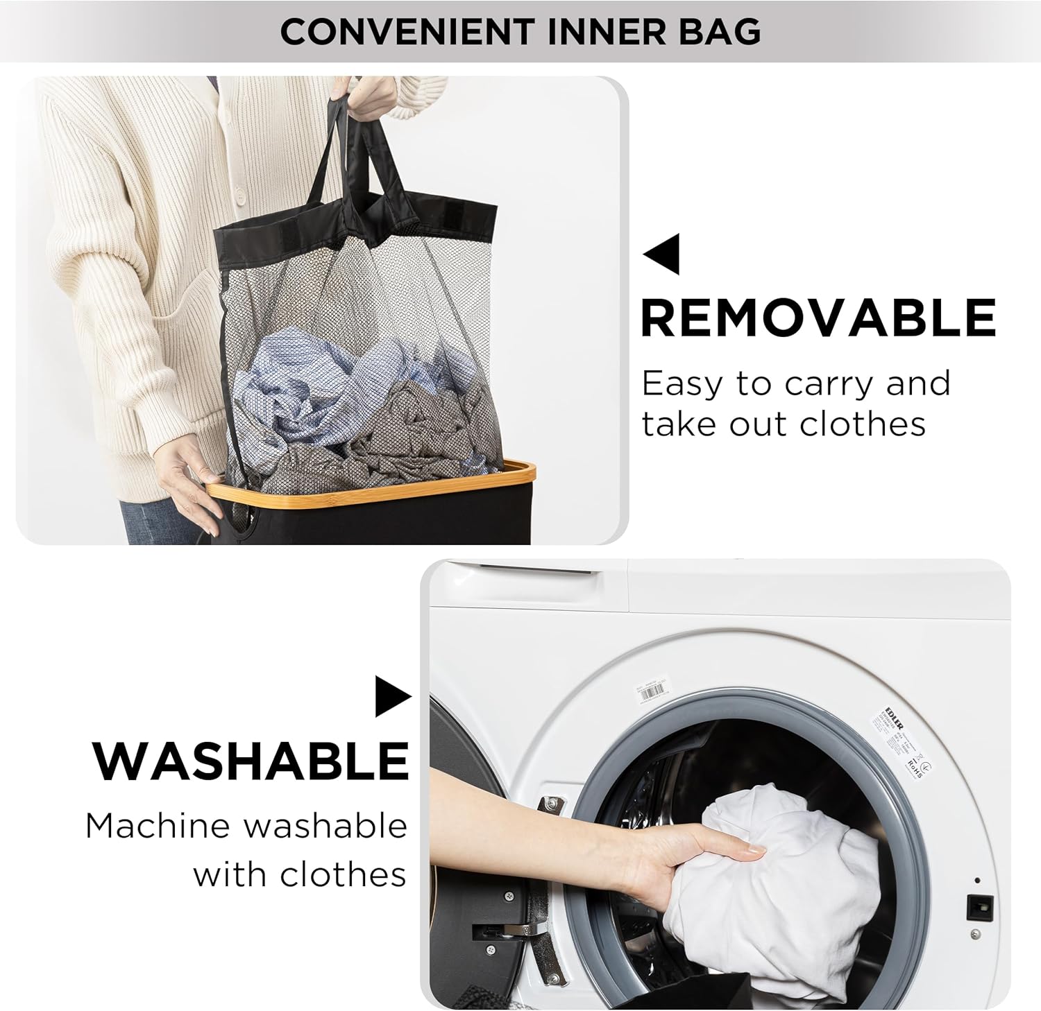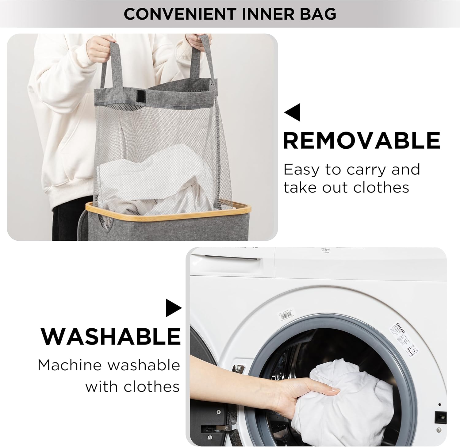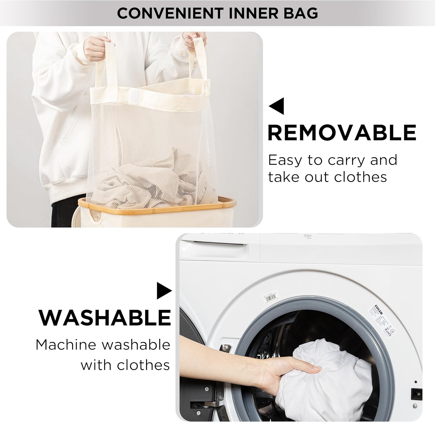 Simplify your sorting process with the intelligent double compartment structure. Featuring two sections and two built-in removable laundry bags, you can easily separate lights from darks, delicates from everyday wear, or even individual family members' clothes. This clever design makes laundry day quicker and more efficient, saving you time and effort.