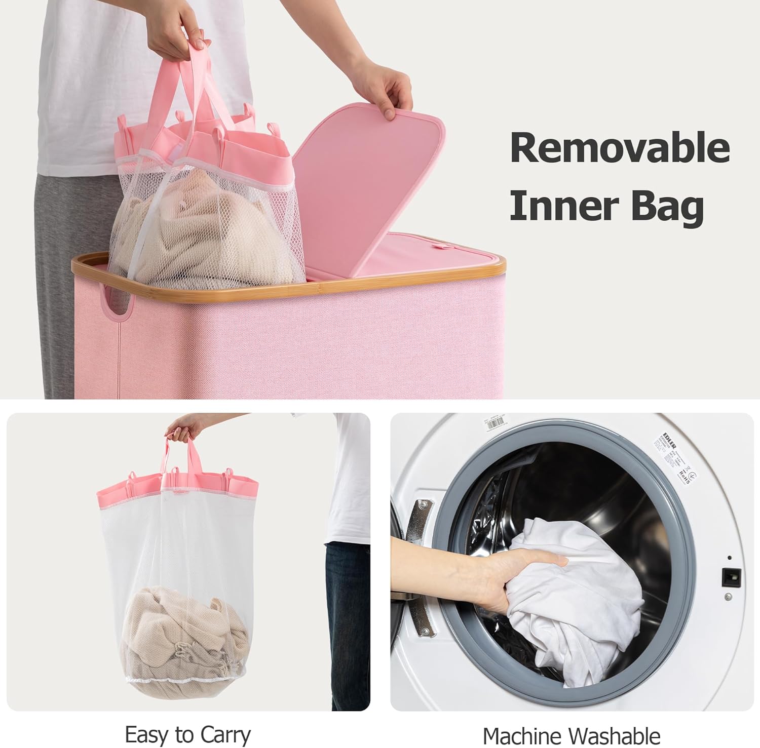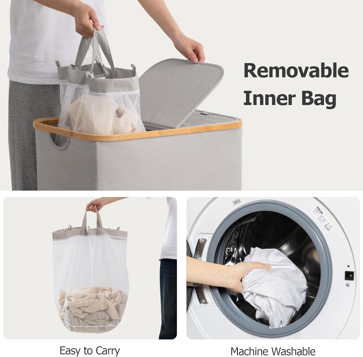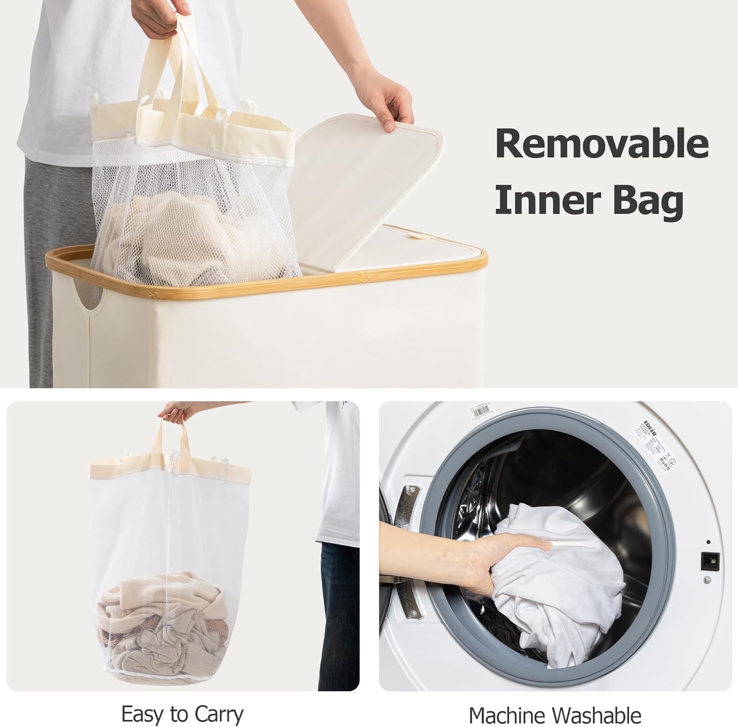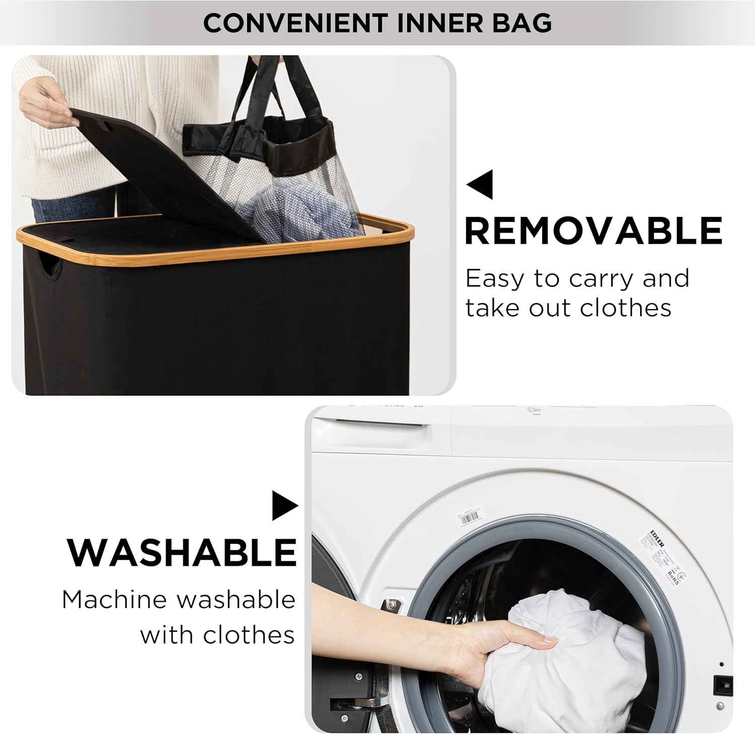 Simplify your sorting process with the intelligent double compartment structure. Featuring two sections and two built-in removable laundry bags, you can easily separate lights from darks, delicates from everyday wear, or even individual family members' clothes. This clever design makes laundry day quicker and more efficient, saving you time and effort.