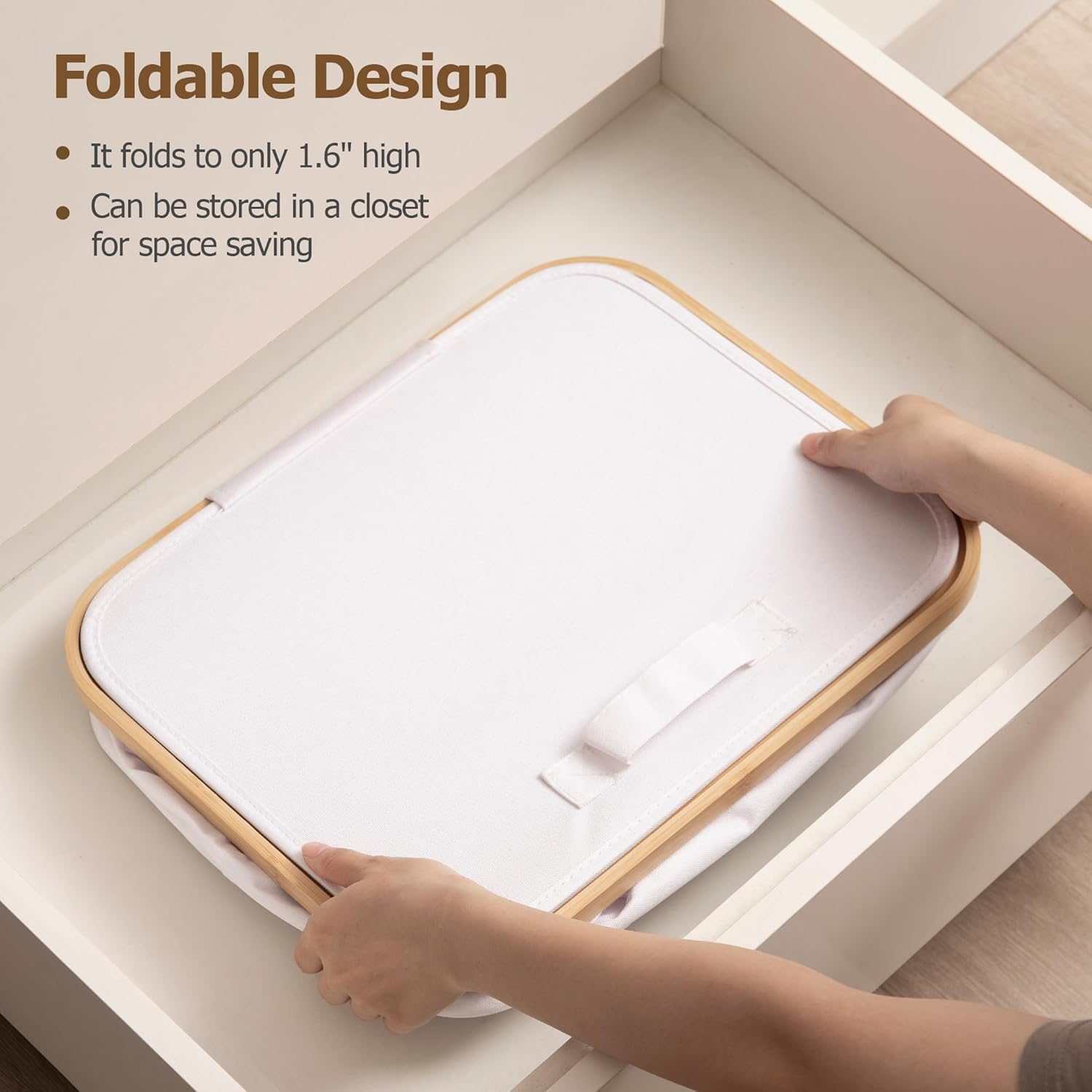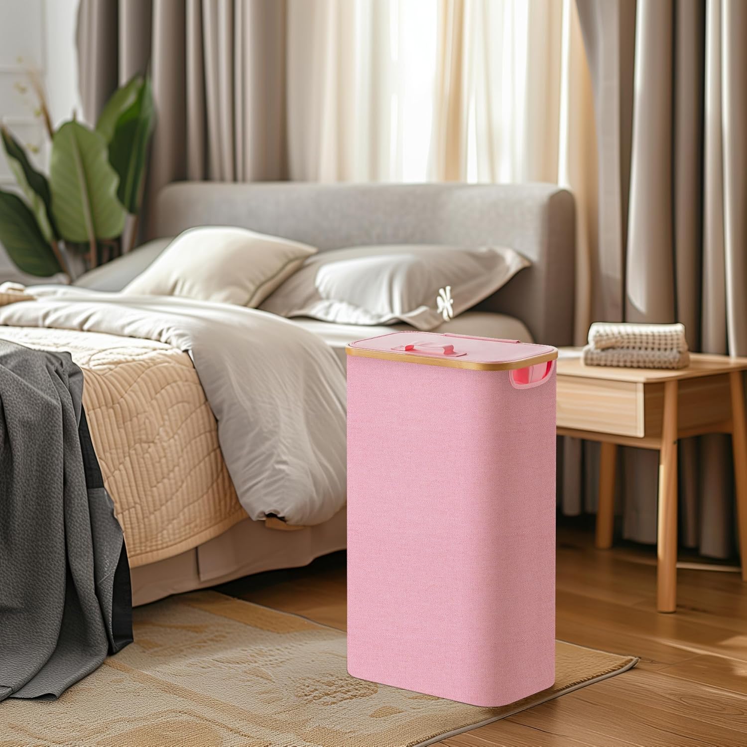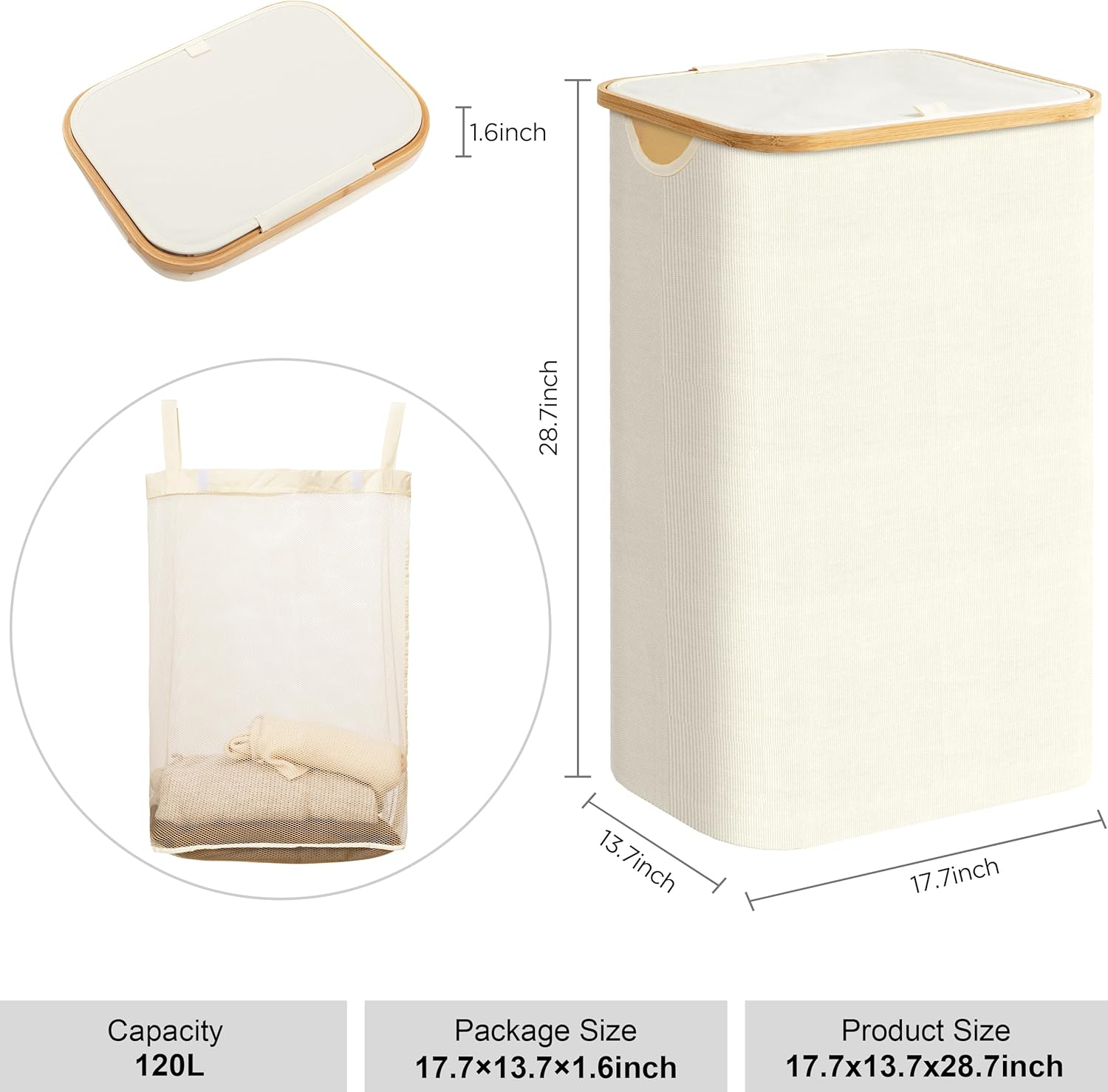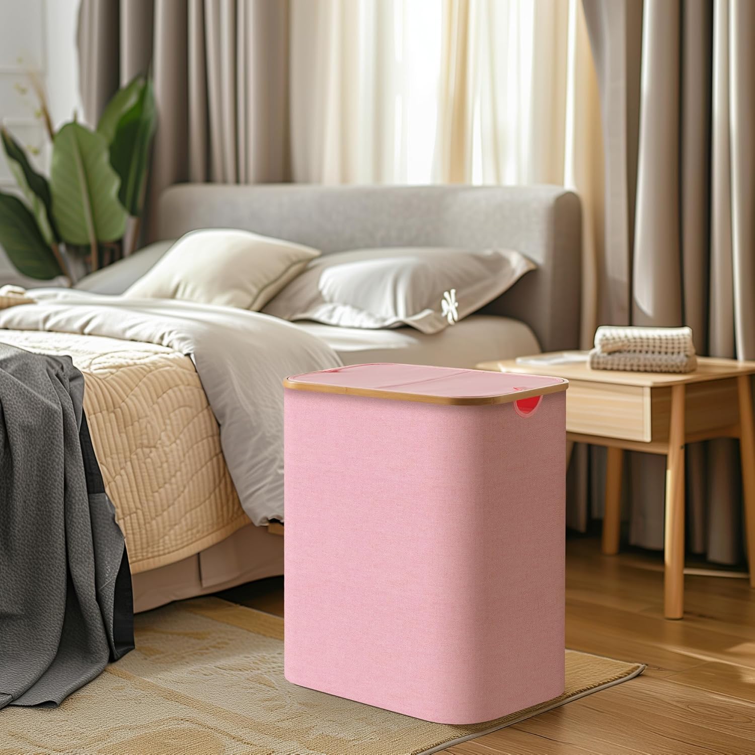 Maintain a tidy and inviting home environment with the integrated, sturdy lid. This practical feature not only conceals dirty laundry from view but also helps to contain any odours, keeping your space fresh. The lid is easy to open and close,and its flat surface even provides a convenient spot for decorating with small items, adding a touch of charm to your room. Elegant bamboo handles make transport effortless.