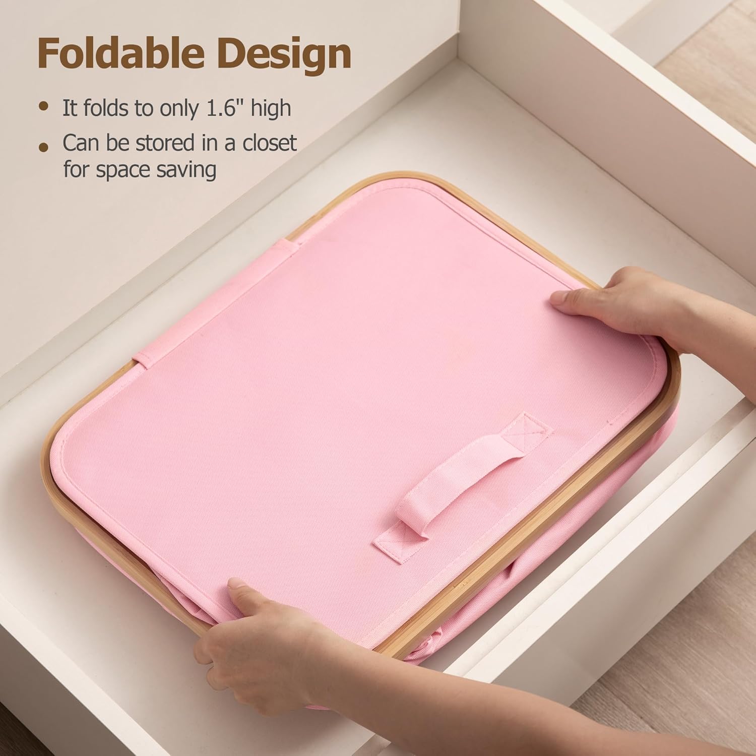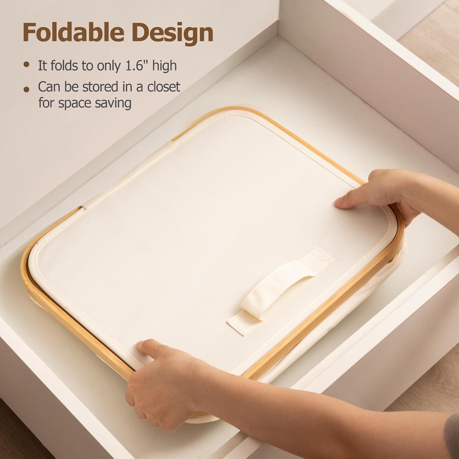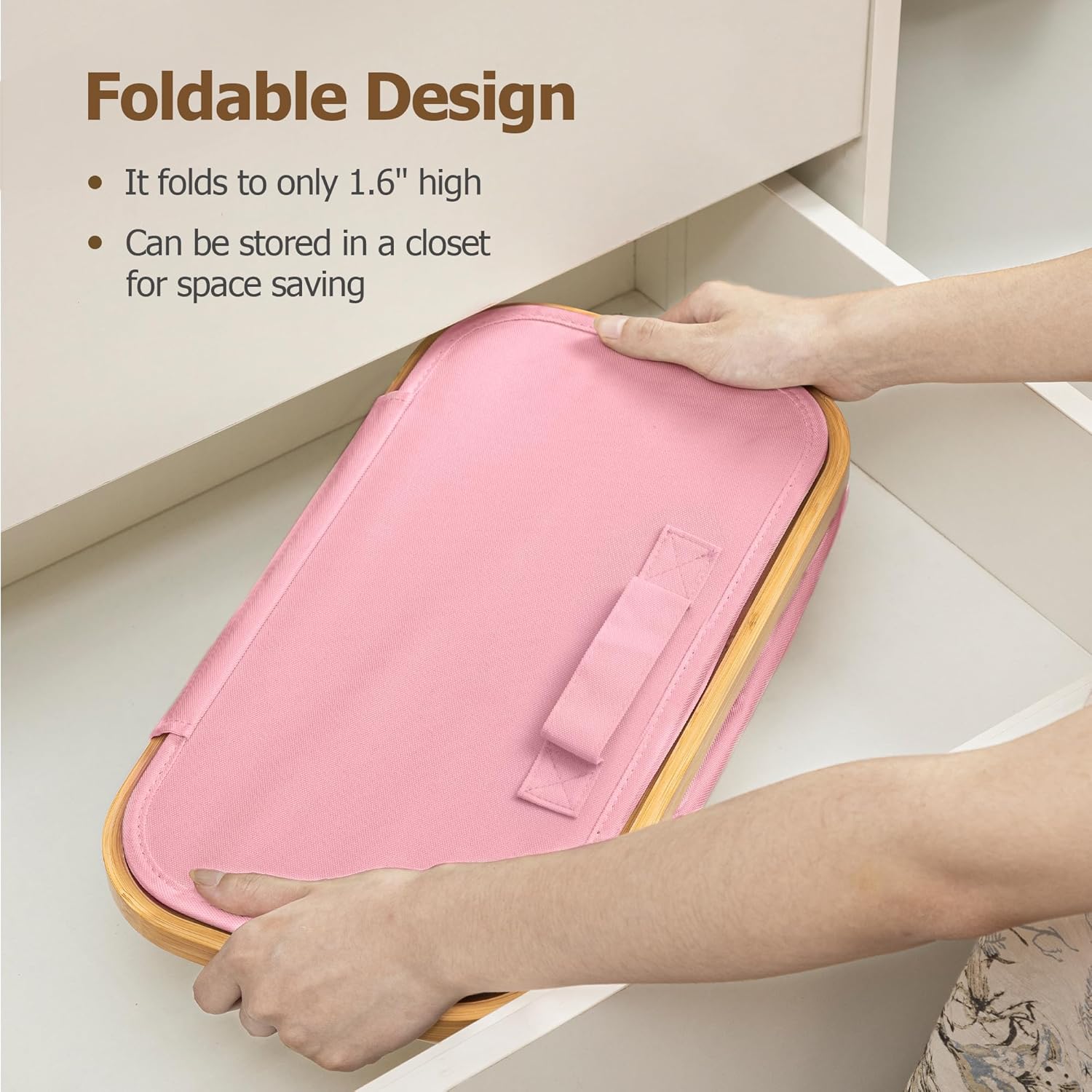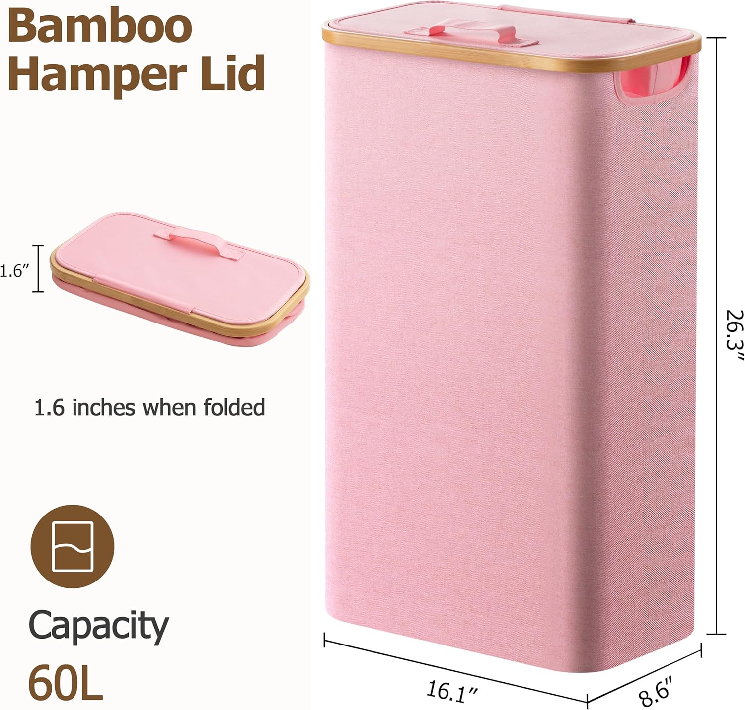Maintain a tidy and inviting home environment with the integrated, sturdy lid. This practical feature not only conceals dirty laundry from view but also helps to contain any odours, keeping your space fresh. The lid is easy to open and close,and its flat surface even provides a convenient spot for decorating with small items, adding a touch of charm to your room. Elegant bamboo handles make transport effortless.