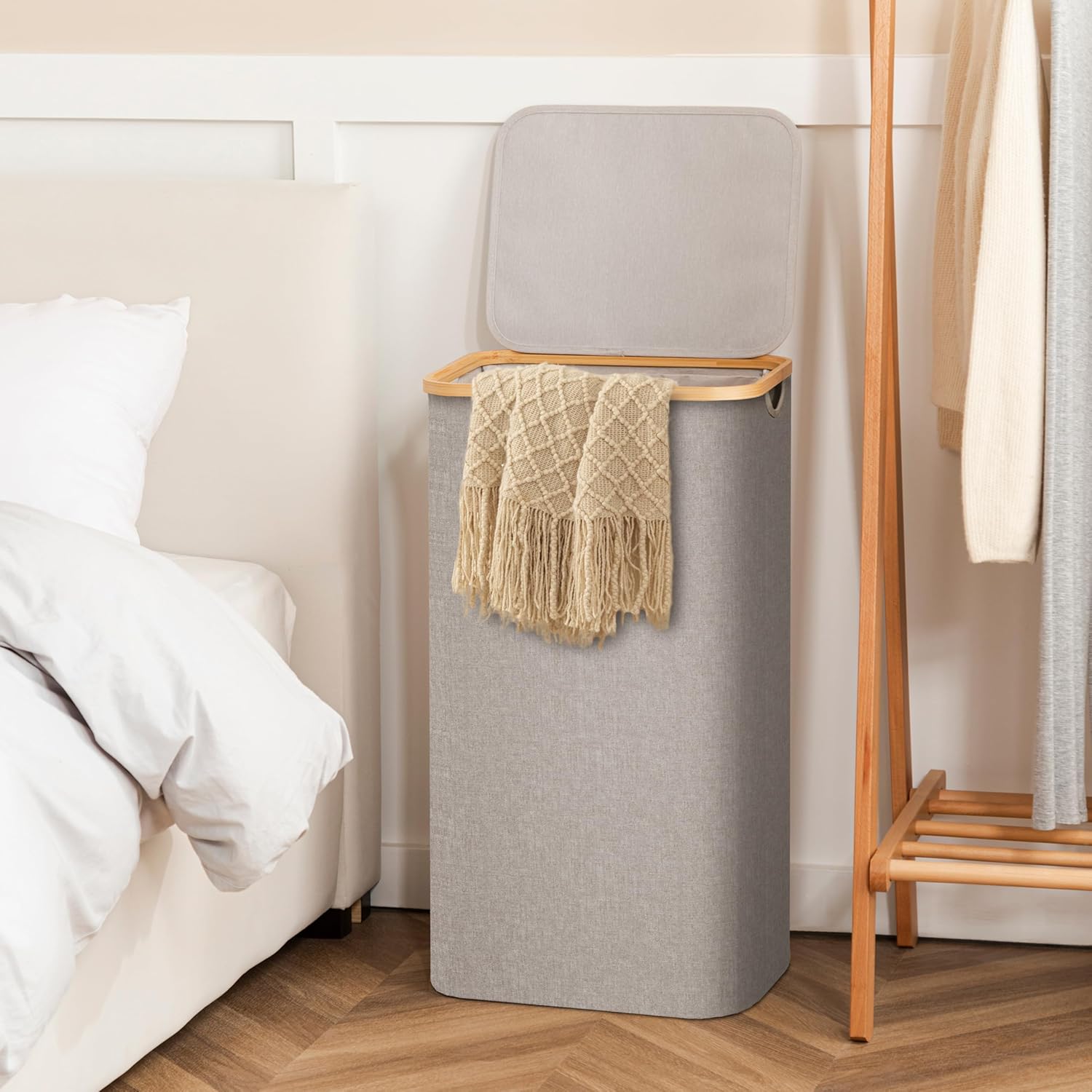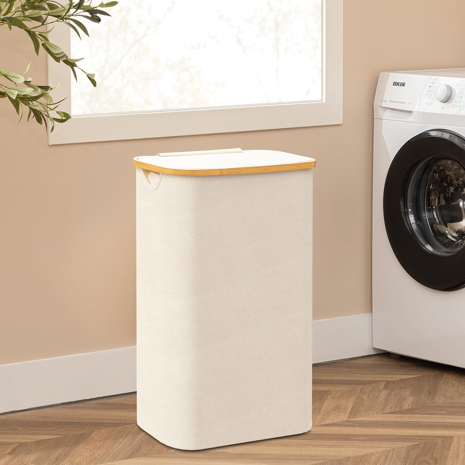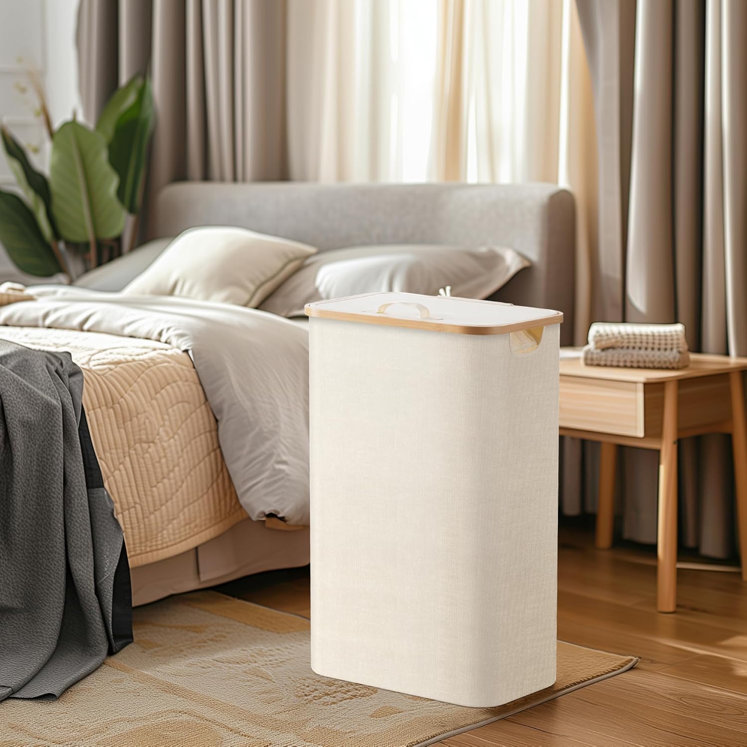 Discreet & Stylish: Laundry Basket with Lid & Bamboo Handles