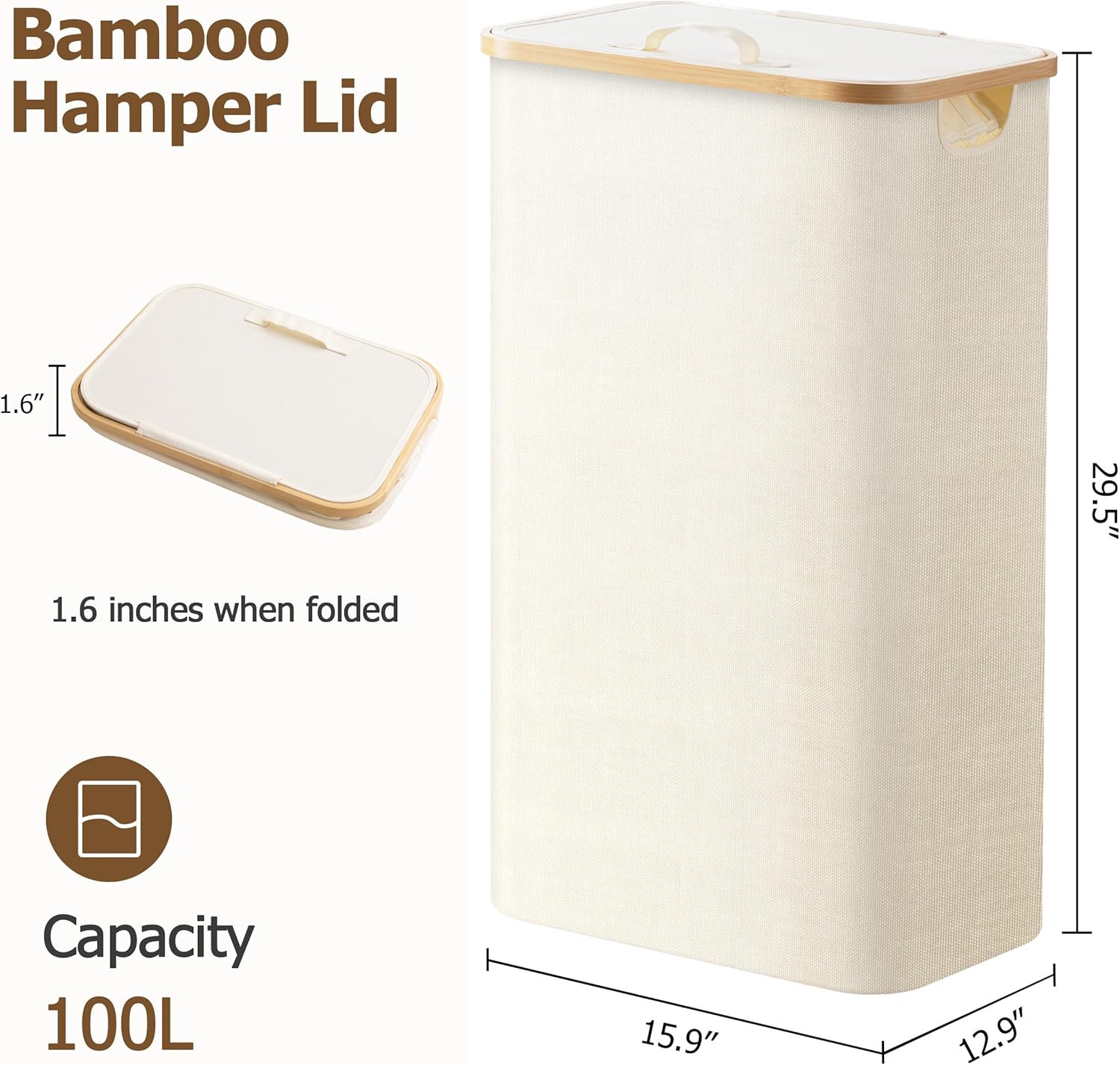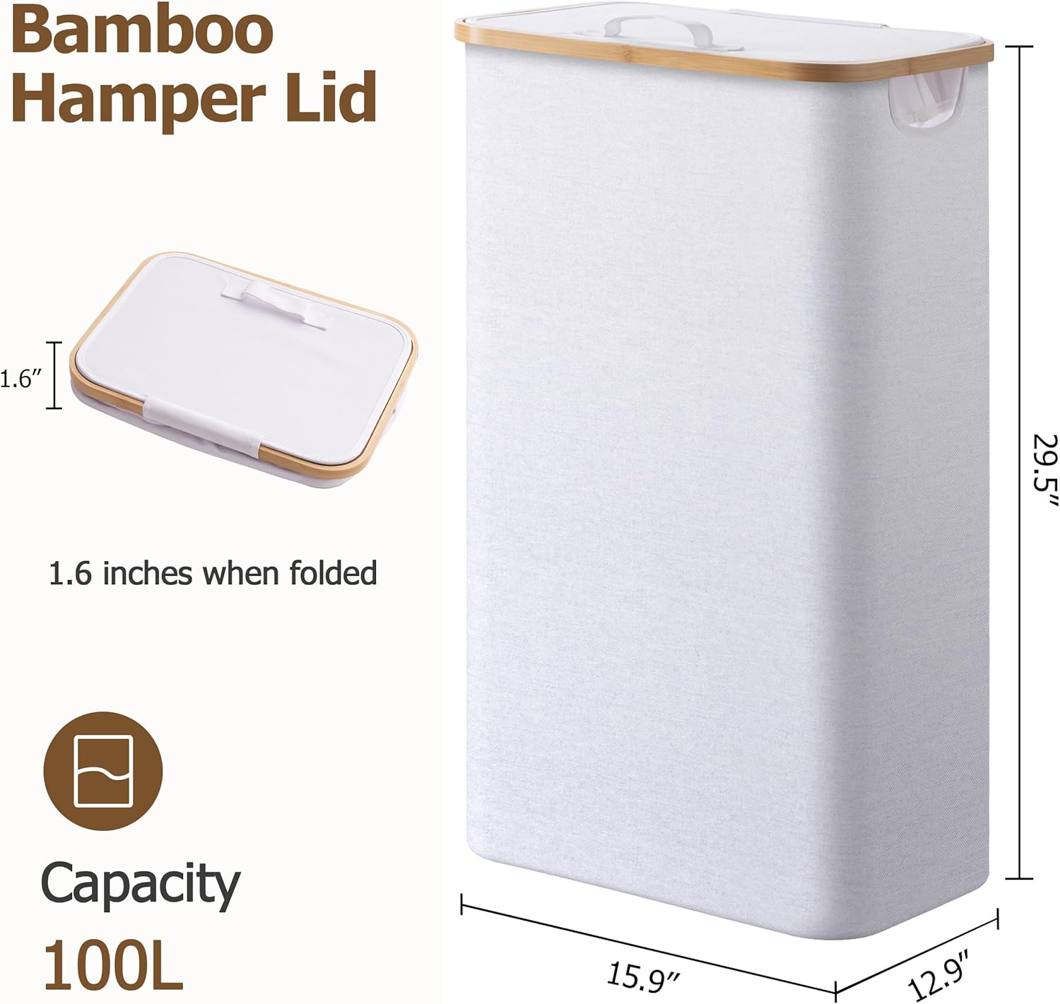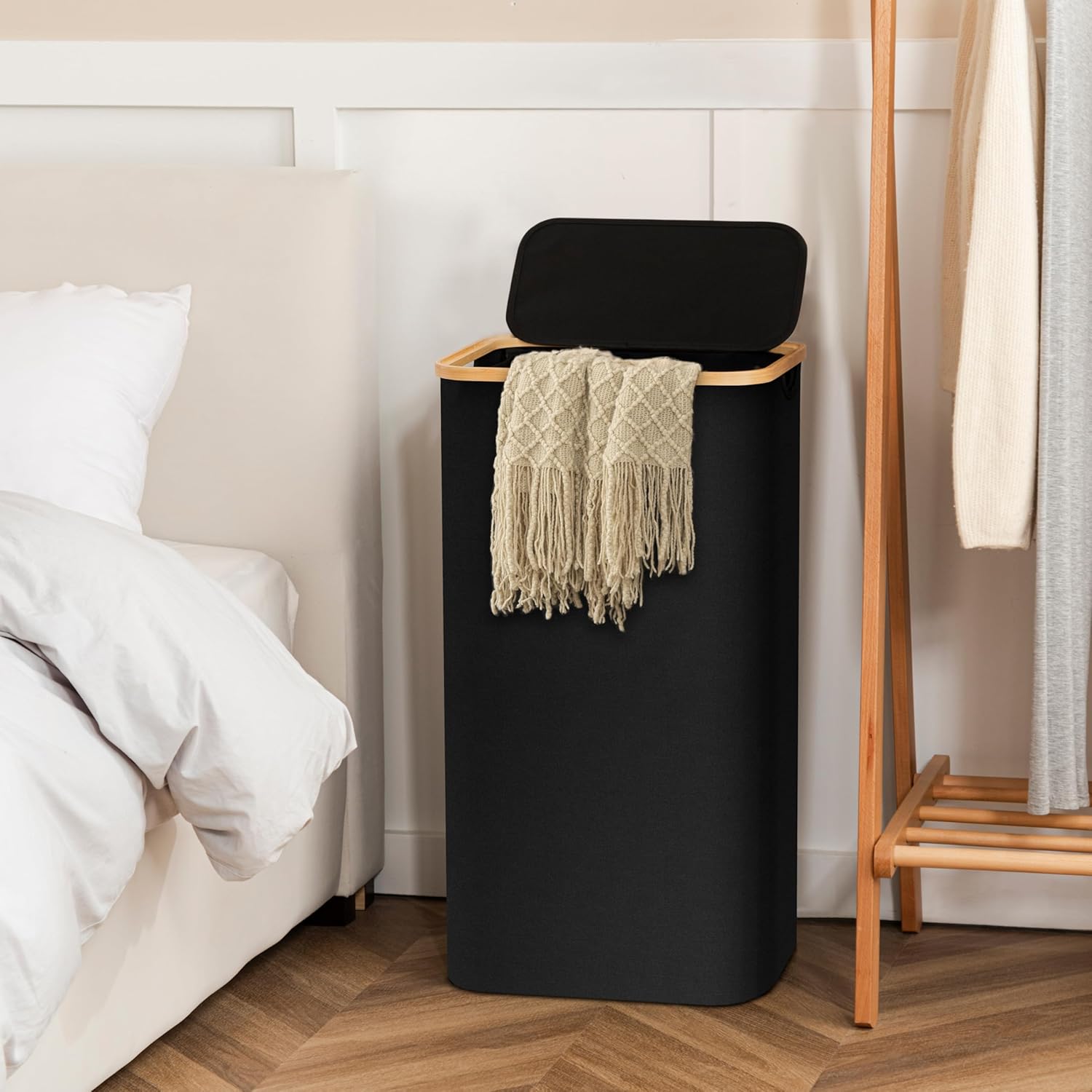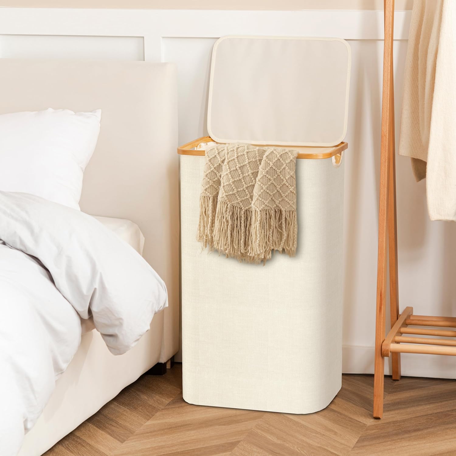 Discreet & Stylish: Laundry Basket with Lid & Bamboo Handles