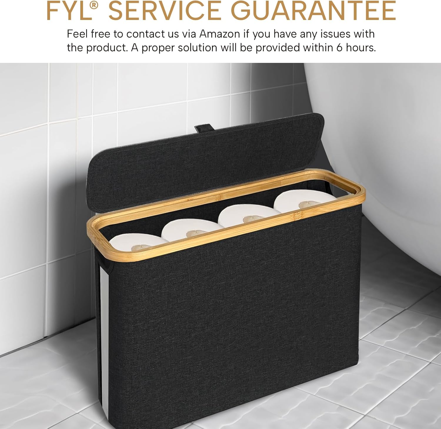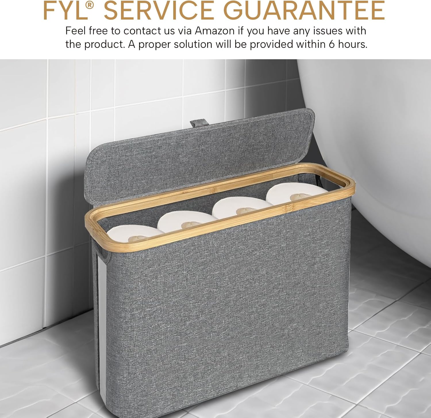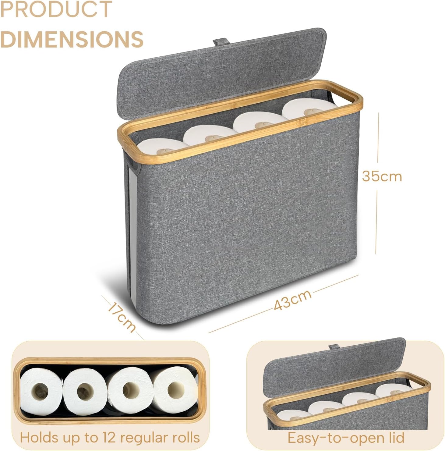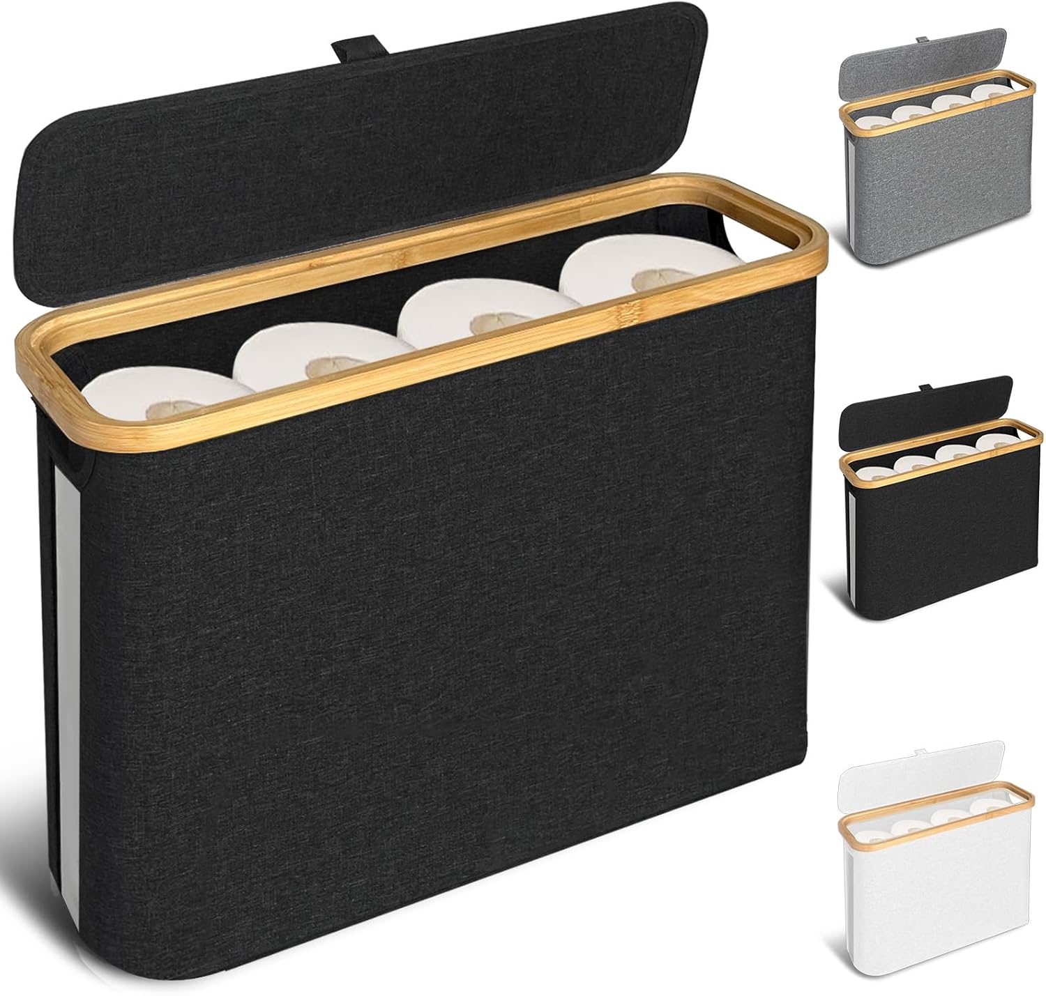 FYL Toilet Roll Storage, Toilet Paper Storage, Portable Foldable Water-Repllent Bamboo Toilet Paper 12 Rolls Holder Storage With Handle For Bathroom (White)