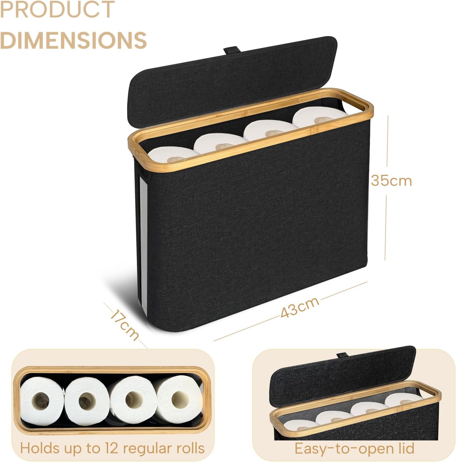 - 【Compact & Foldable】Great for smaller bathrooms or tight spaces, this compact toilet roll holder storage organizer efficiently holds up to 12 regular-sized toilet paper rolls. When not in use, its foldable structure ensures that it can be stored away effortlessly without occupying unnecessary space.