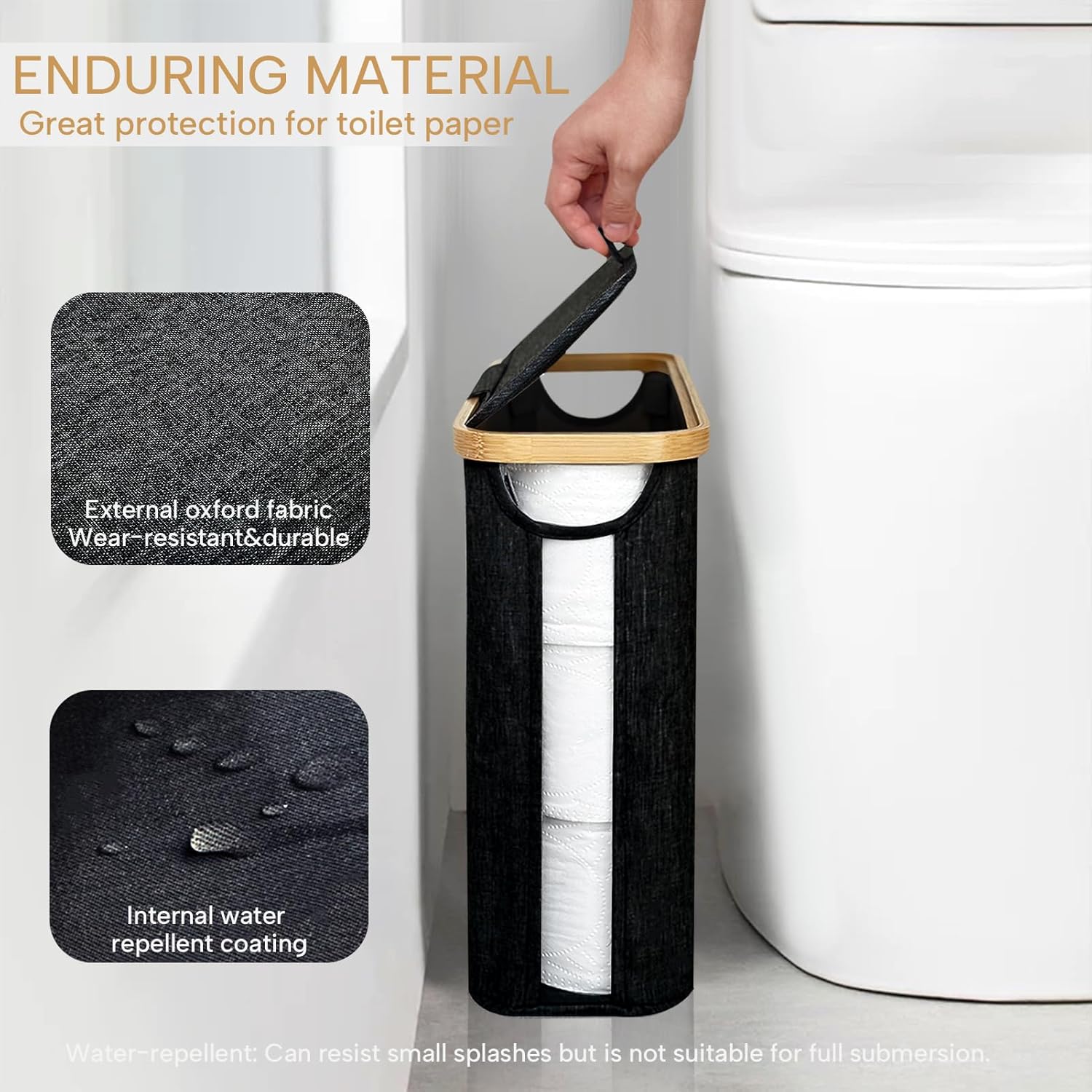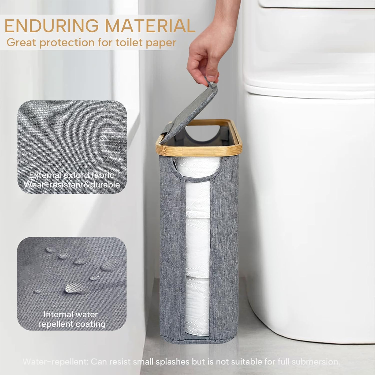 - 【Enduring Material & Sturdy Construction】Crafted from premium Oxford fabric, this toilet roll storage basket offers exceptional durability and wear resistance. Its interior features a waterproof coating, ensuring optimal protection for paper products in humid environments like bathrooms. The non-slip foot pads at the base provide extra stability, ensuring the basket stays securely in place, even on smooth surfaces.