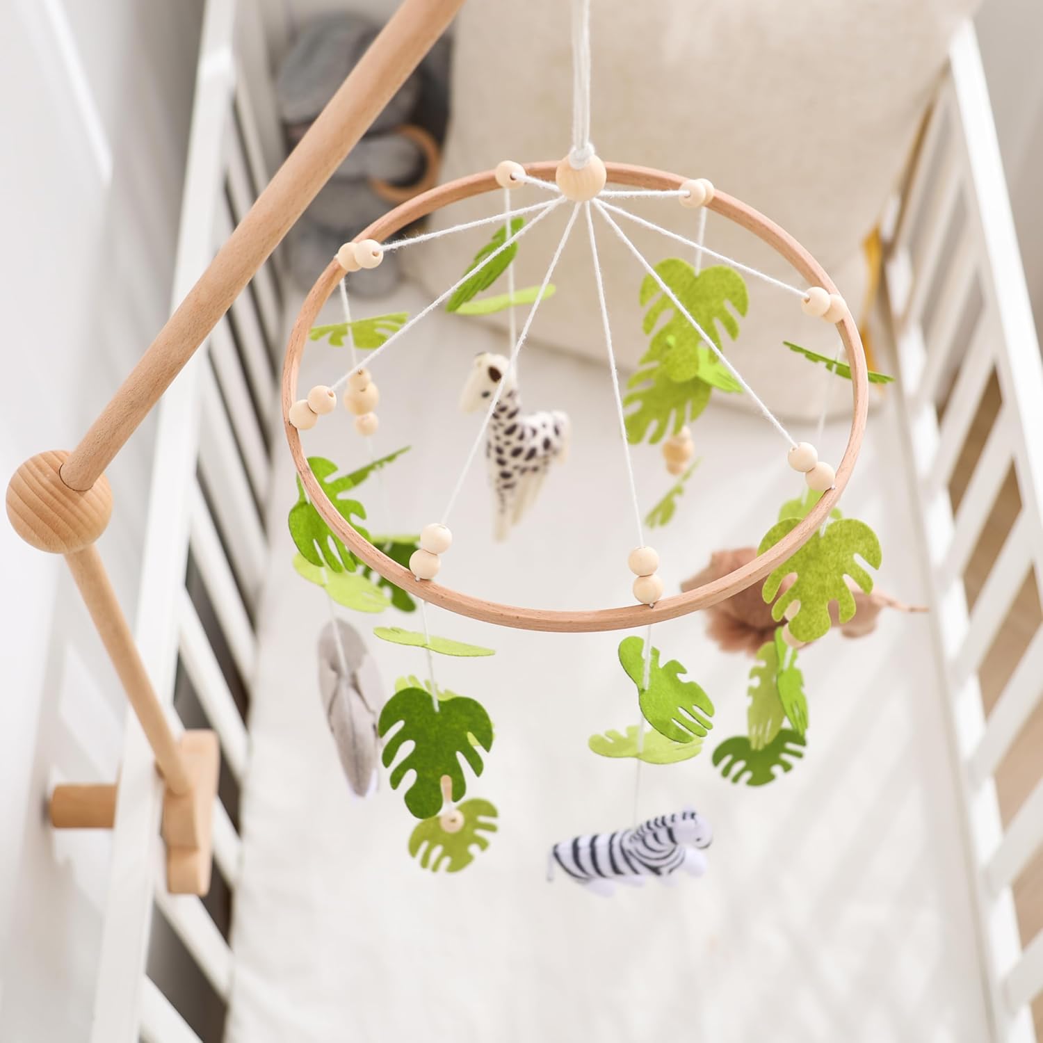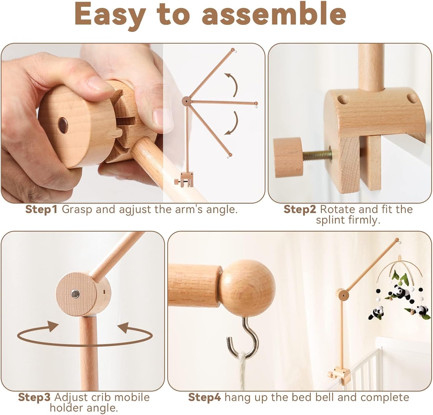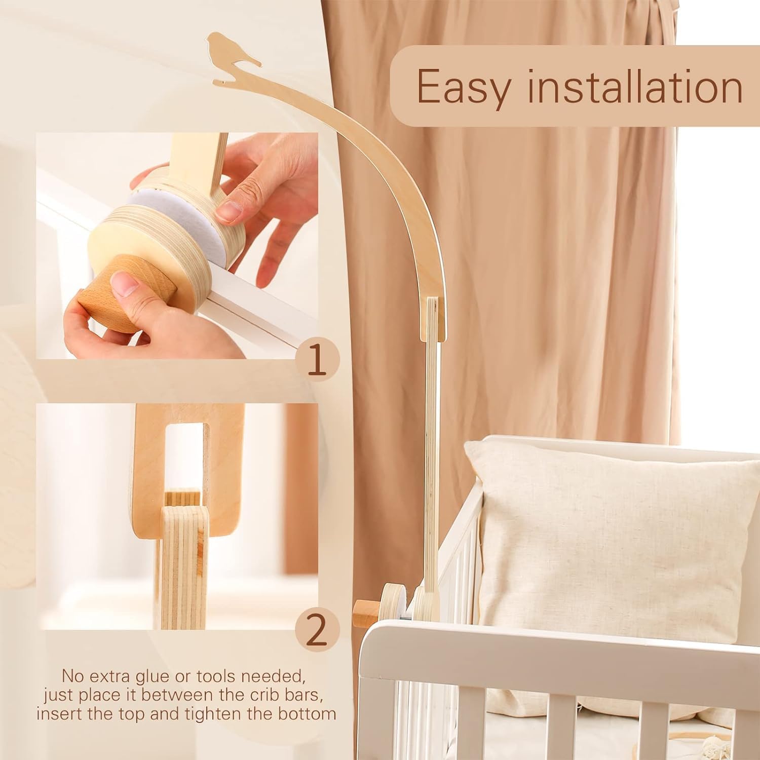 Eco-Friendly Beechwood Baby Crib Mobile Holder - Secure, Adjustable, 360° Rotation for No Side Rail Cribs