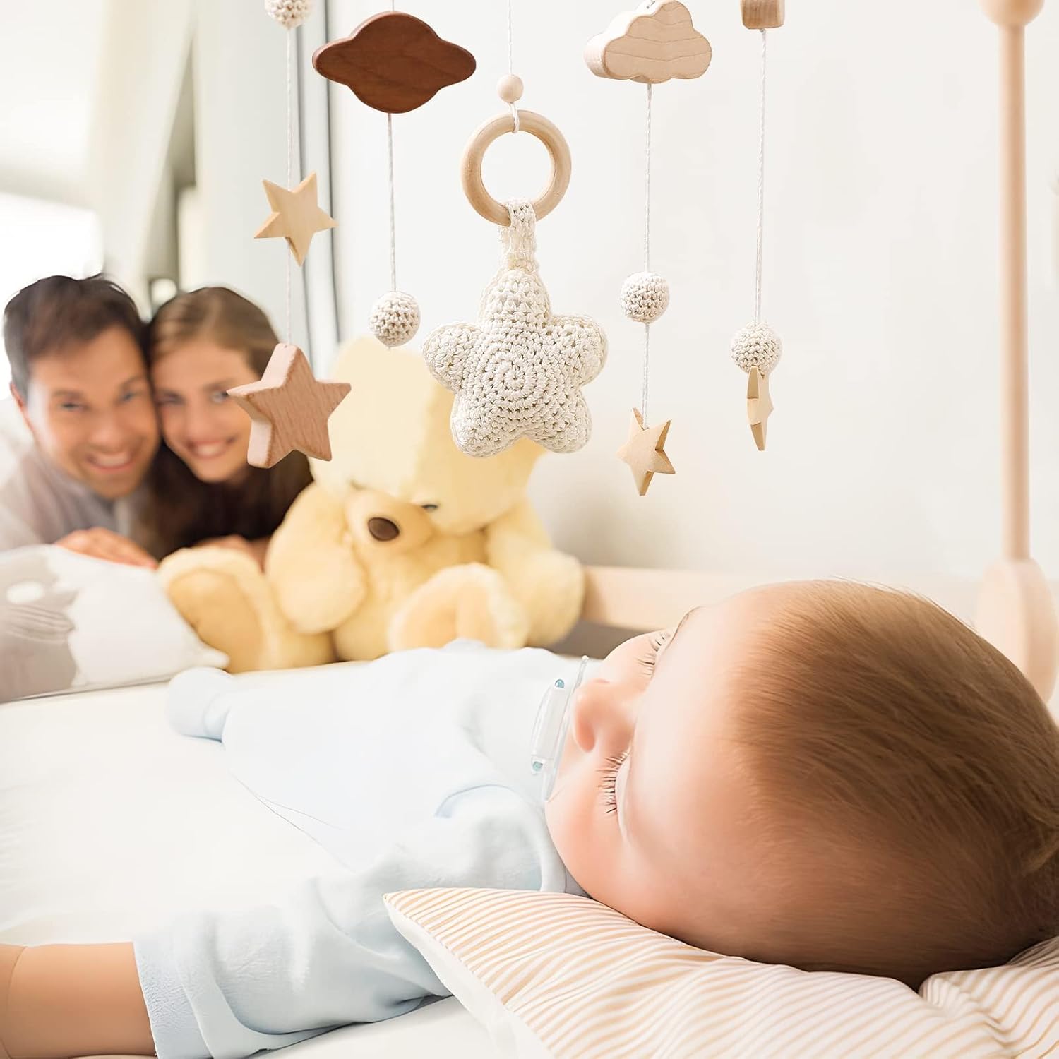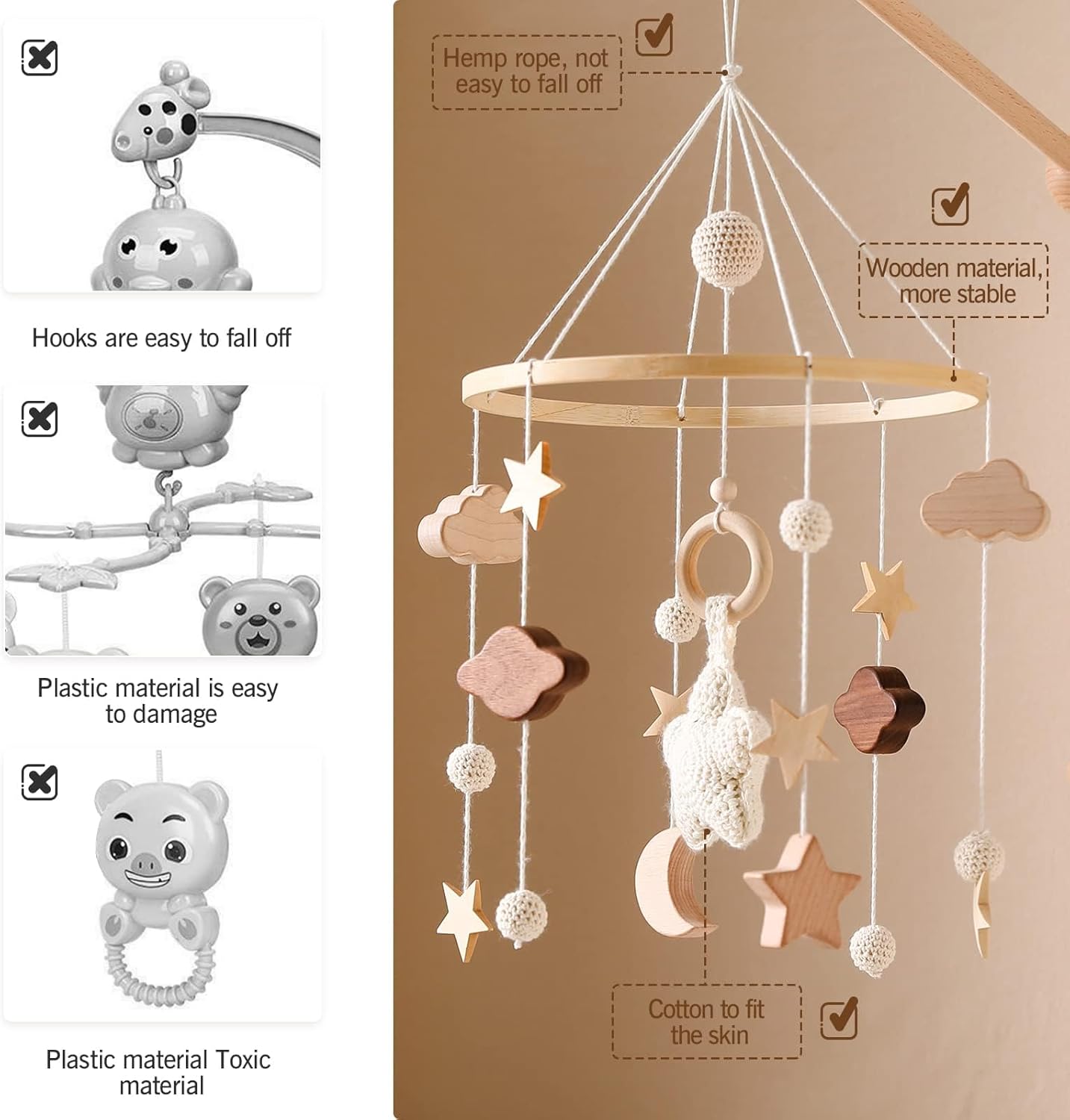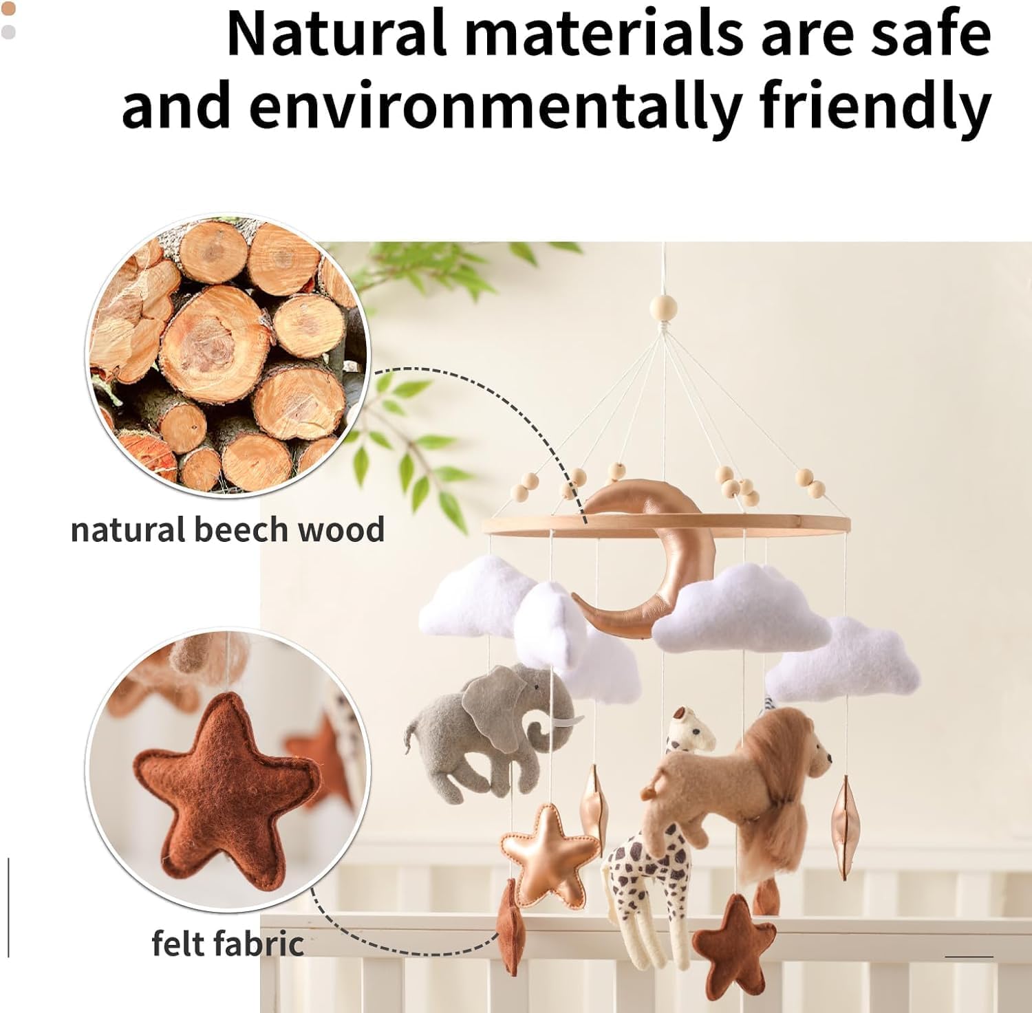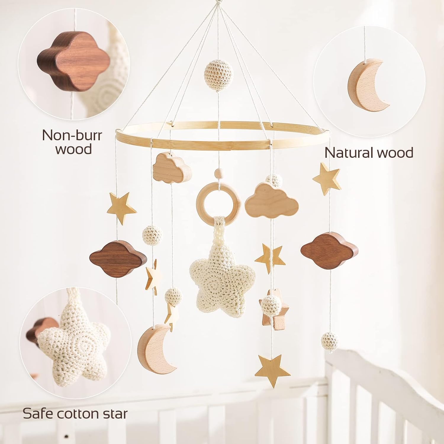 Eco-Friendly Beechwood Baby Crib Mobile Holder - Secure, Adjustable, 360° Rotation for No Side Rail Cribs