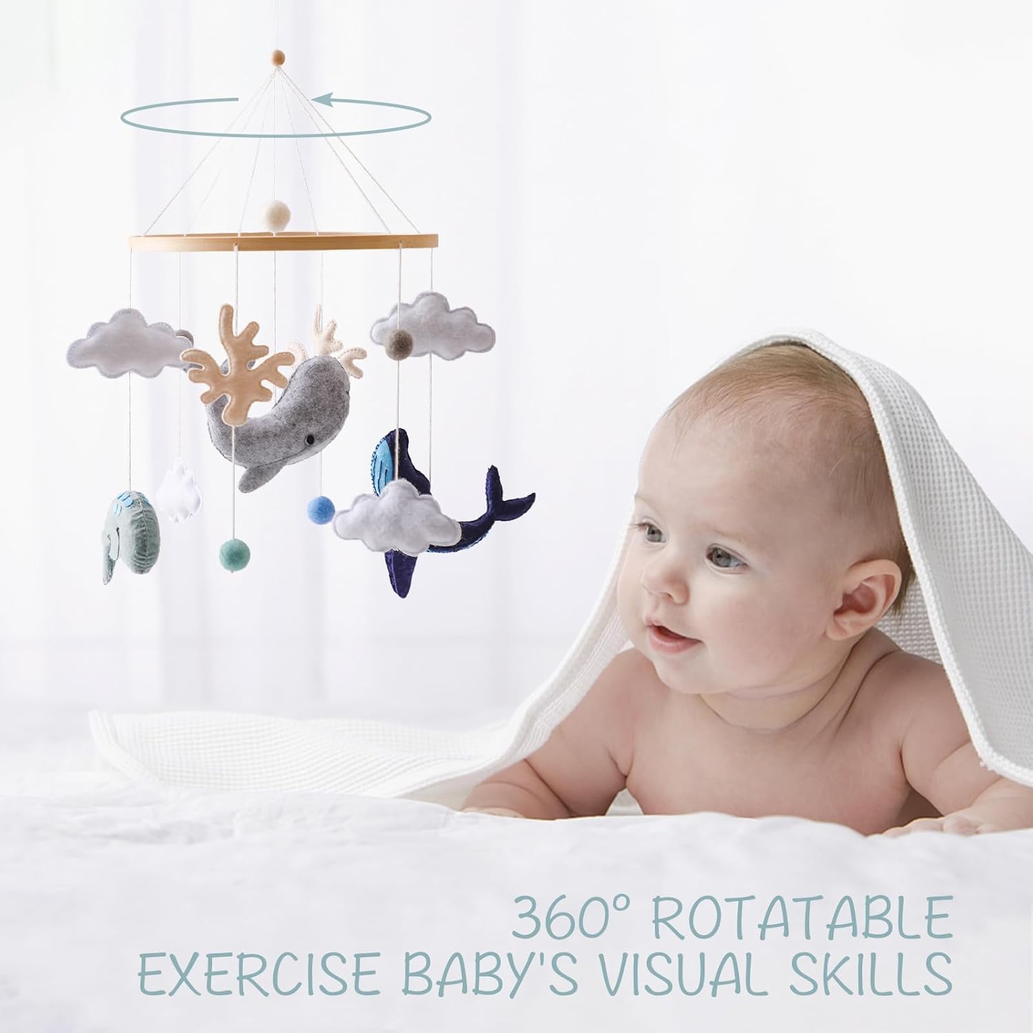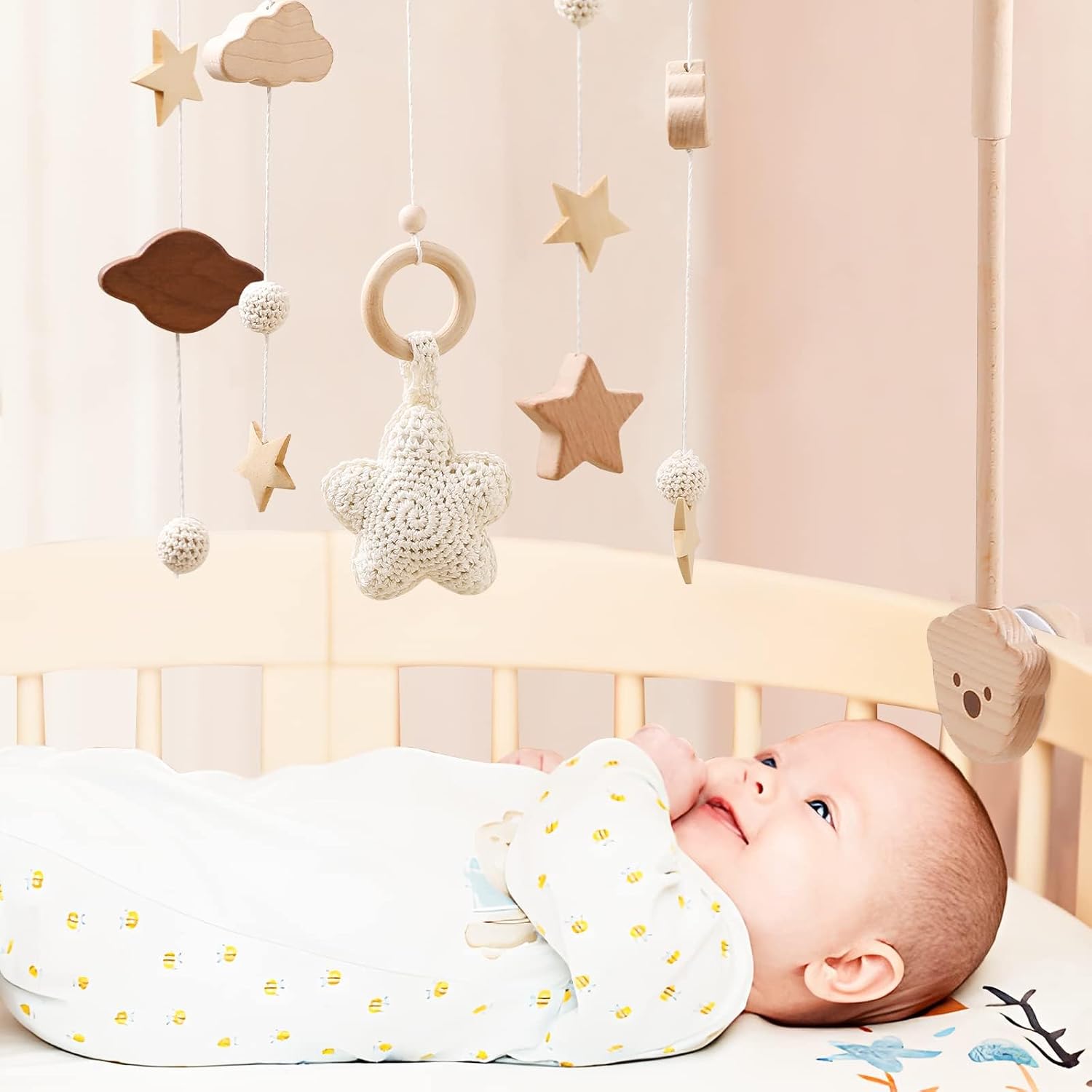 The upgraded top hanger offers full 360° horizontal and vertical rotation. Easily adjust the mobile's position to suit any nursery layout and ensure optimal viewing for your baby from any angle.