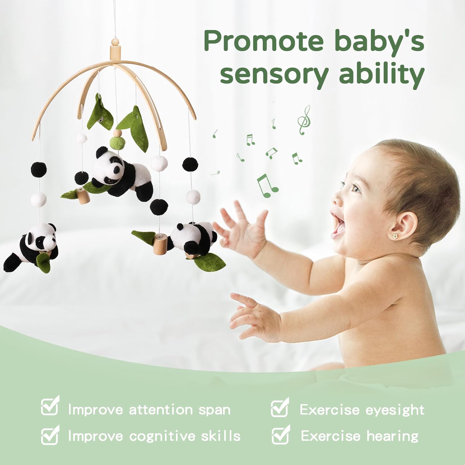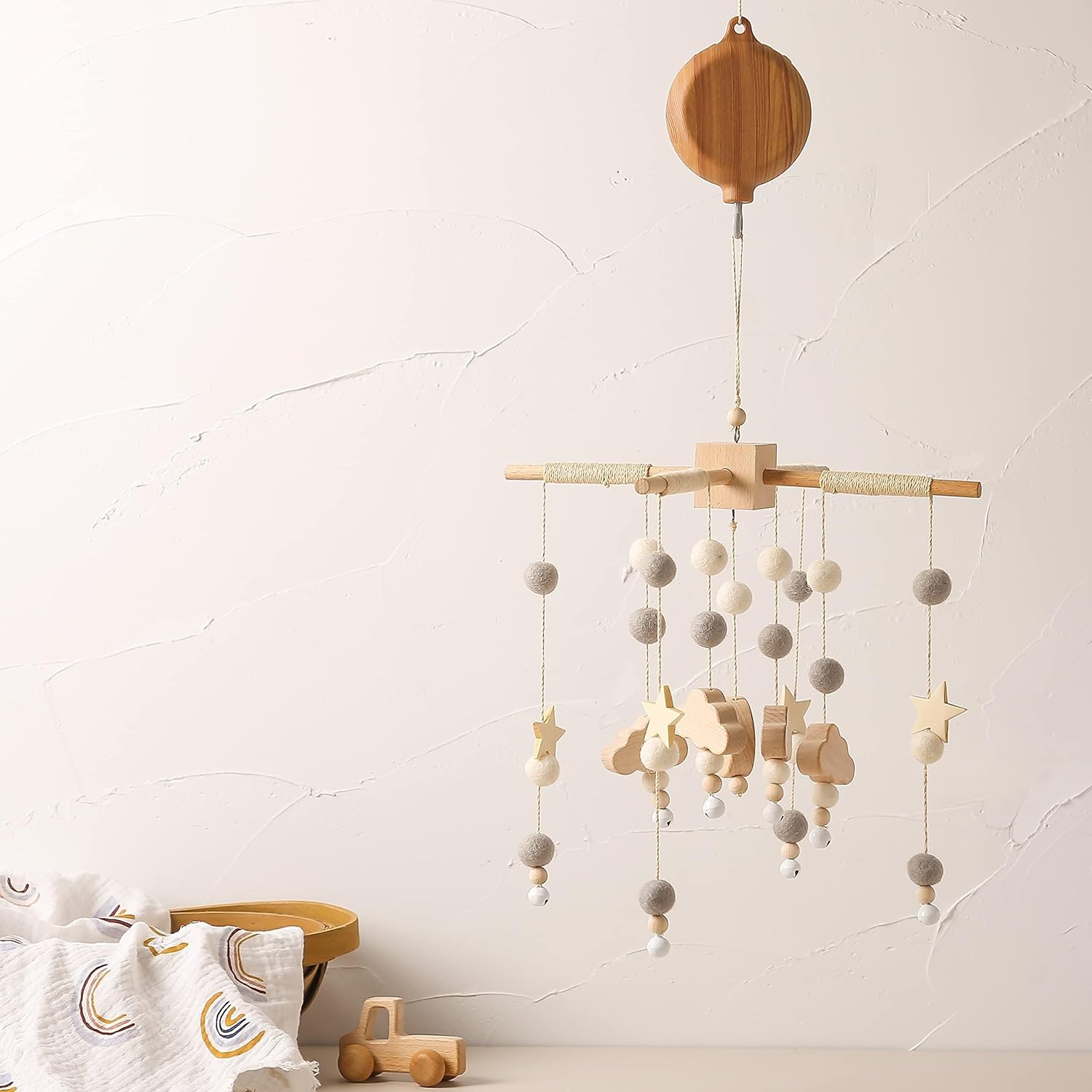Customizable Height Adjustment: With a 3-level adjustable arm height (6.3"/15.5"/24.5"), you can perfectly position your baby mobile for visual engagement and safety as your baby grows.