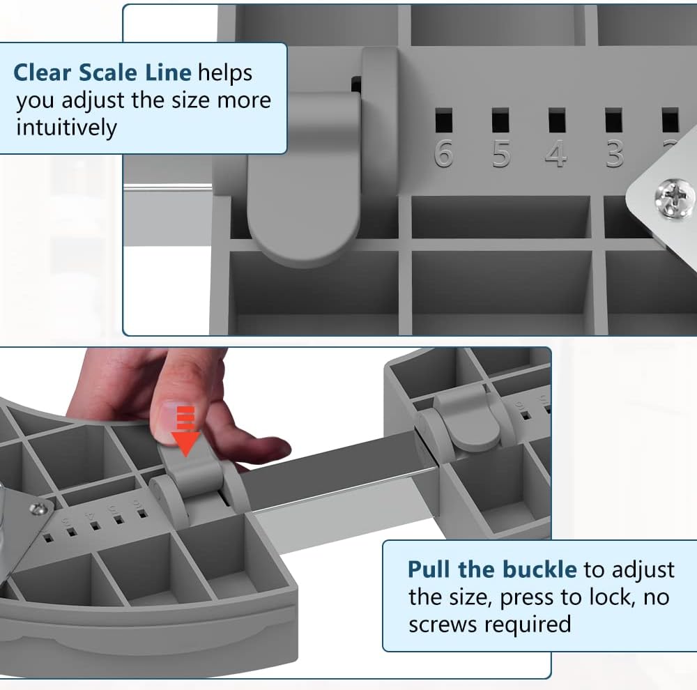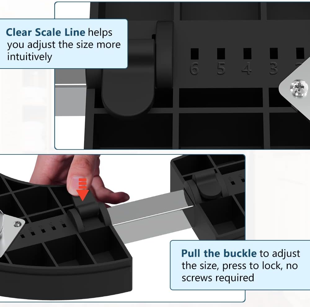 - Quick and Simple Setup: Installation is incredibly easy and takes just minutes! Adjust the size using the simple buckle system – no tools or screws needed. Integrated scale lines on the base make size adjustments straightforward.