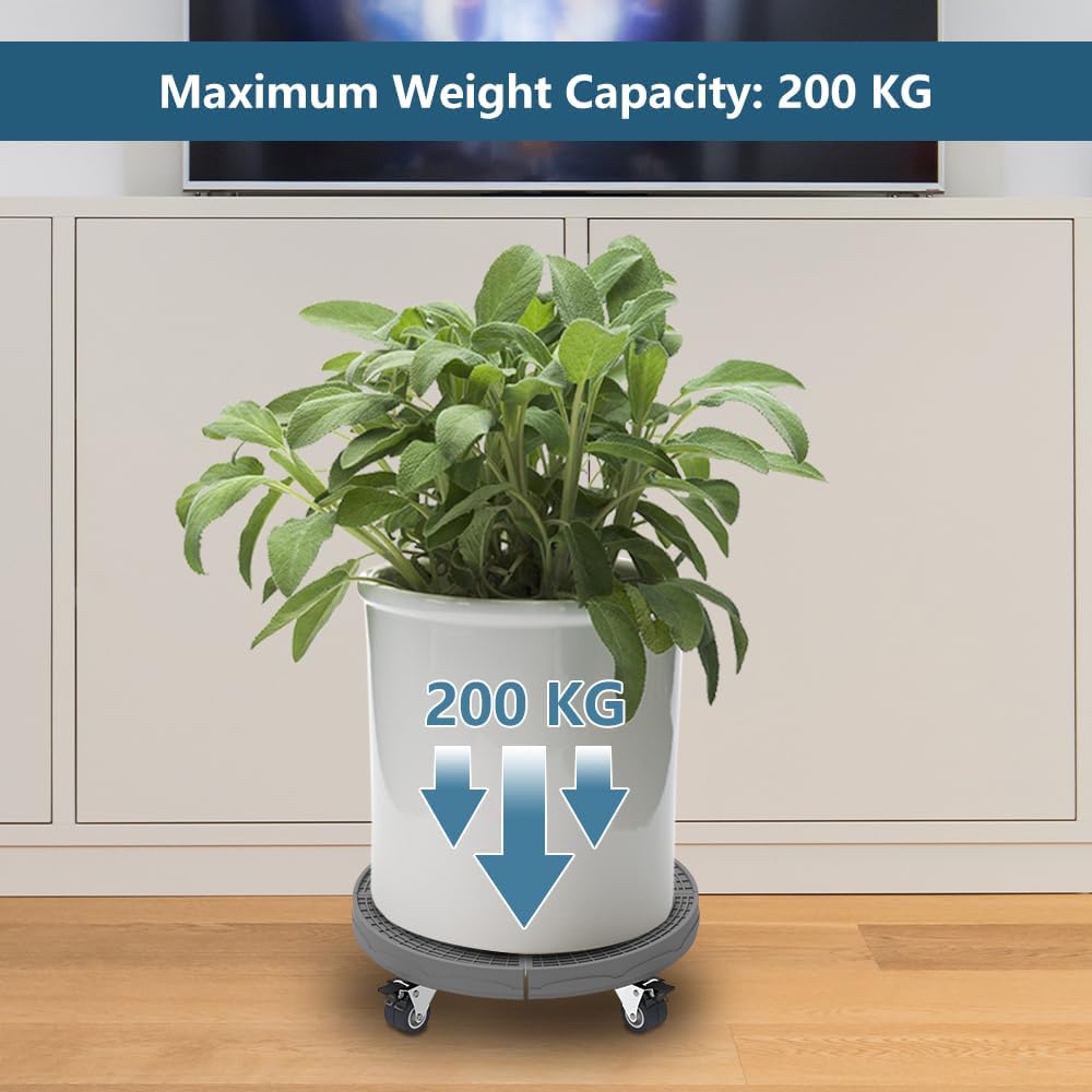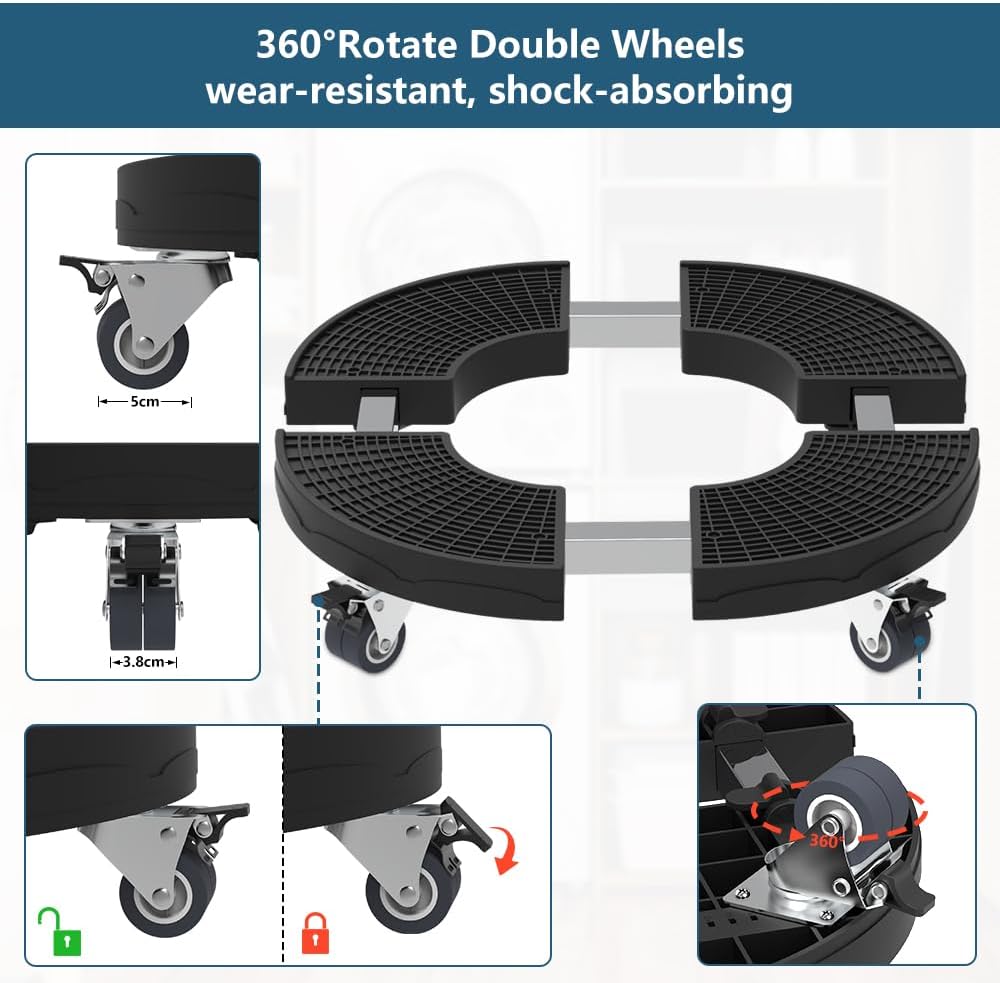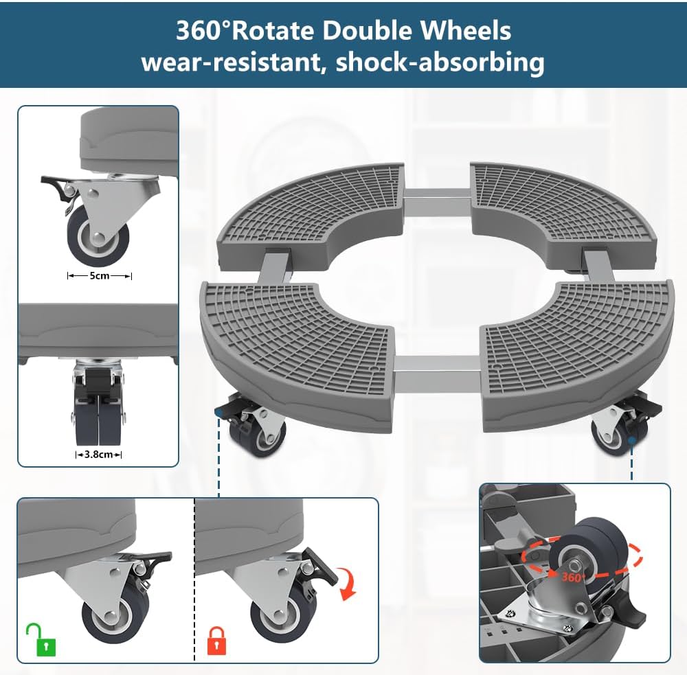 Smooth 360° Movement: Four double-wheel sets rotate a full 360 degrees, making maneuvering heavy loads a breeze. These plant caddy wheels are wear-resistant and gentle on indoor and outdoor flooring. Lockable brakes ensure stability when parked.