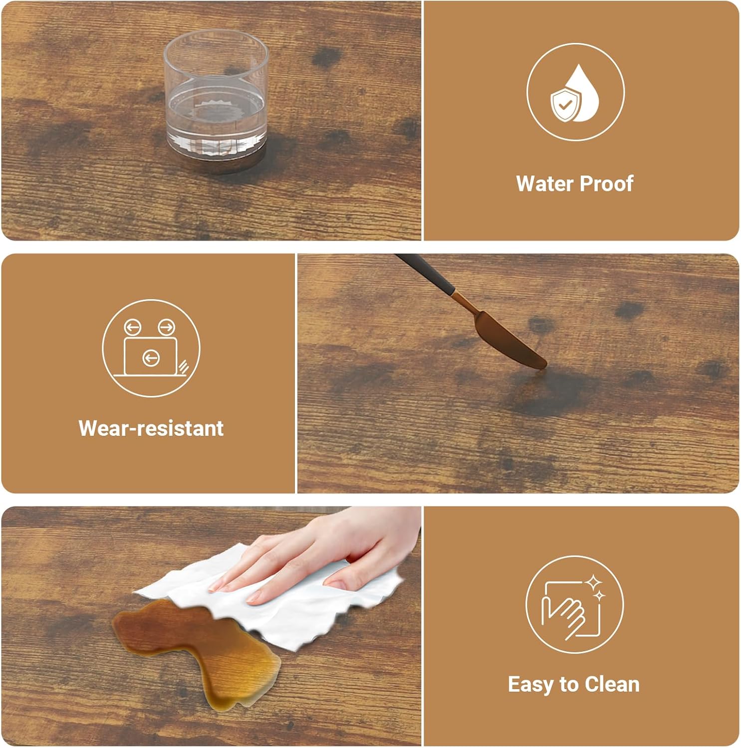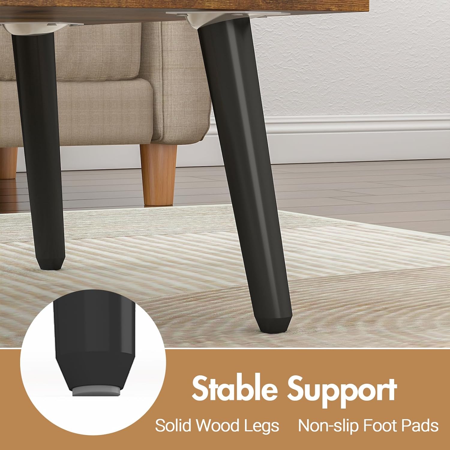 Investing in furniture means choosing pieces that are built to last and easy to maintain. This rectangular coffee table is constructed with sturdy solid wood legs and high-quality particle board, ensuring excellent stability and durability. The beautiful walnut finish blends seamlessly with various interior styles, adding warmth and sophistication. And when it comes to assembly, we've made it simple. The waterproof surface makes cleaning spills a breeze, and with clear, straightforward instructions, you'll have your new, highly functional coffee table ready to use in no time.