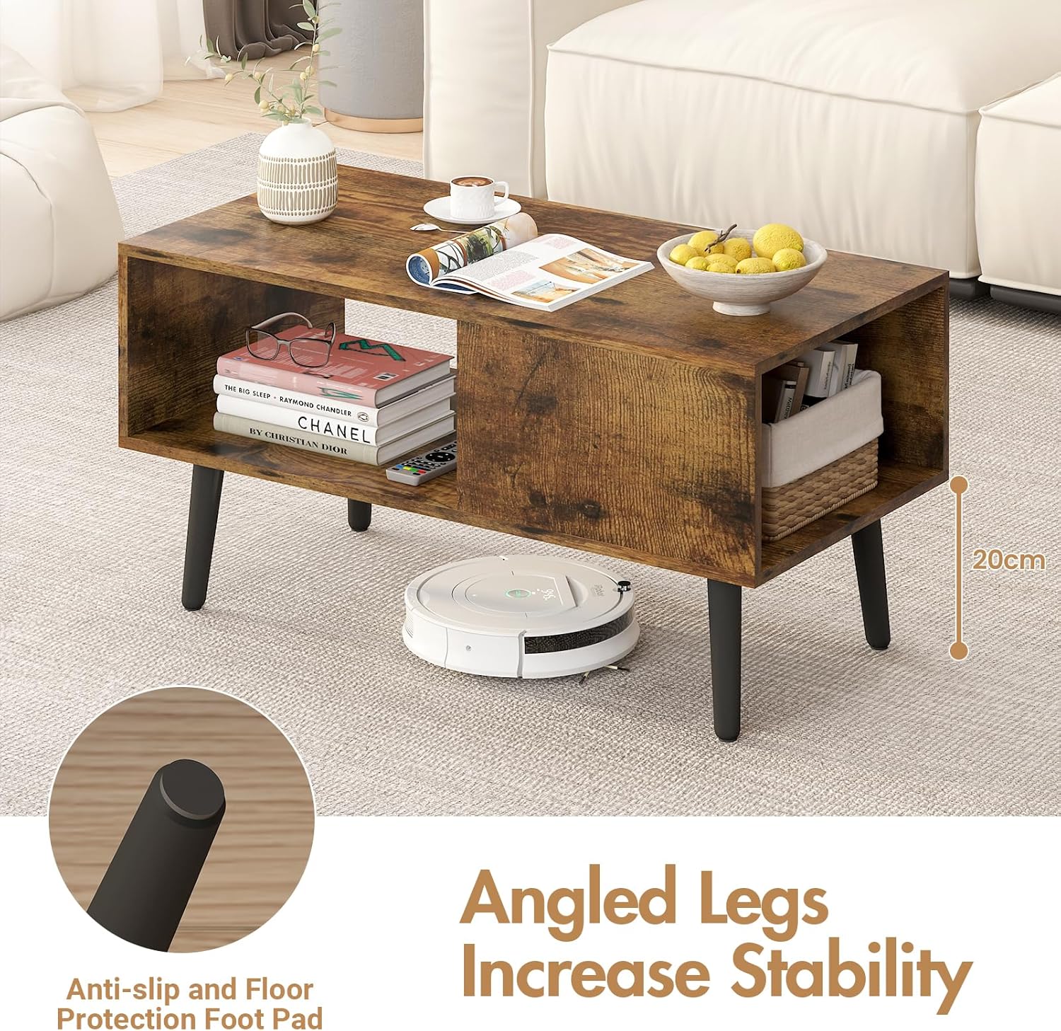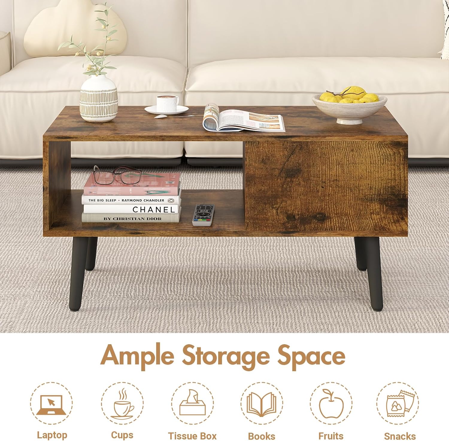 Is your coffee table a magnet for clutter? Remotes, magazines, chargers – they all seem to pile up. This modern coffee table cleverly solves that problem with its hidden storage space beneath the lift-top. Tuck away all those messy items out of sight, instantly creating a tidier and more serene living environment. Plus, with an additional open shelf, you can keep frequently used items like books or decorative pieces easily accessible and beautifully displayed. Reclaim your living room from everyday mess and enjoy a truly organized space.