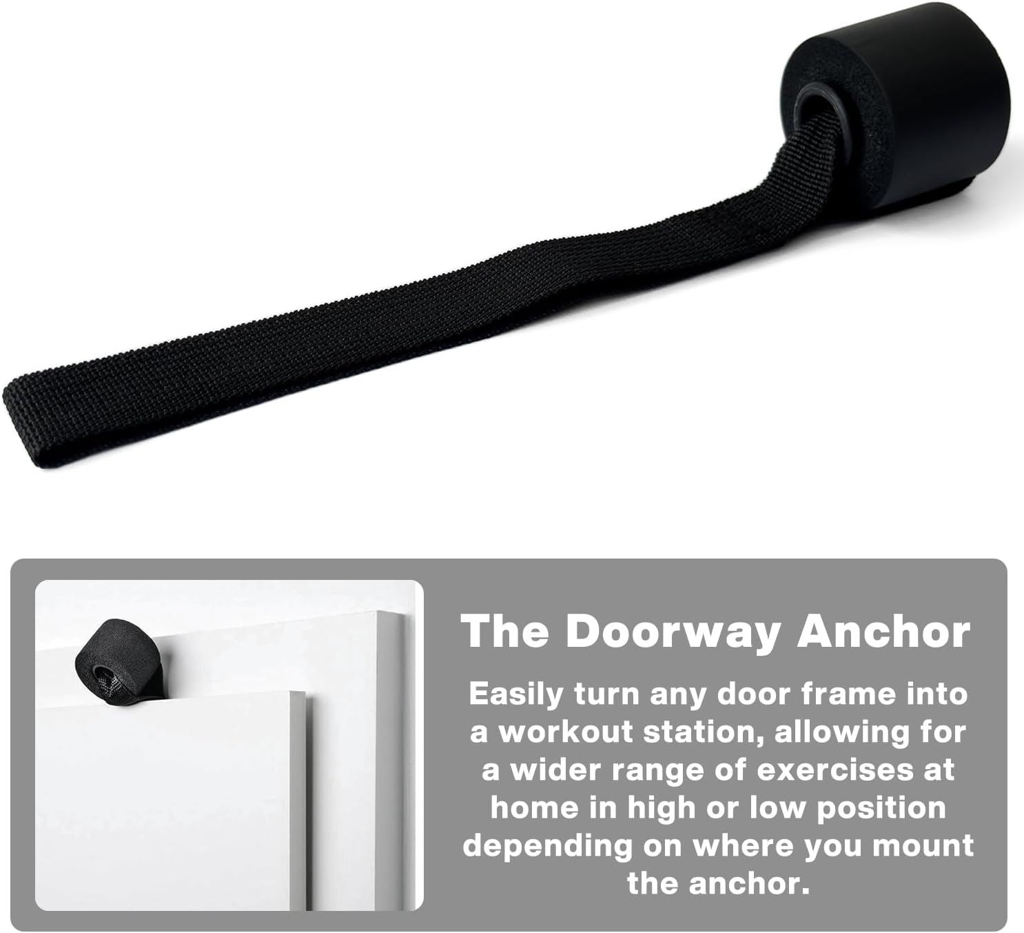 Transform any door into your personal gym. Our door anchor offers an innovative solution for those without traditional tie points or who prefer to keep their walls pristine. Simply position the foam head at the edge, secure the door, and you're ready to train.