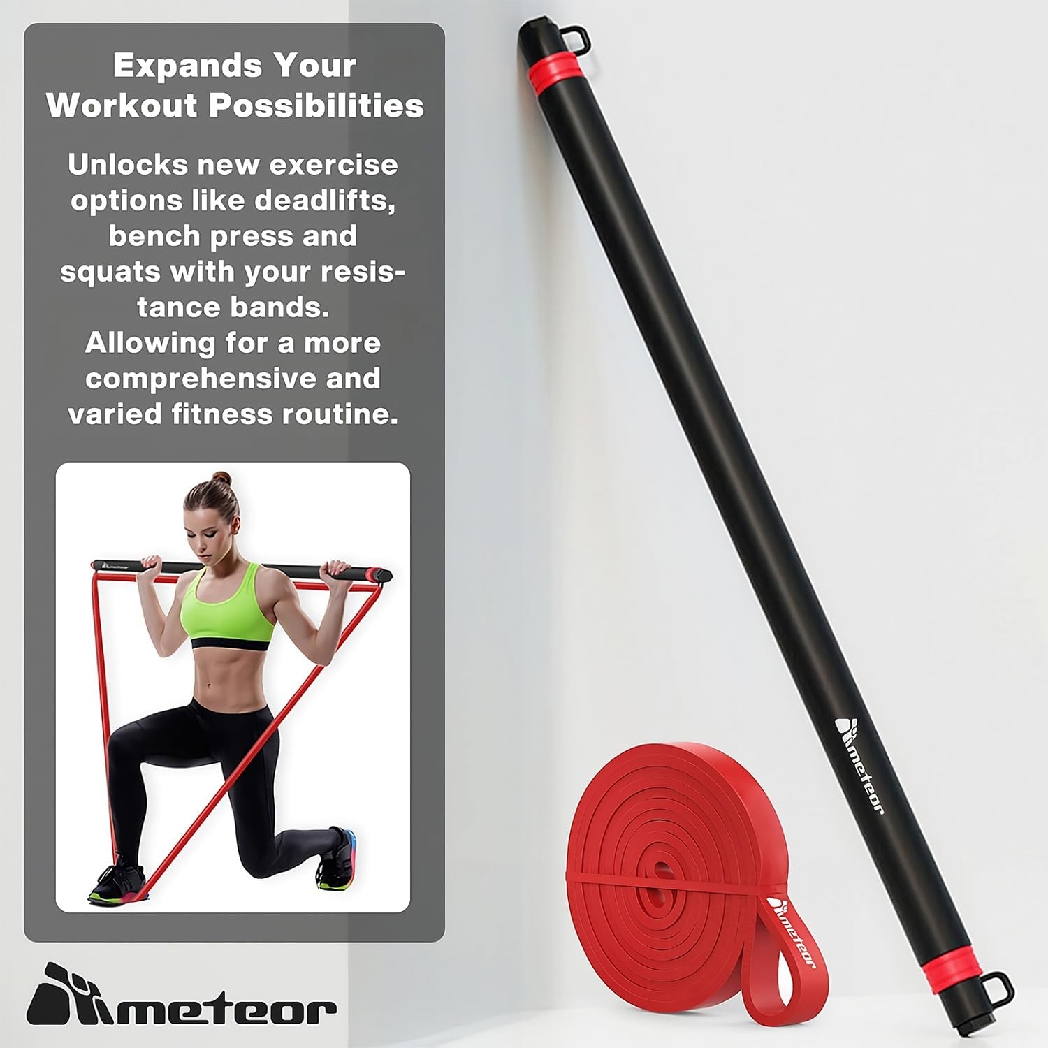 Discover the METEOR difference. Each band, meticulously crafted in vibrant colors, represents not just resistance levels but a commitment to quality. Experience durability, flexibility, and the power to propel your fitness journey forward.