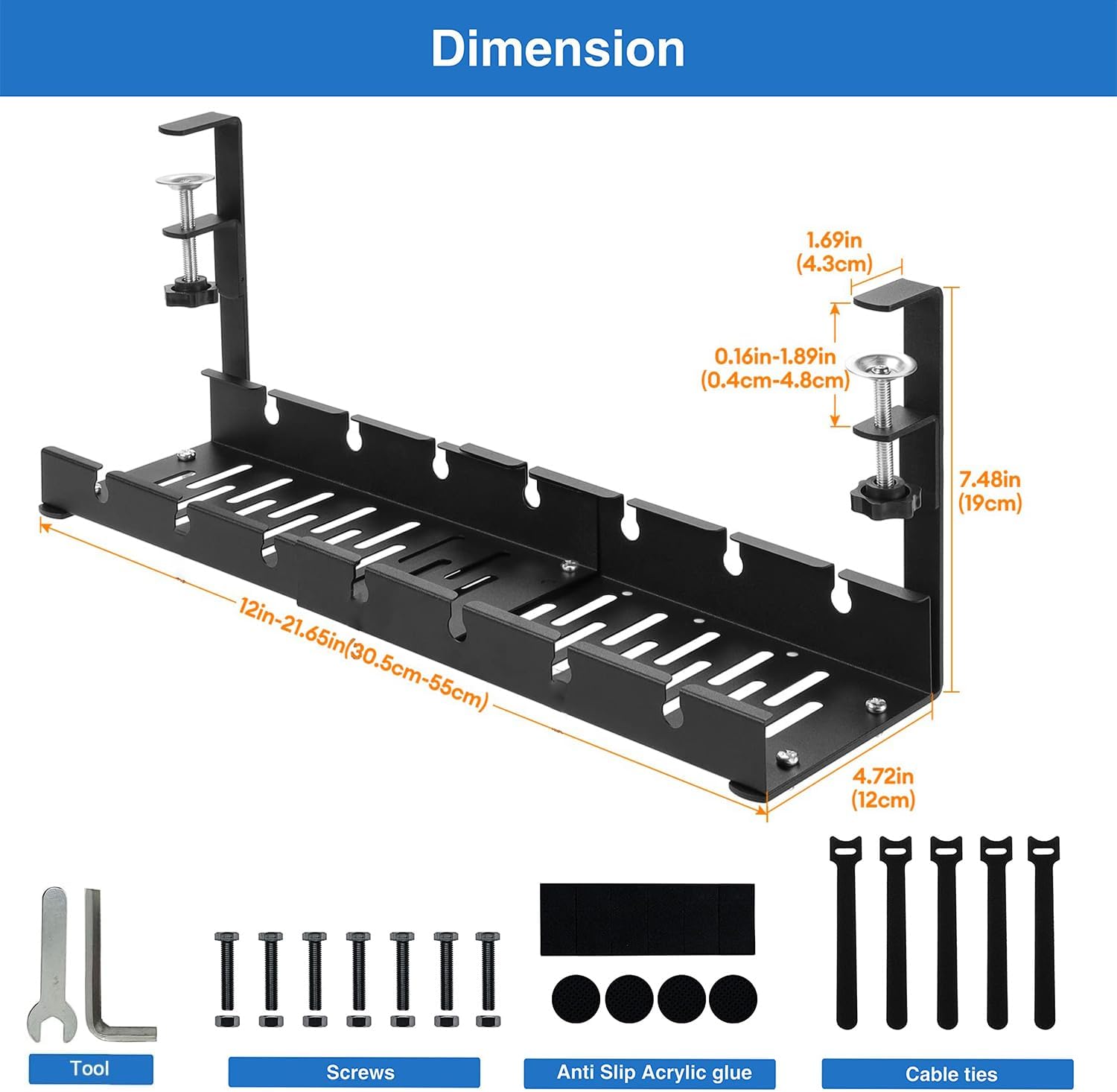 - 【No Drill & Easy To Install】: Instead Of Damaging Your Desk With Screws, Our Under Desk Cable Management Tray Can Be Hanged Directly To Desk With Clamp, And Easily Change Its Location As Needed, Easy To Install Without Instructions .