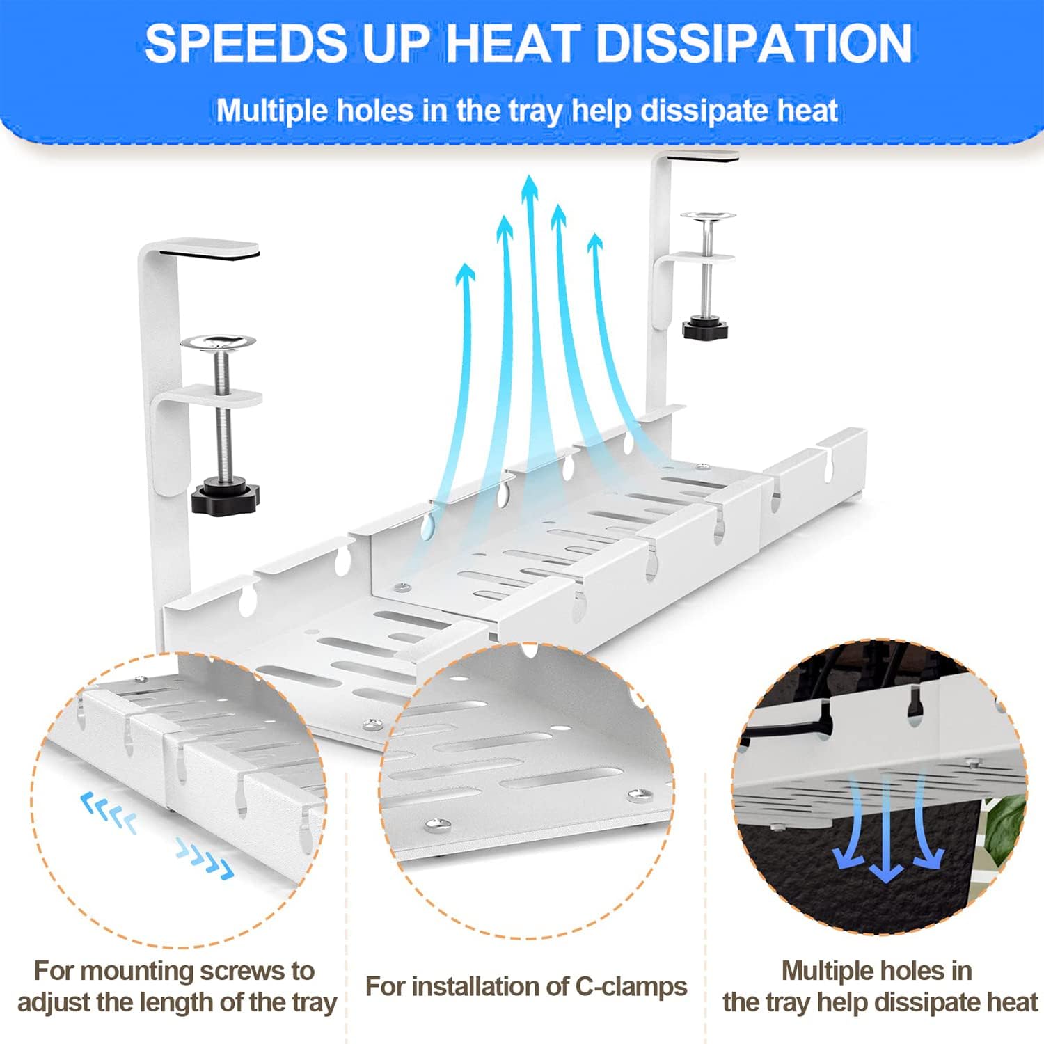 - 【Extendable Cable Tray】: This Under Desk Cable Management Has Expanded To a Maximum Of 21.7 Inches, And More Power Strips Can Be Placed At The Same Time.