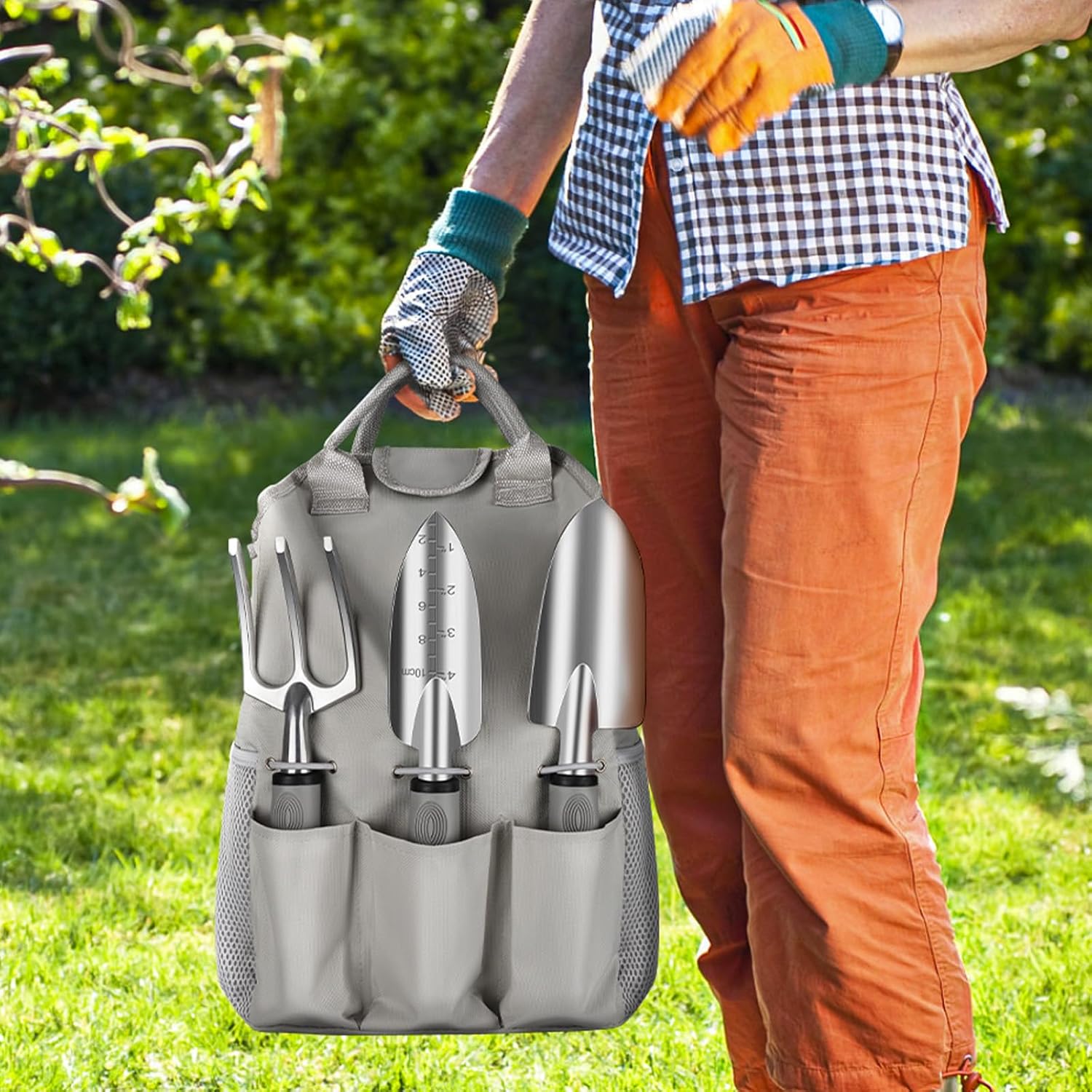 - Portable Gardening Tool Tote - A durable storage bag with multiple pockets allows you to easily organize and carry the tools. All tools are gathered in the tool bag, when you want to go to the garden or yard to work, you just need to bring our gardening tool set