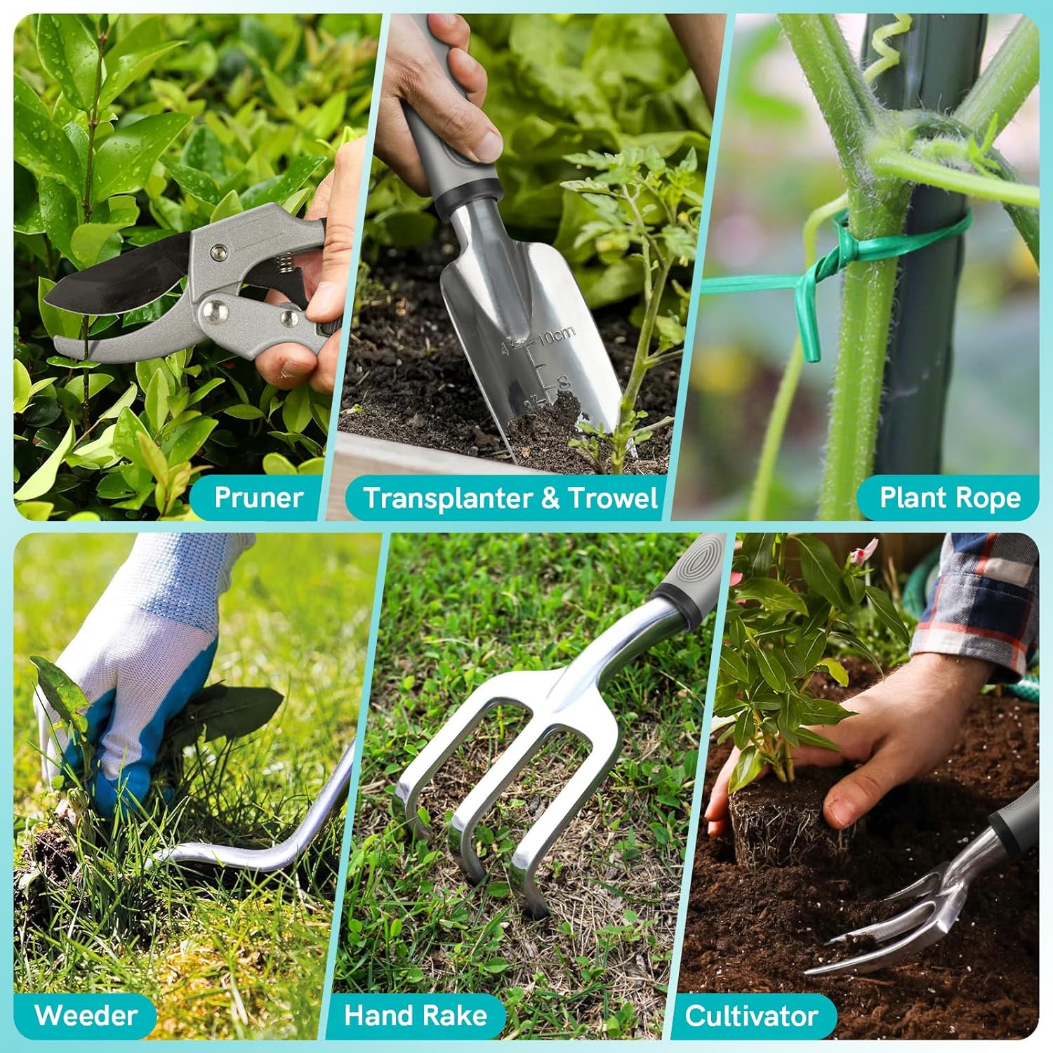 PHIRAH Garden Tool Set, 7PCS Garden Tools Set with Twist Tie for Women and Men, Gardening Kit with Hand Tools, Landscaping Essentials, Starter Kit for Lawn Care, Perfect Gift for Gardeners