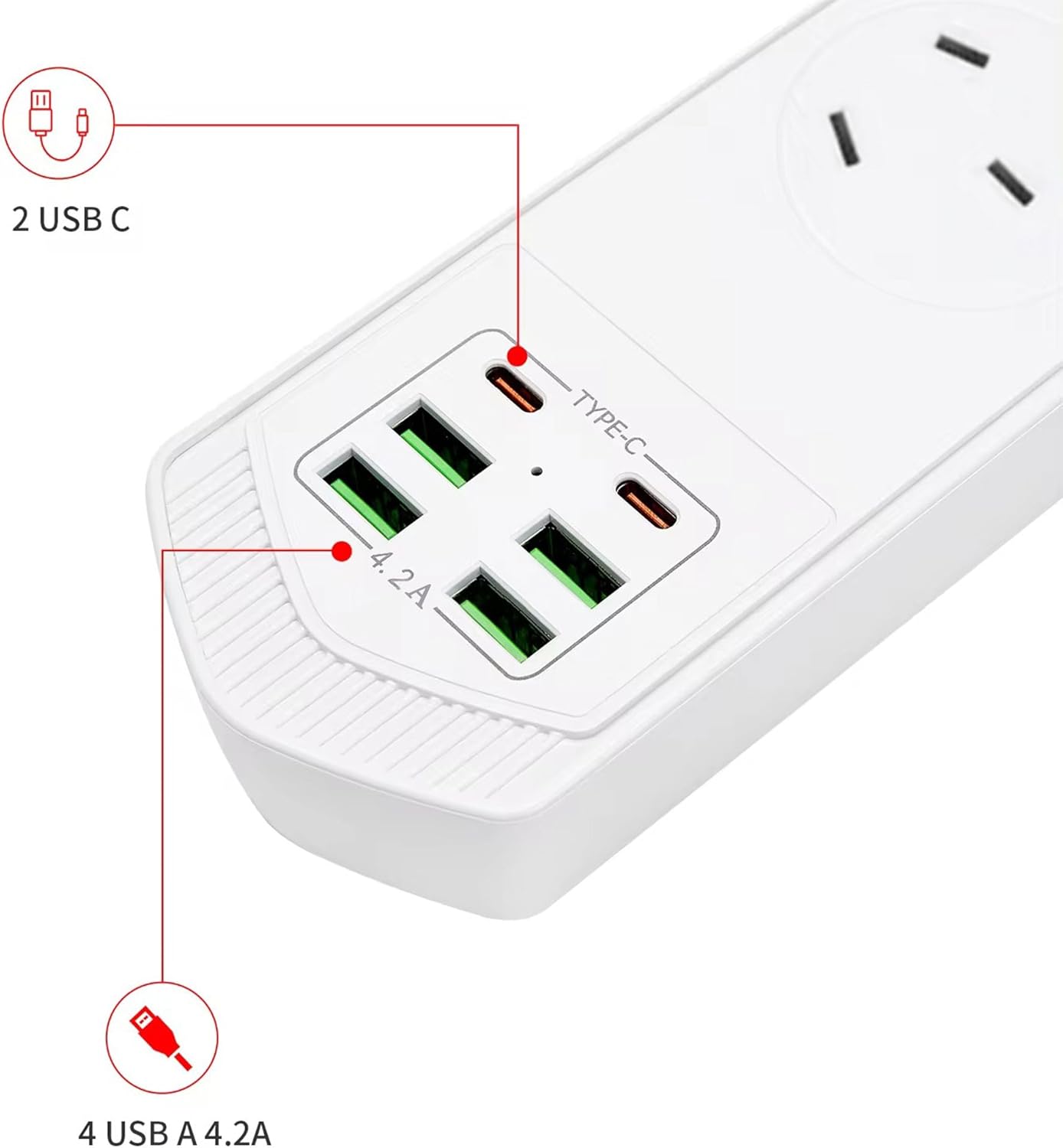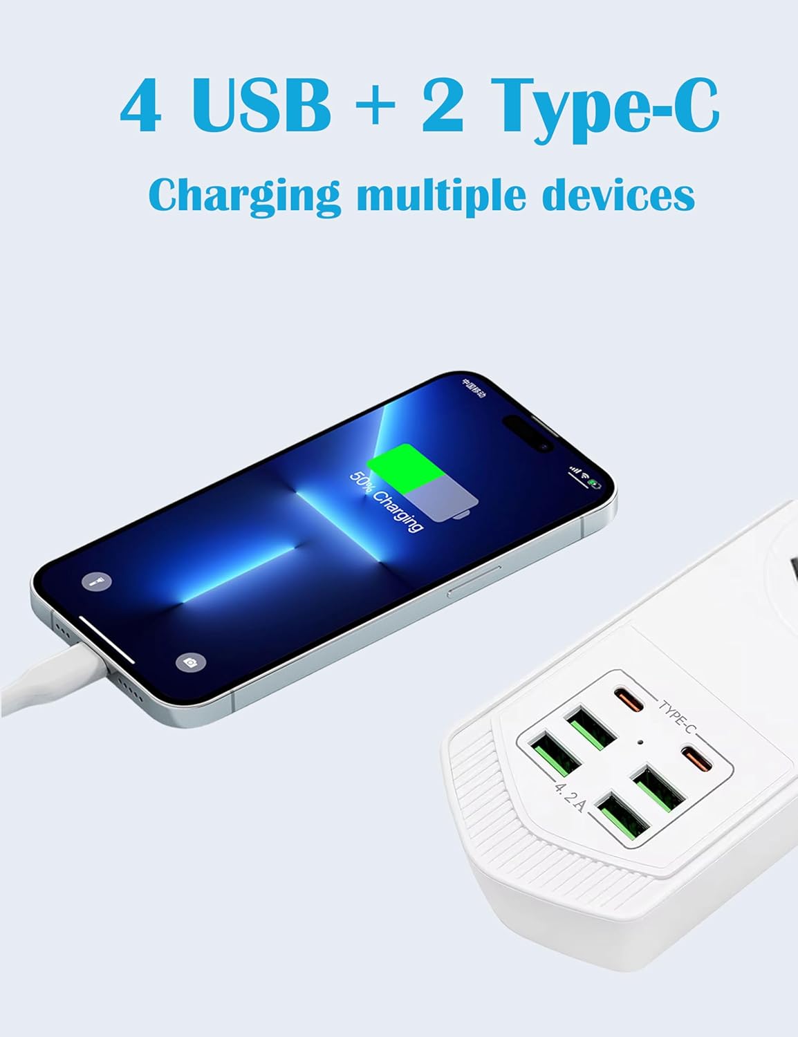 - 【Efficient Charging Performance】- Experience charging multiple devices with the power strip 6 USB ports, delivering a combined output of 5V/4.2A. The inclusion of USB-C ports ensures compatibility with the latest devices, while the USB-A ports cater to older models, ensuring versatility for all your gadgets.