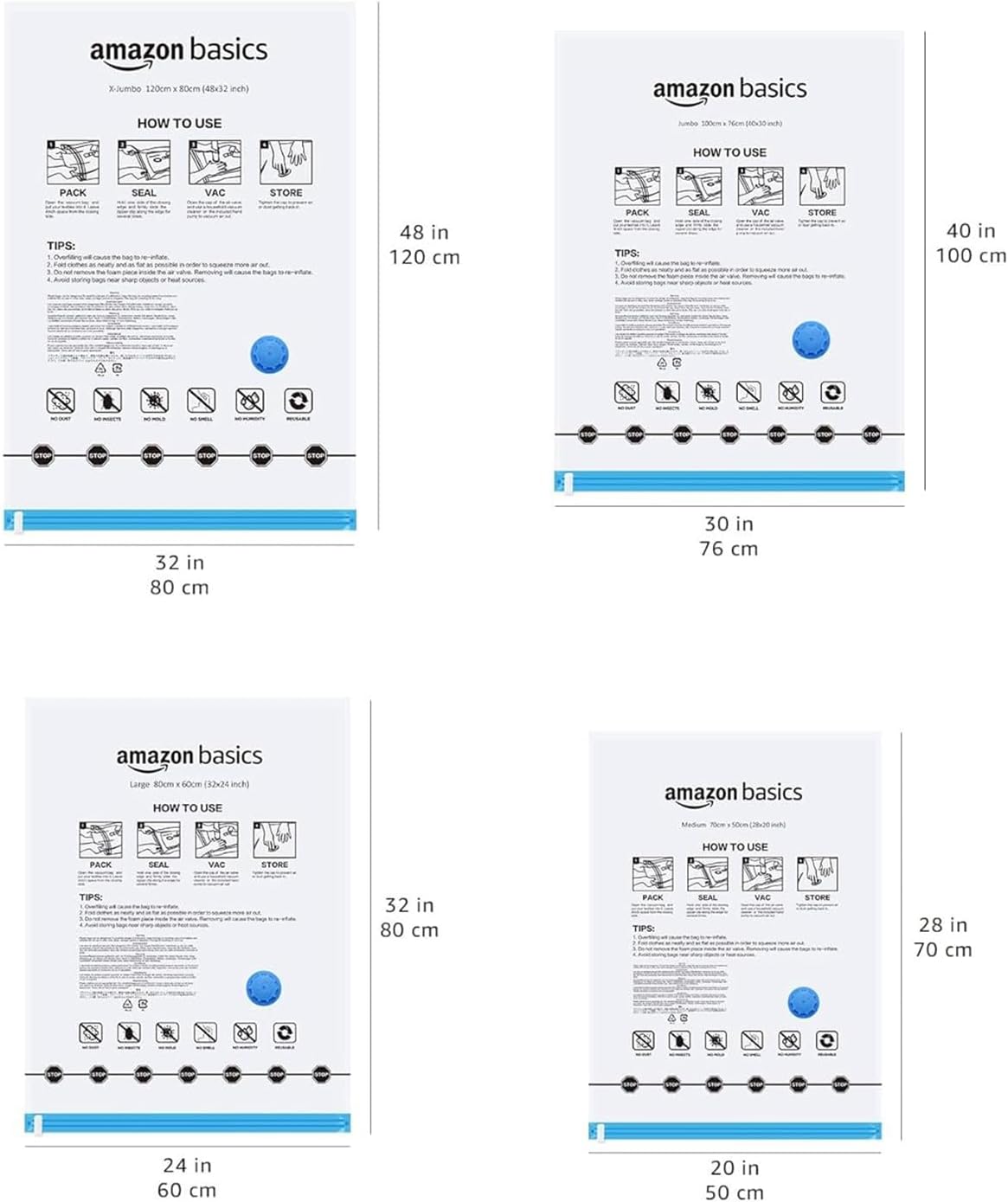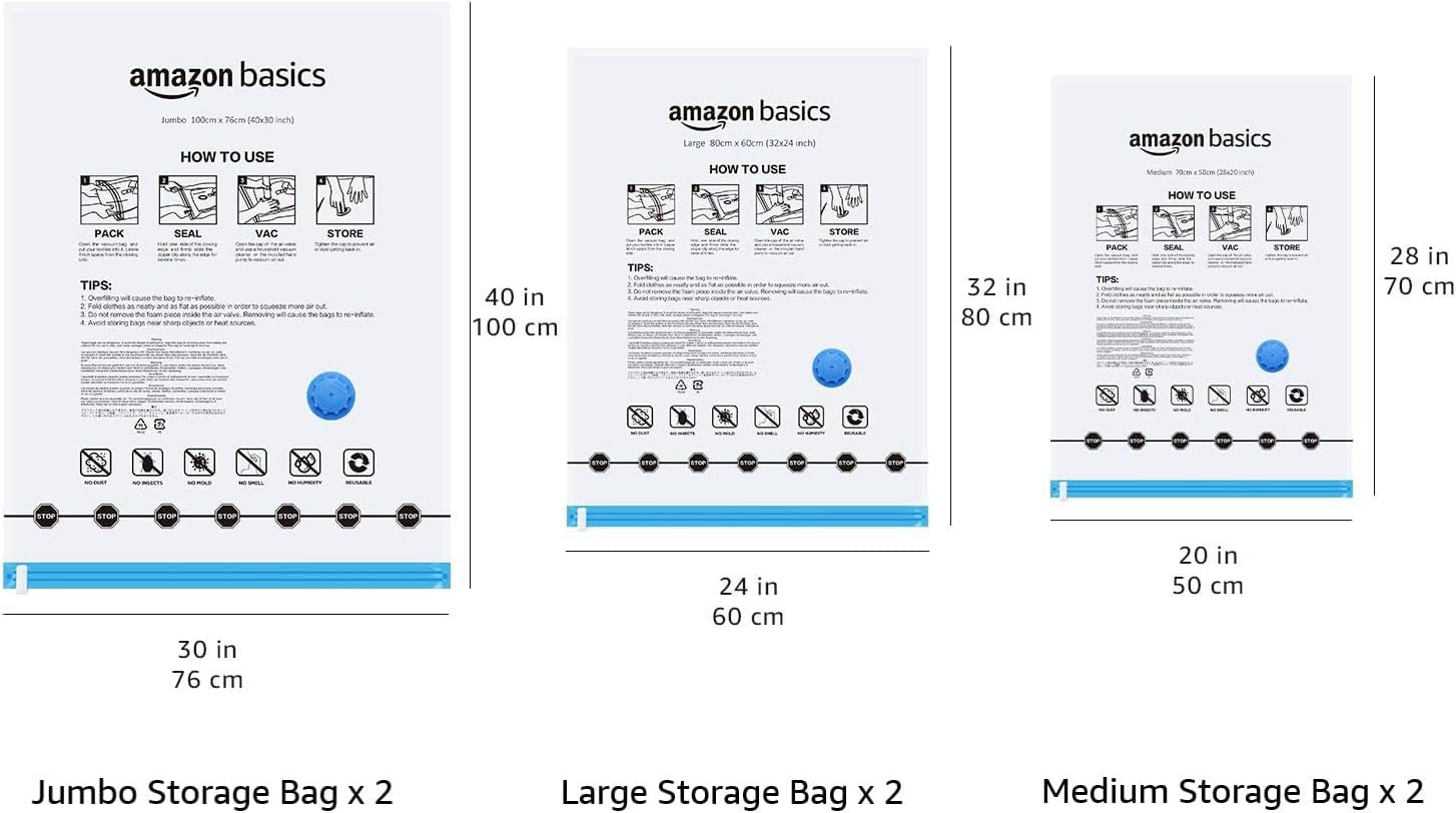 - (2) Jumbo: 101.6 x 76.2 cm (40 x 30 inches) - Ideal for bulky items like blankets and comforters.
