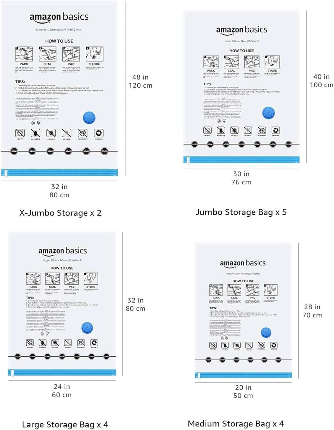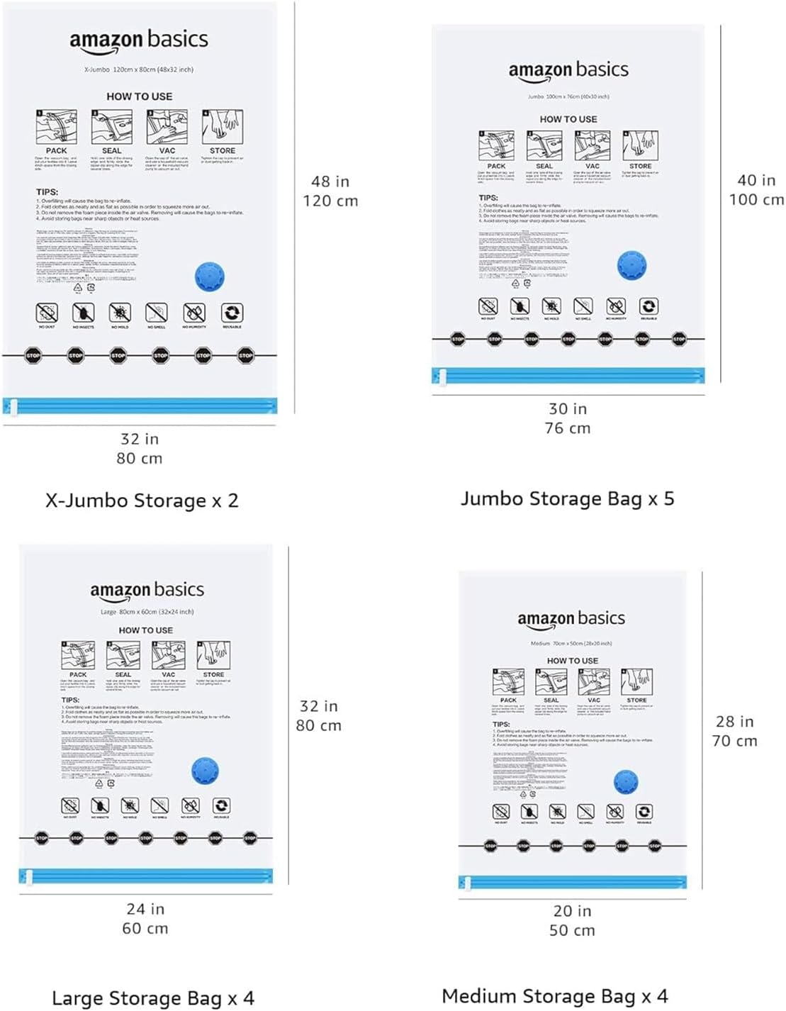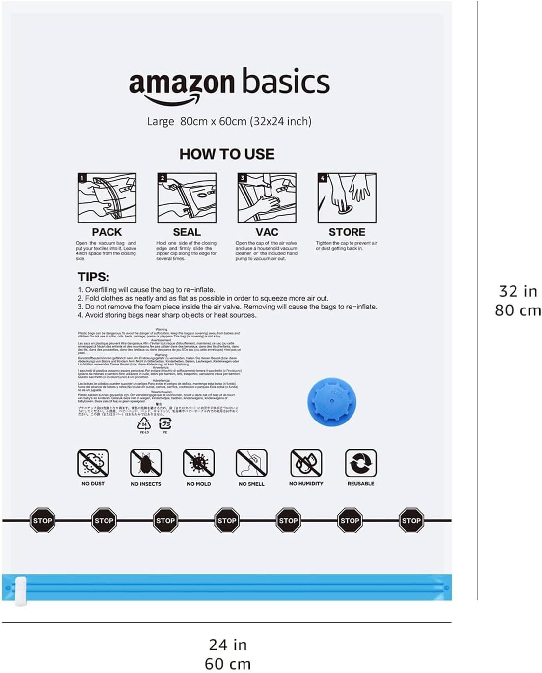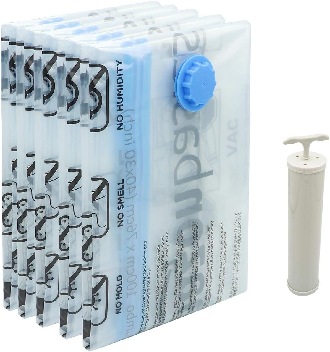 The set includes a hand pump for efficient suction of air, making these bags convenient for use at home or while traveling. For even faster deflation, the valve can also be connected to a standard vacuum cleaner hose. Simply follow the instructions printed on the storage bags to ensure correct sealing every time.