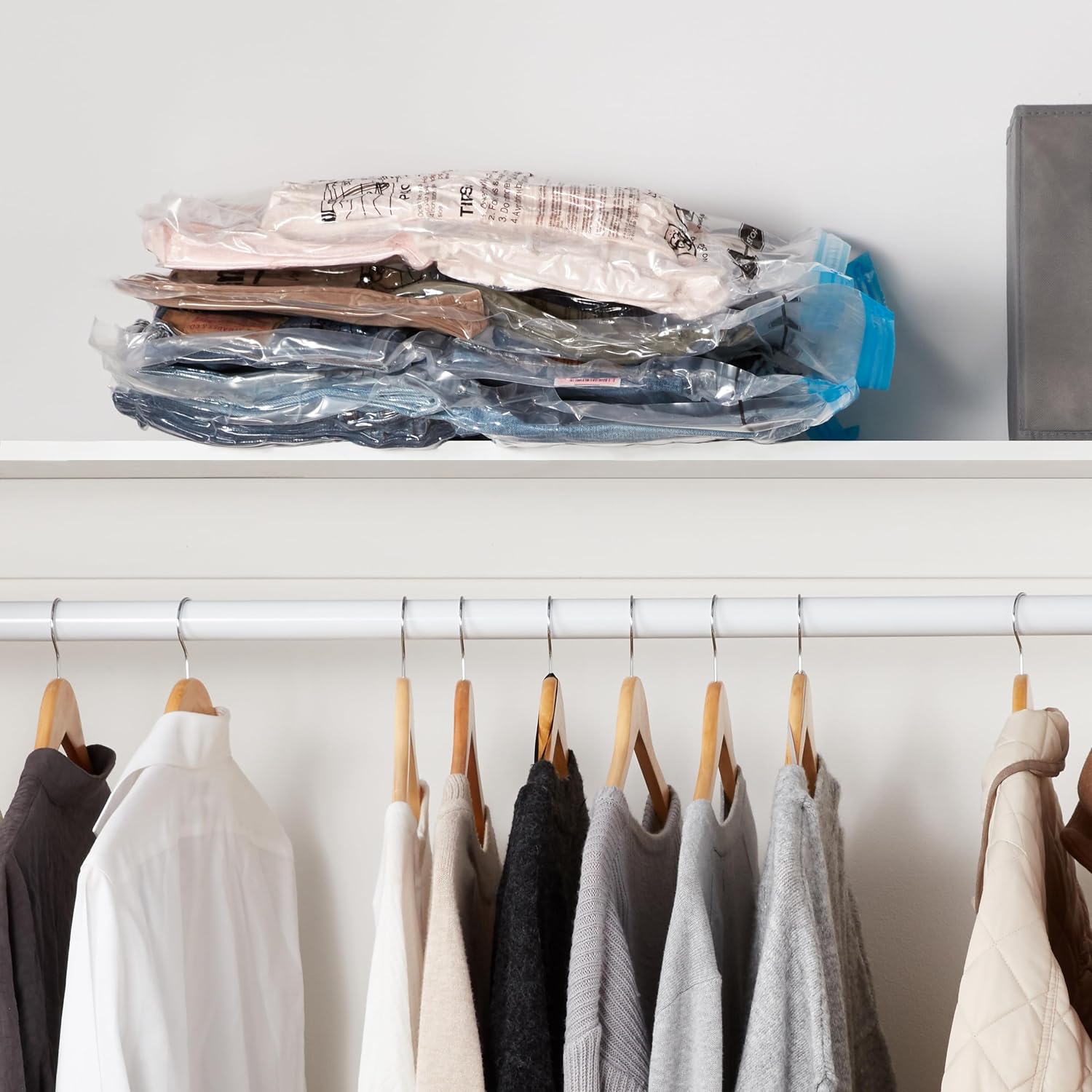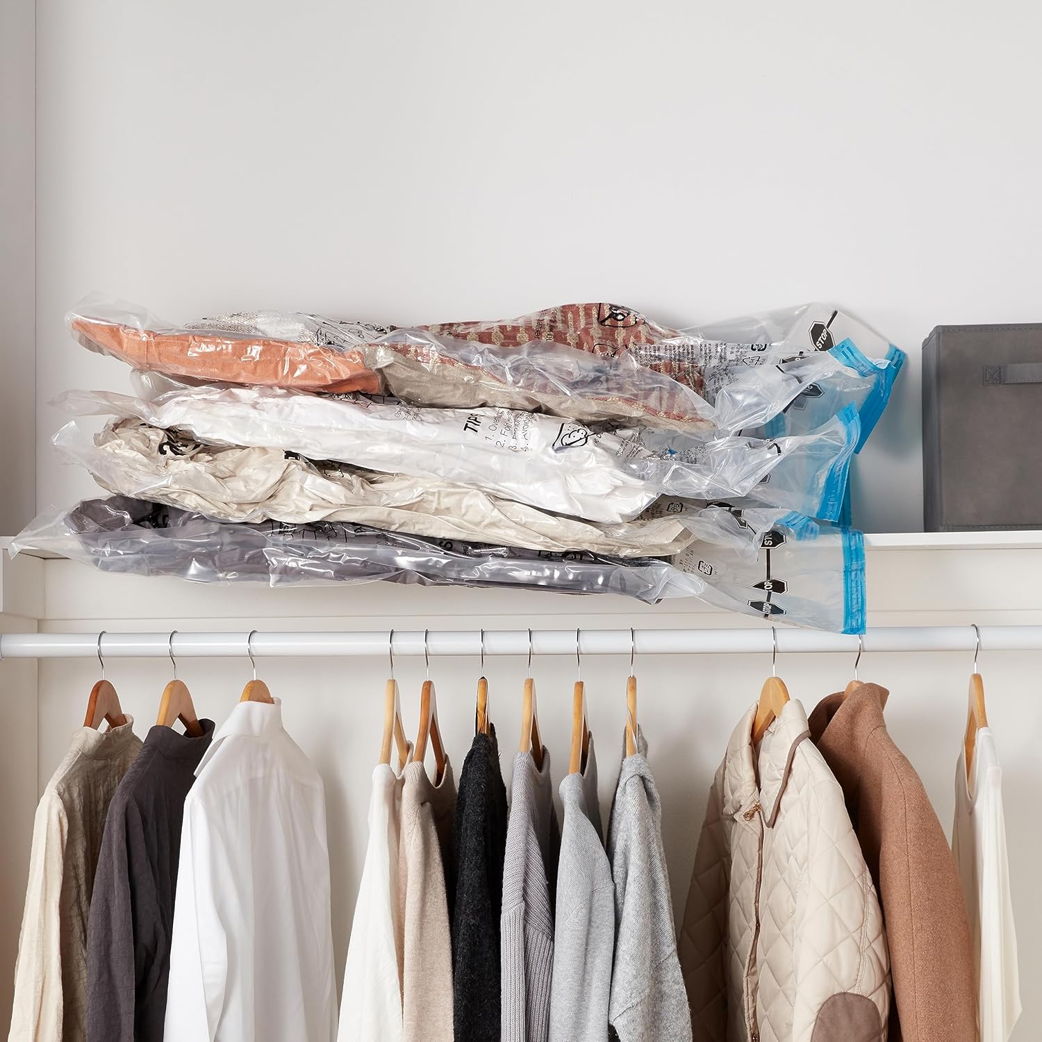 Organize and declutter your home with this 6-pack of assorted size vacuum storage compression bags. These space-saving bags are perfect for storing off-season clothes, towels, linens, blankets, and more. They effectively compress bulky textiles by up to 80%, creating compact, stackable storage solutions for under beds, in wardrobes, closets, cupboards, or suitcases.