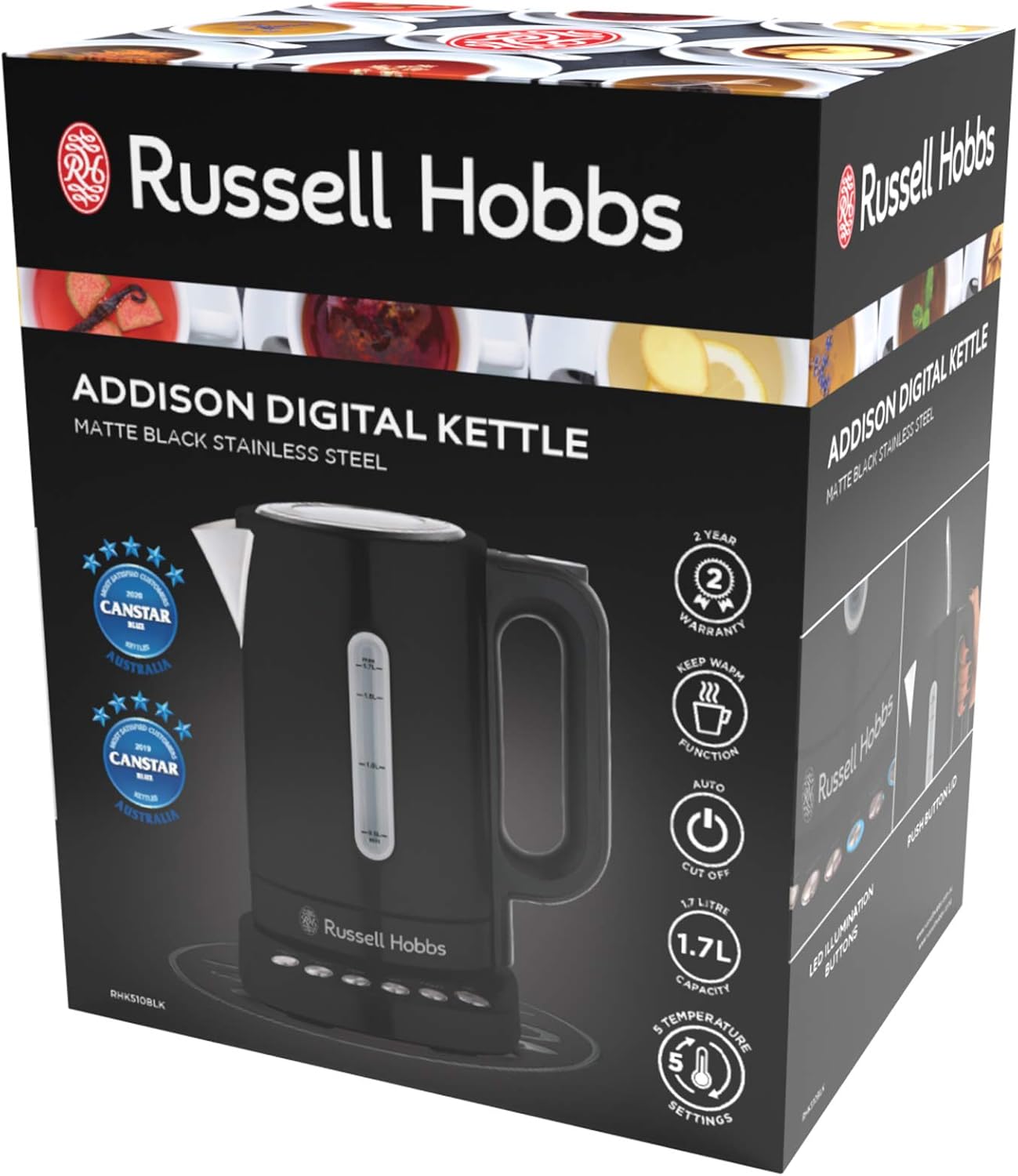 - ELECTRIC KETTLE: With five variable temperatures and a keep warm function, the Russell Hobbs Digital Kettle will allow you to enjoy the perfect cuppa any time of the day