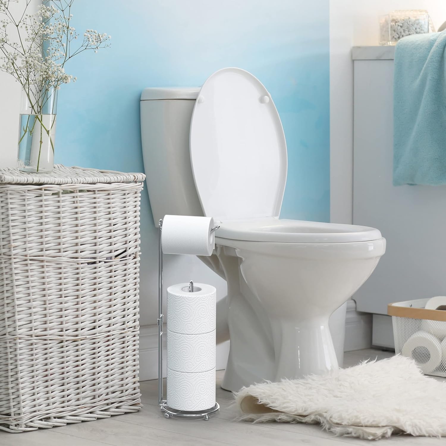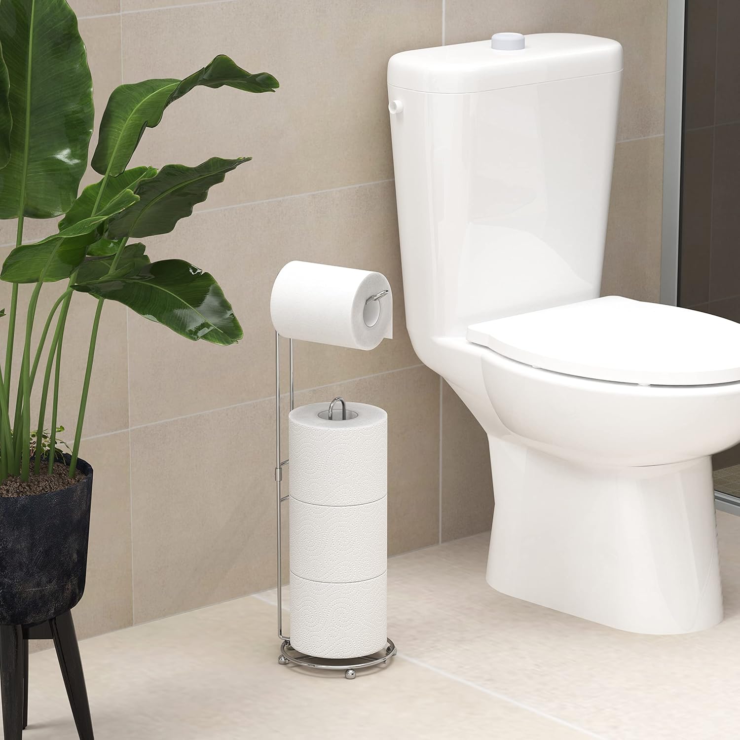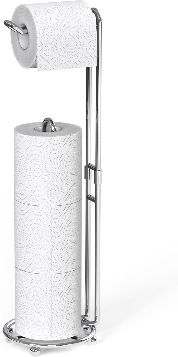 Freestanding Chrome Toilet Paper Stand | Modern Bathroom Roll Holder