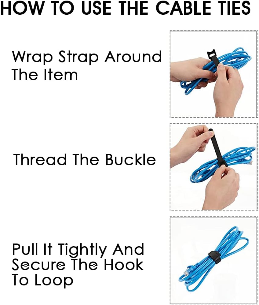 - Simple and Fast to Use: Much easier to use than traditional zip ties, these hook and loop fasteners open and close quickly and easily. No need for trimming or struggling with complicated mechanisms. Just wrap and secure!